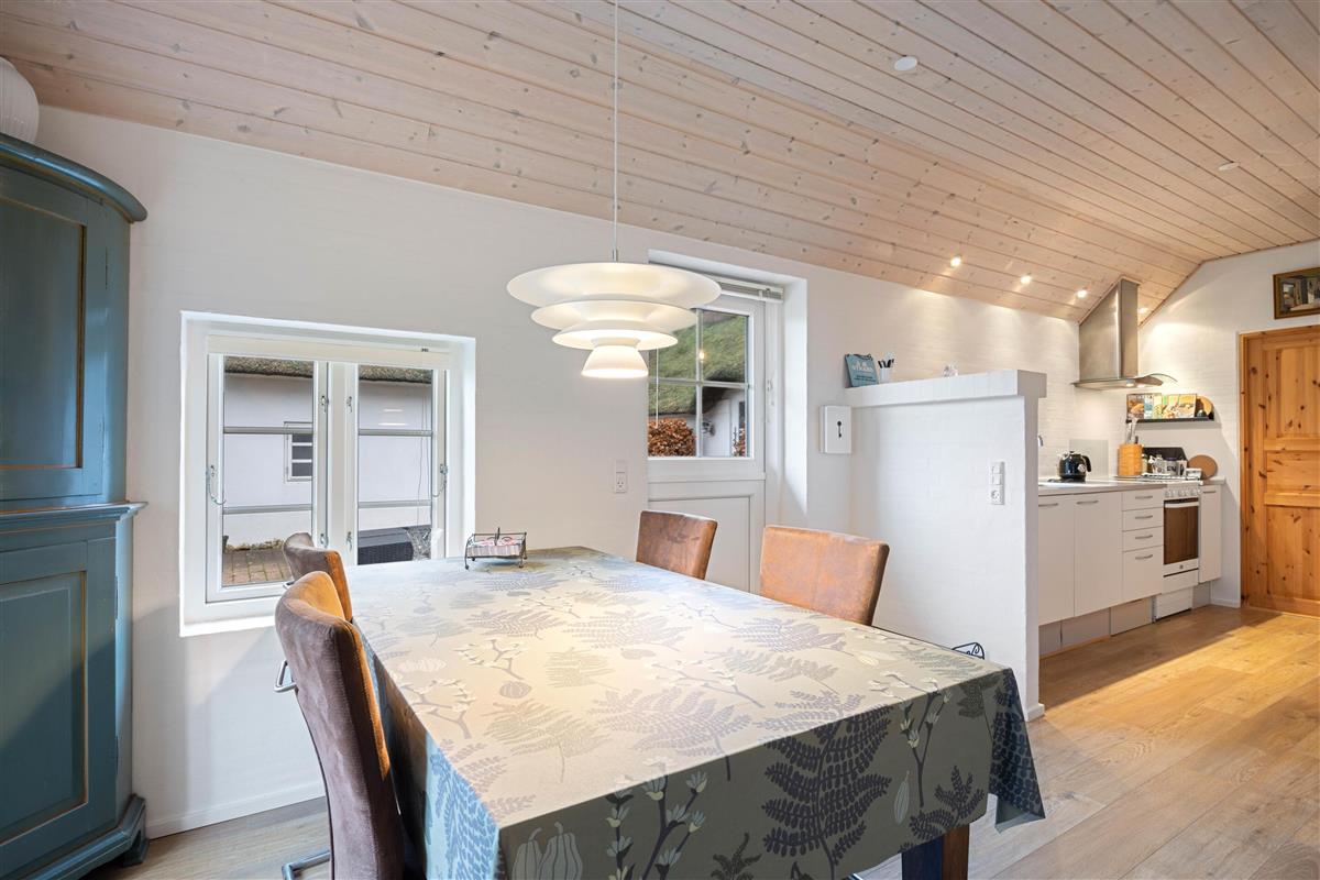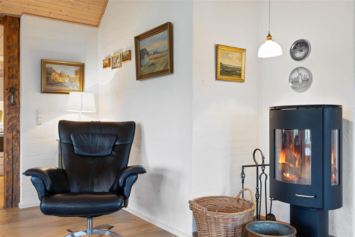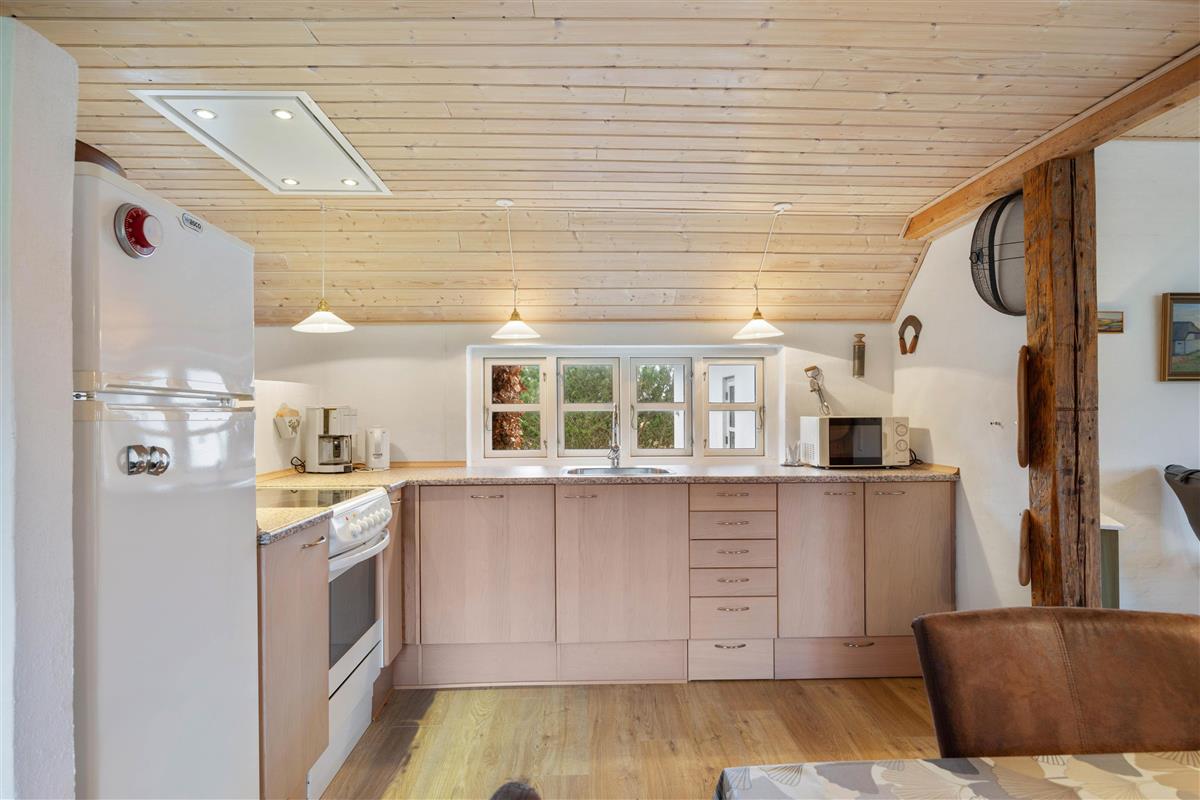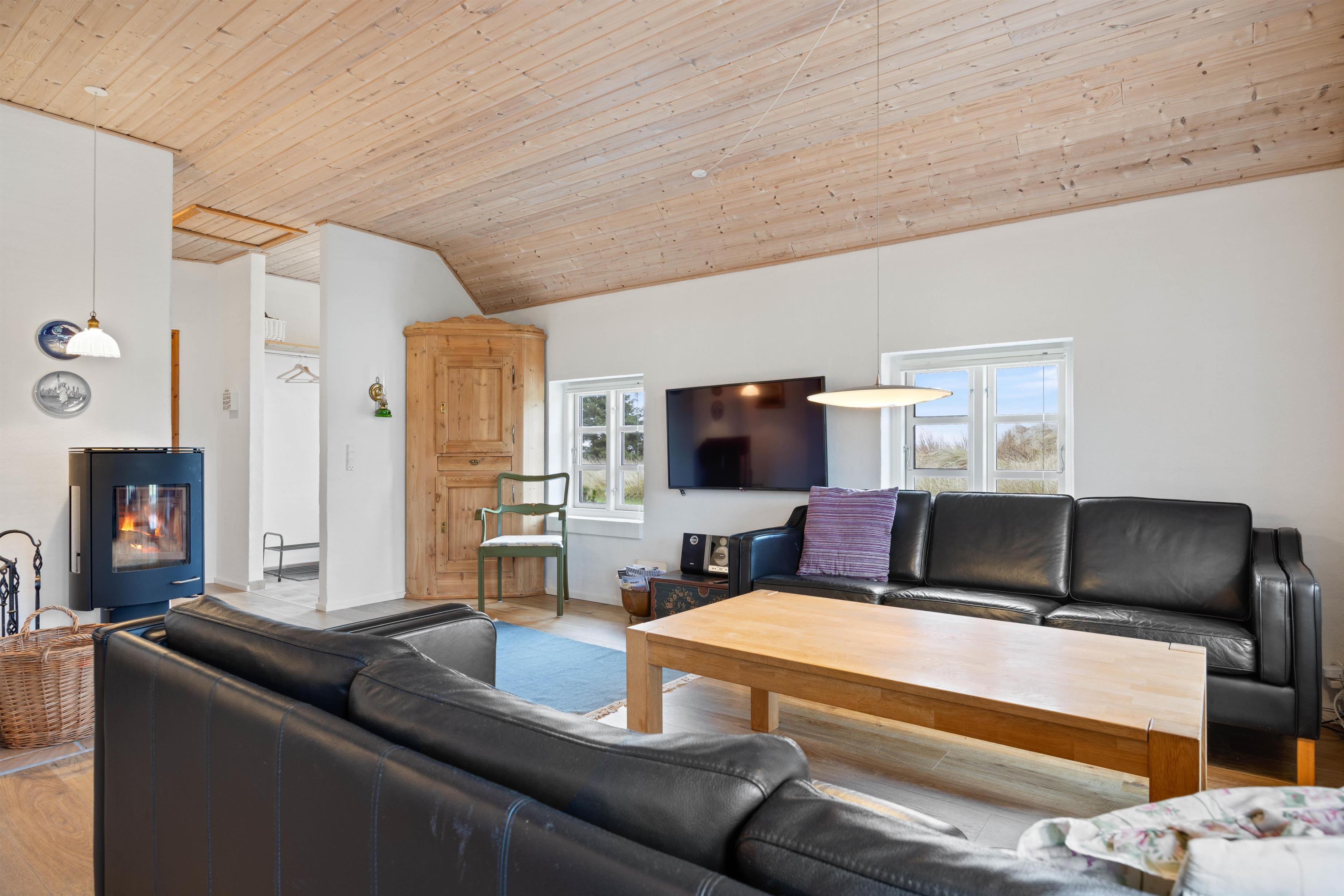 The holiday home is perfectly suited for up to 8 people and two dogs, with two separate living units each accommodating 4 people. Here you can enjoy spending time together while still maintaining your privacy. In the spacious living area, a wood-burning stove invites you to spend cosy evenings by the crackling fire.