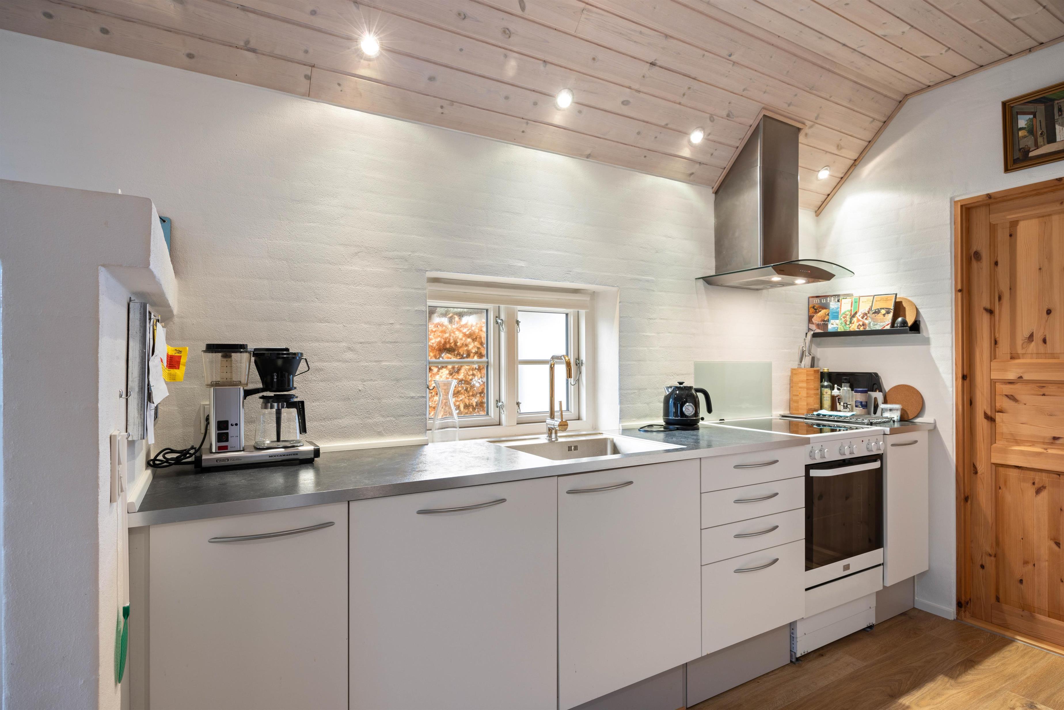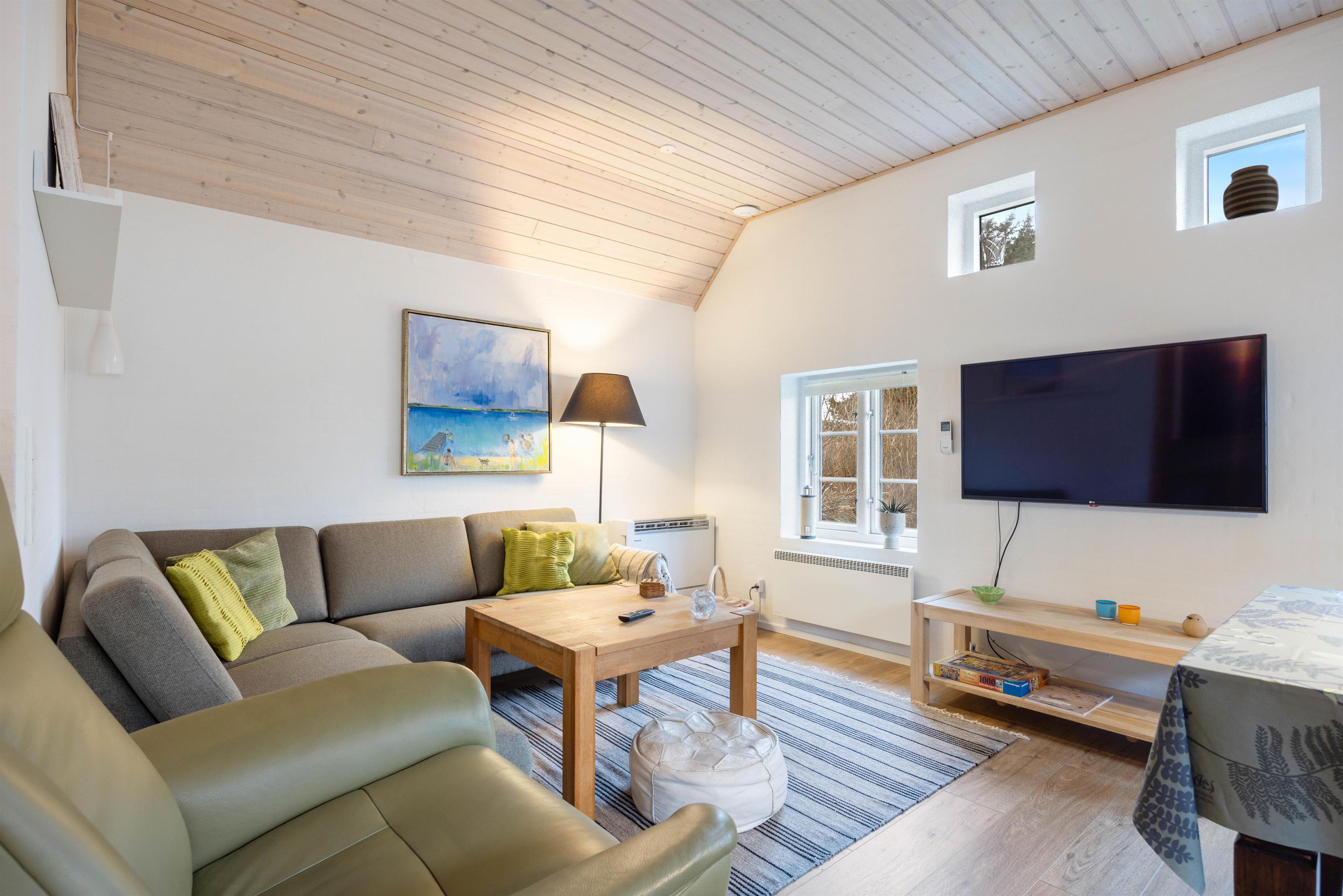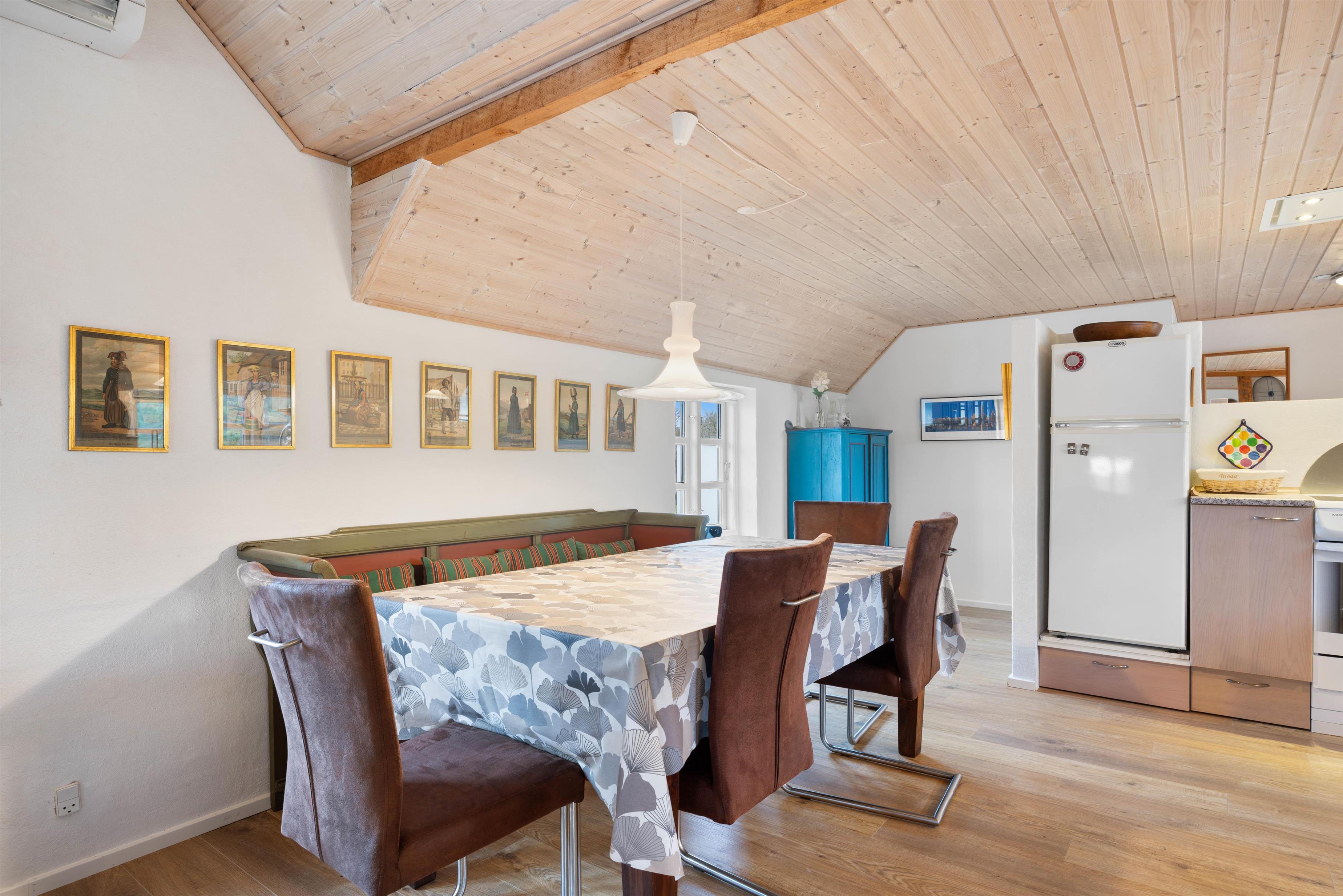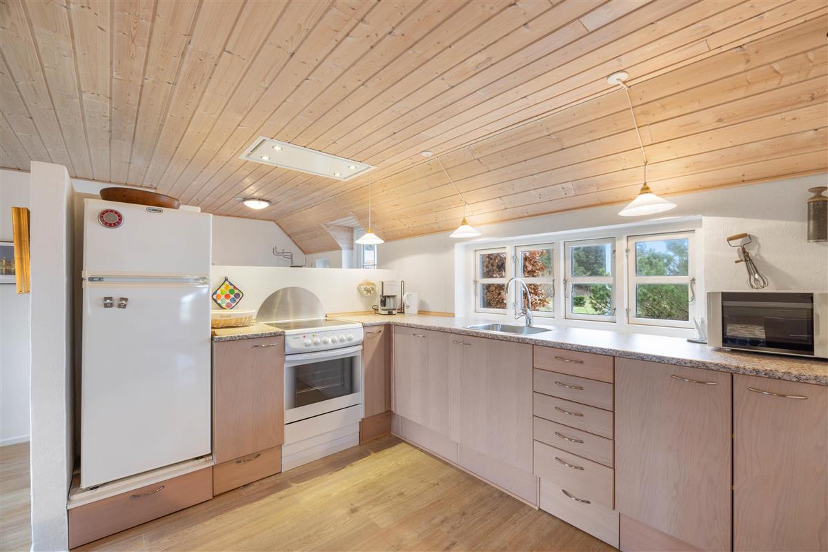 The holiday home is perfectly suited for up to 8 people and two dogs, with two separate living units each accommodating 4 people. Here you can enjoy spending time together while still maintaining your privacy. In the spacious living area, a wood-burning stove invites you to spend cosy evenings by the crackling fire.
