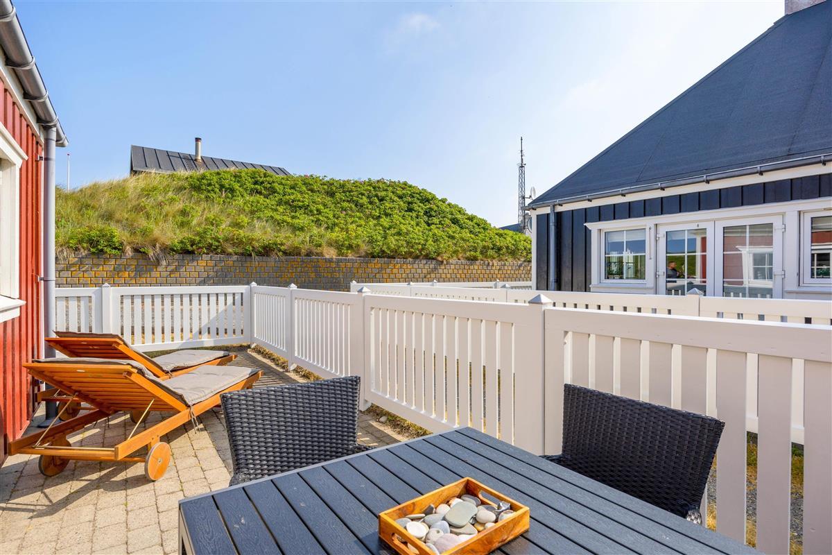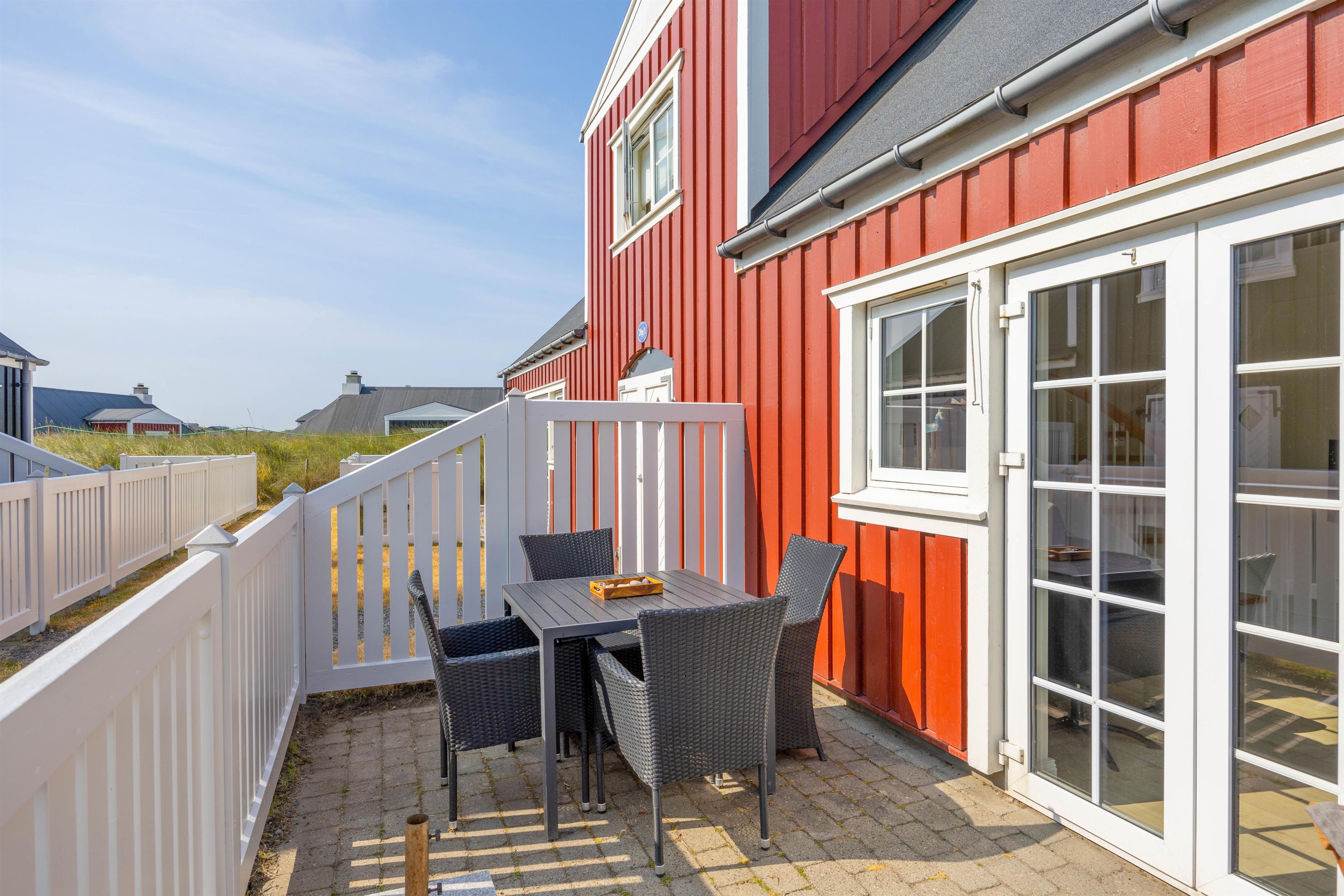 The living area opens onto the holiday apartment's terrace, where you can relax on the garden furniture while enjoying the fresh North Sea air. In the evening, round off an eventful day with a lovely barbecue and enjoy summer evenings on the terrace.