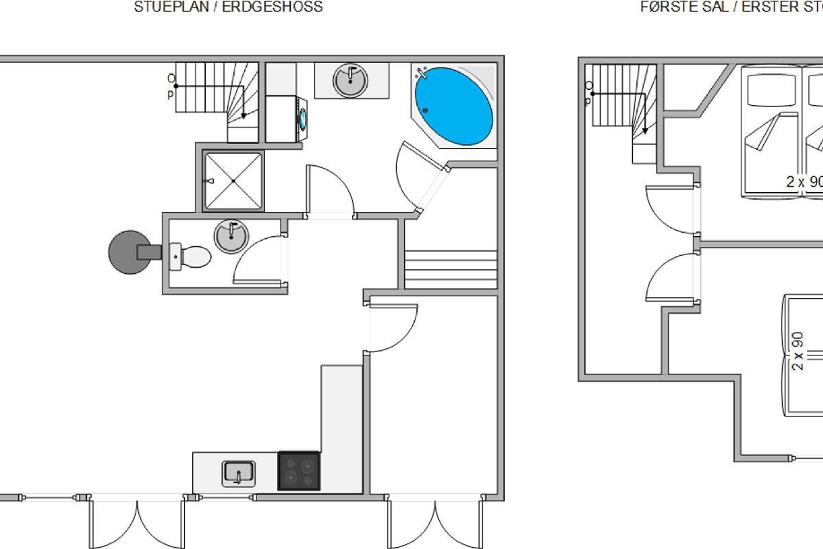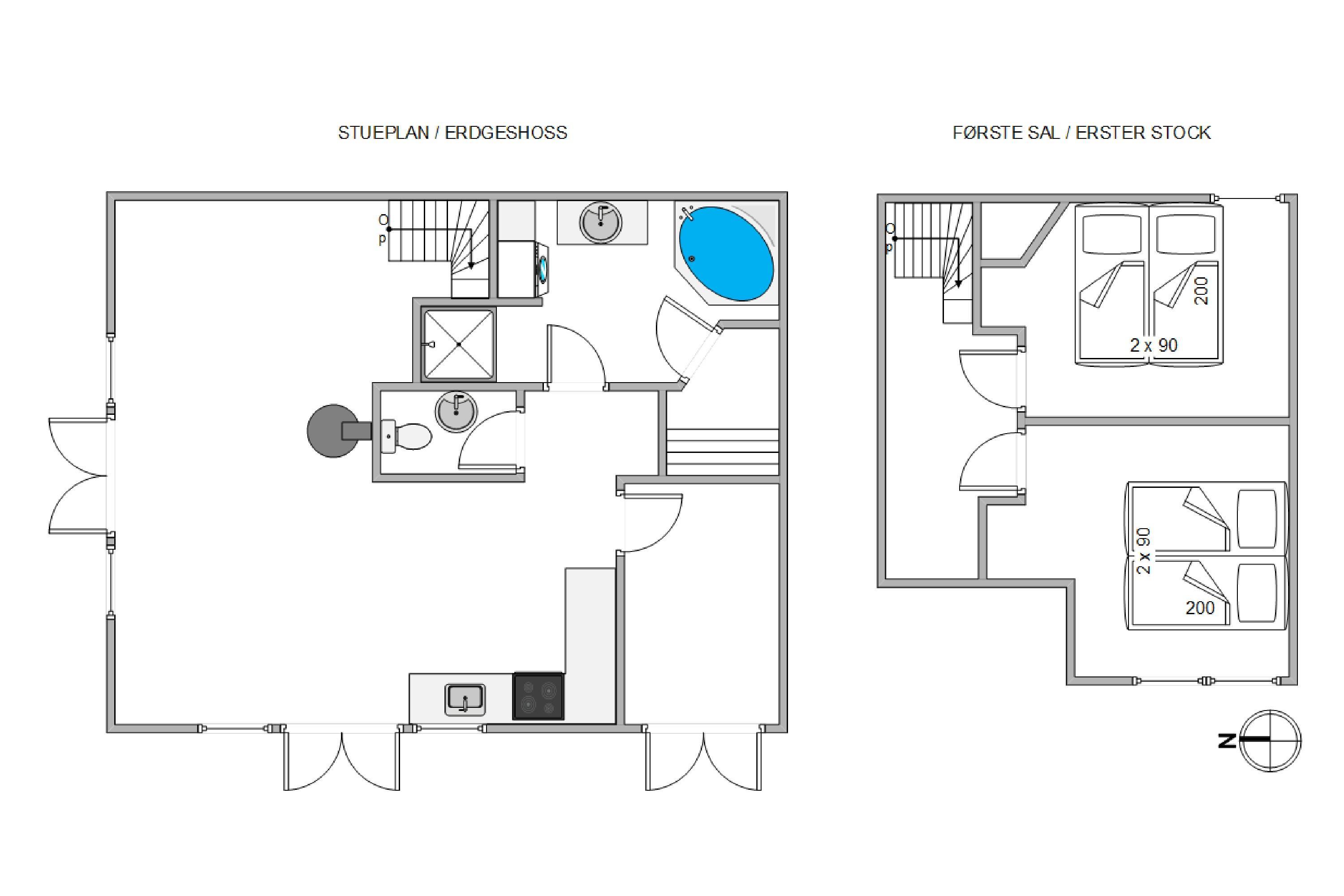 On the first floor, you'll find two bedrooms, each furnished with a double bed. Here you can relax and recharge for more exciting holiday adventures.
