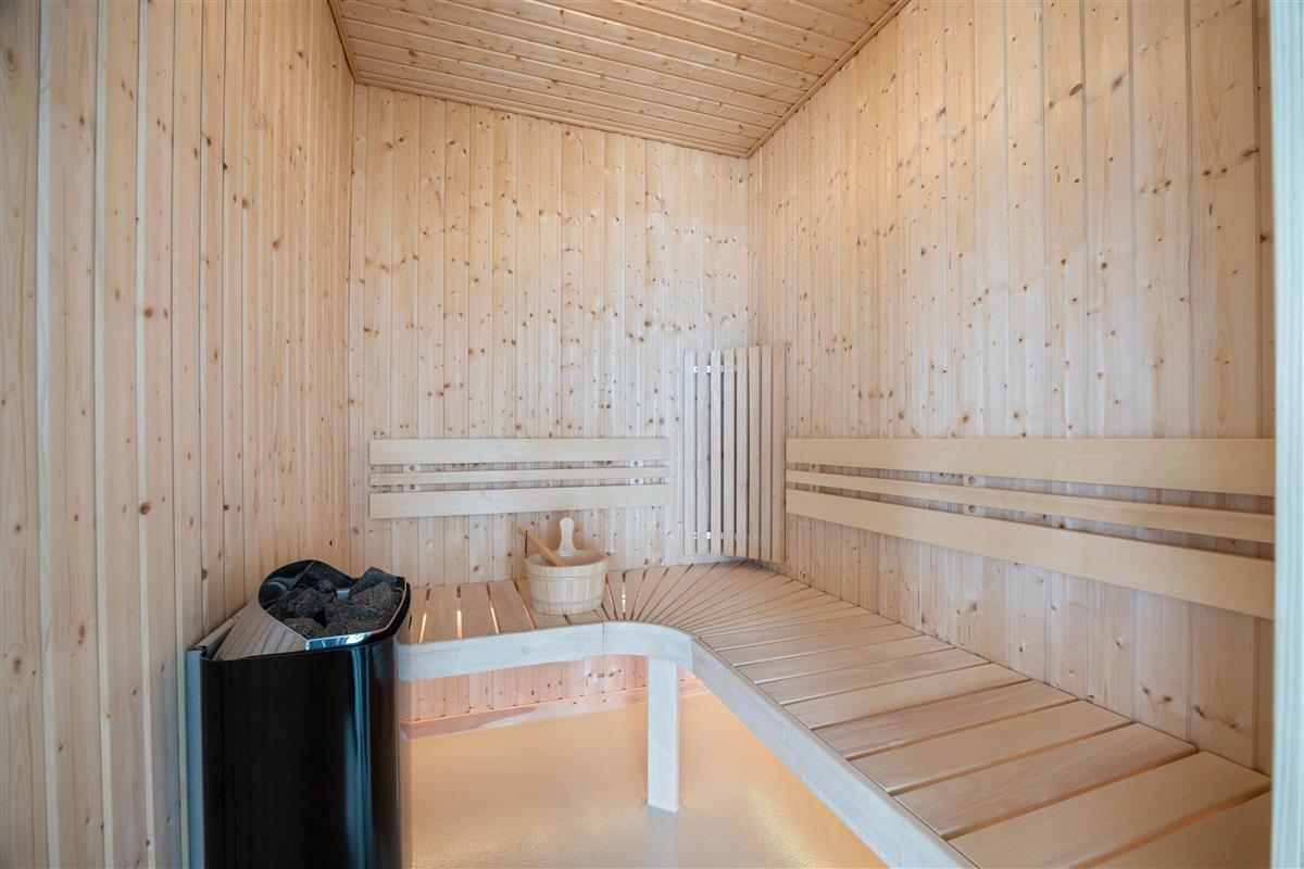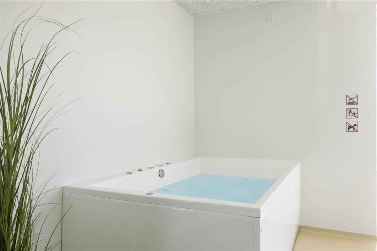 Im Poolhaus befindet sich nicht nur der 16 m2 große Swimmingpool mit Schwimmtrainer, sondern auch eine schöne Sauna, und der Whirlpool, welche für eine Portion Wellness sorgen.