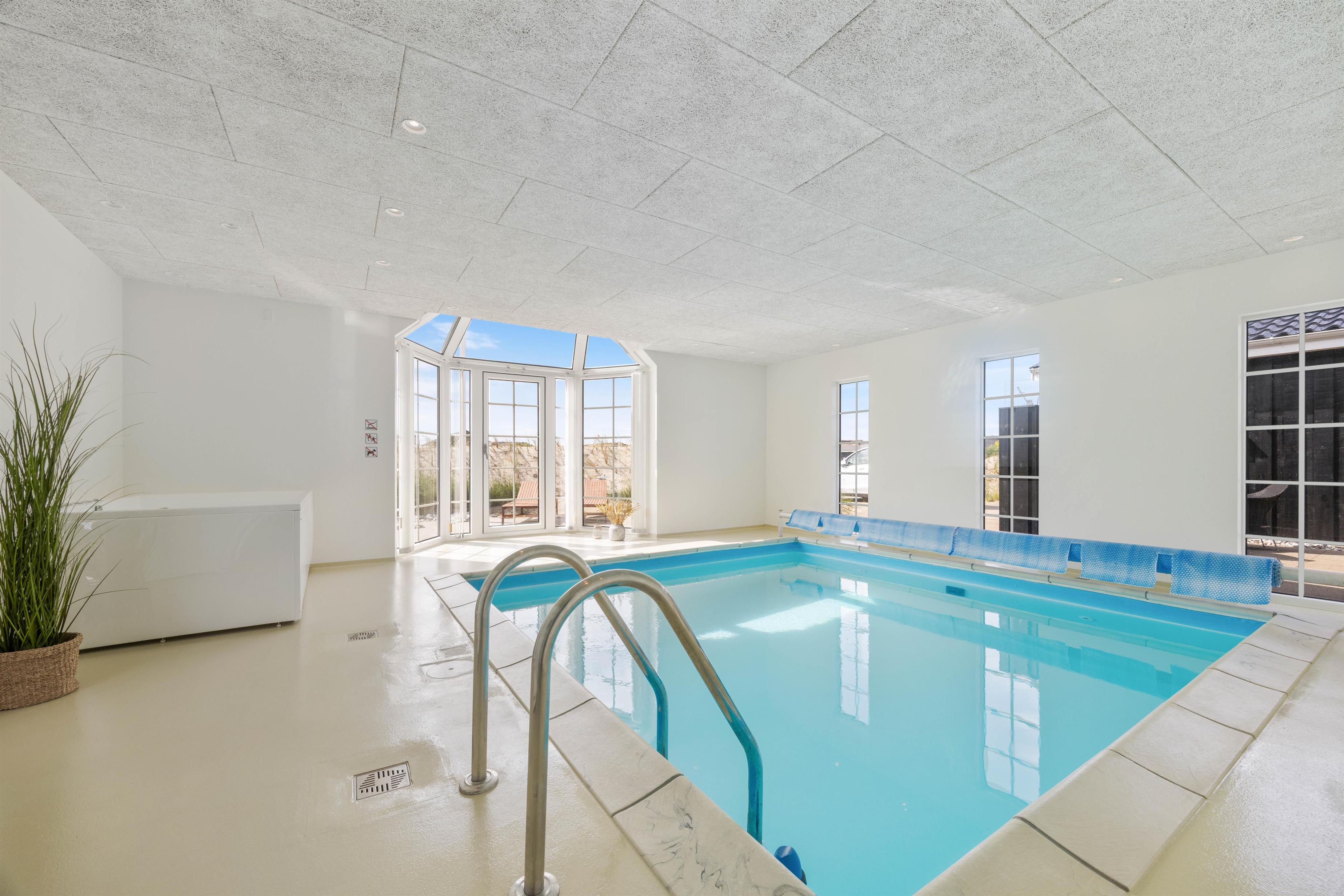 Dieses im Jahr 2025 vollständig renovierte Poolhaus im Nordsøvej 40 bietet euch jede Menge Highlights und Komfort. Es kann bis zu 8 Personen und 1 Hund auf 167 m2 beherbergen. Hier findet ihr eine schöne und stilvolle Einrichtung, einen Swimmingpool und viele weitere tolle Einrichtungen, die zu einem wunderbaren Urlaub beitragen. Stellt euch ein entspanntes Bad im Whirlpool vor, während sich die Kinder im Aktivitätsraum austoben oder einen Gang in die hauseigene Sauna, wo ihr euch danach unter der Außendusche erfrischen könnt. Es gibt 4 Stellplätze vor dem Ferienhaus.