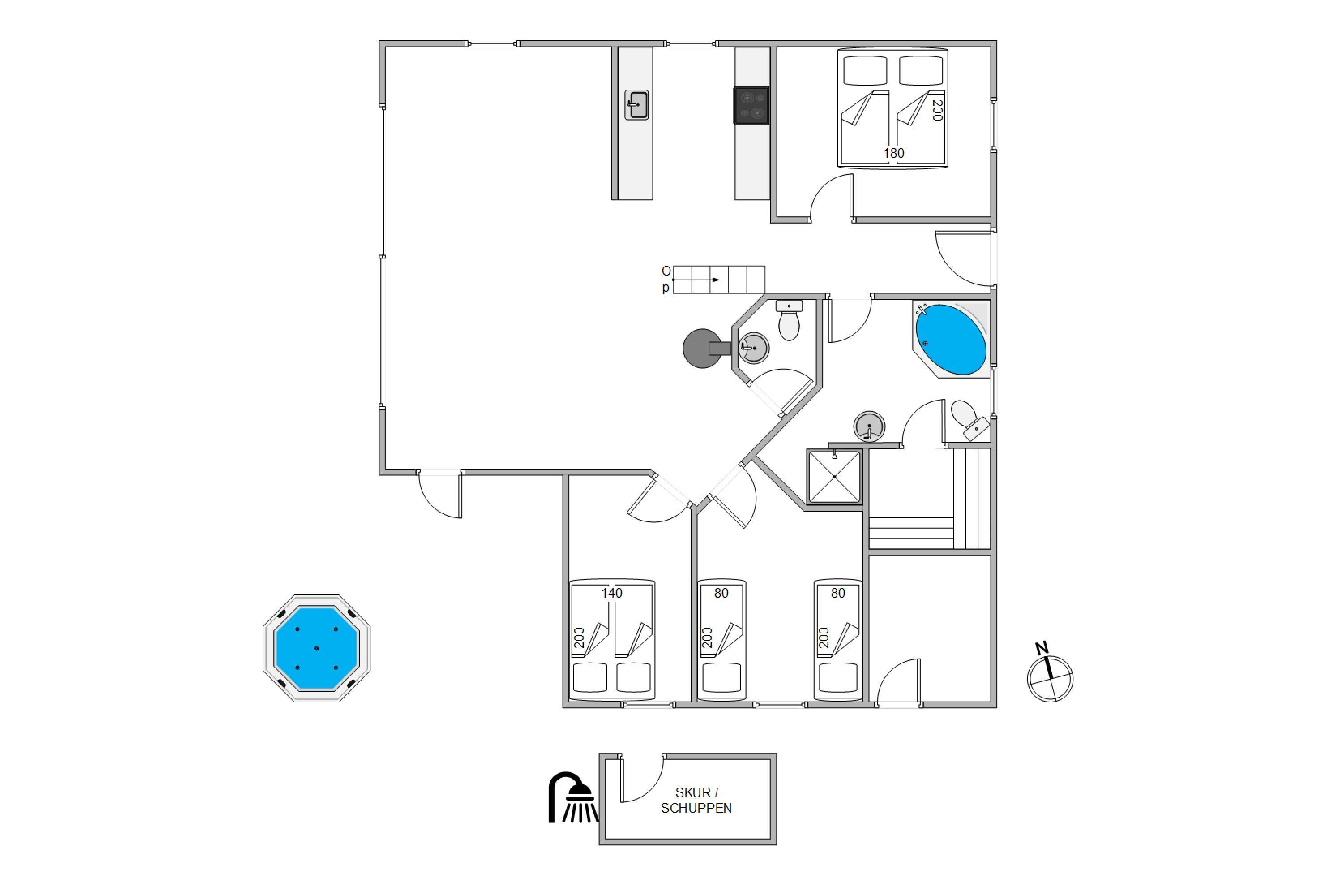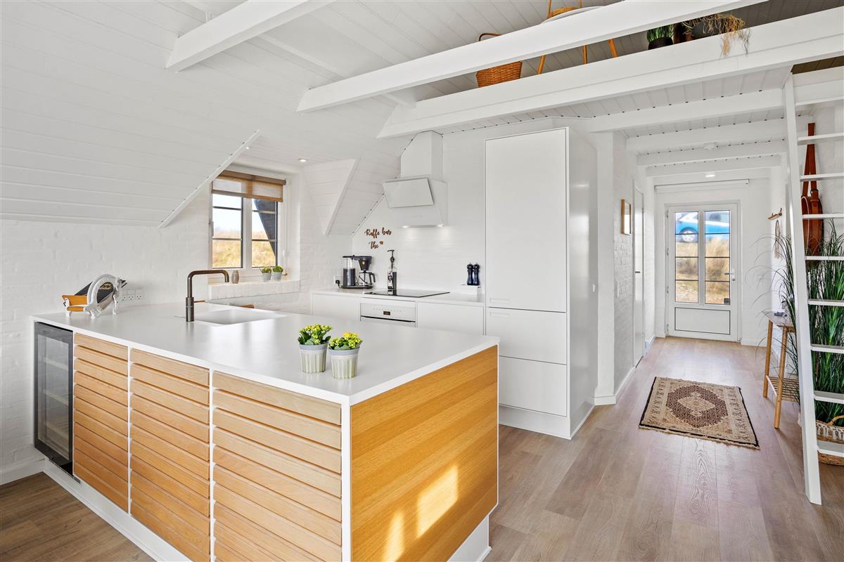 Looking for a beautiful and charming holiday home just 200 metres from the North Sea? Then this holiday home at Plantagevej 46 is perfect for you. This bright, modern, and cosy holiday home is situated on a scenic dune and accommodates up to 6 people, making it ideal for holidays with friends or small families. The holiday home welcomes you with stunning panoramic views across the dunes and an entrance leading to the open-plan living area. The house offers multiple ways to unwind, including a sauna, outdoor hot tub and indoor whirlpool.