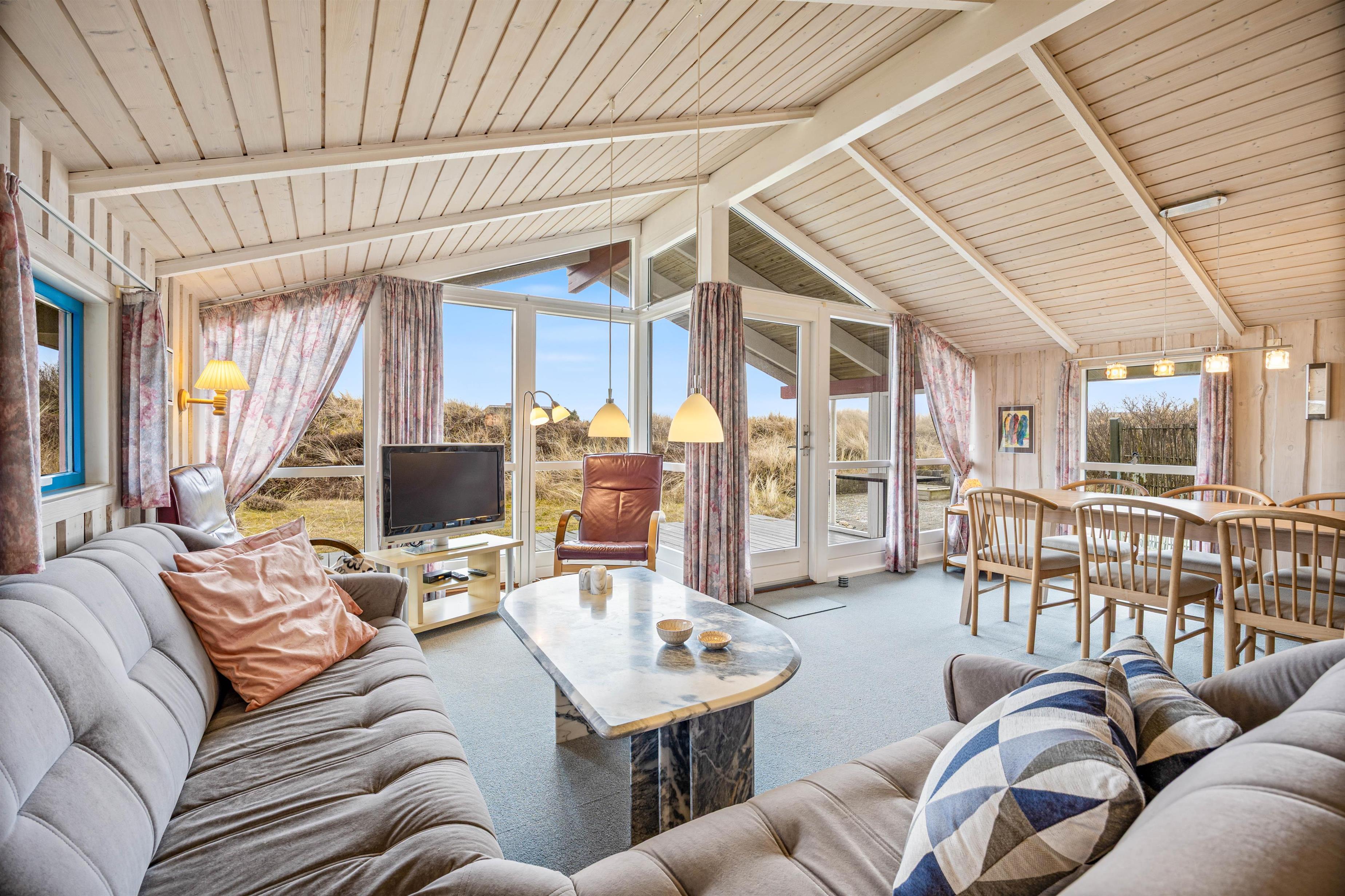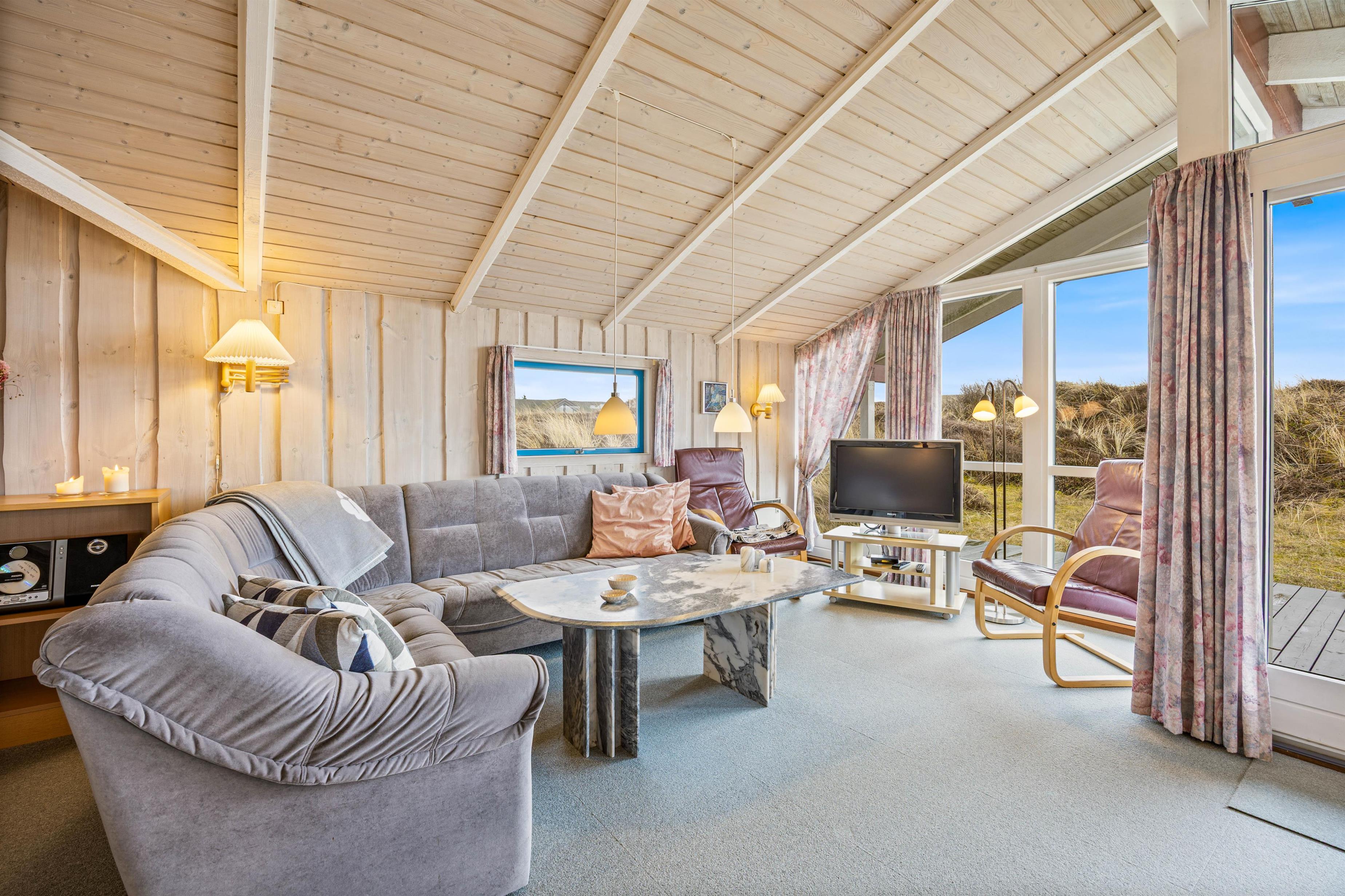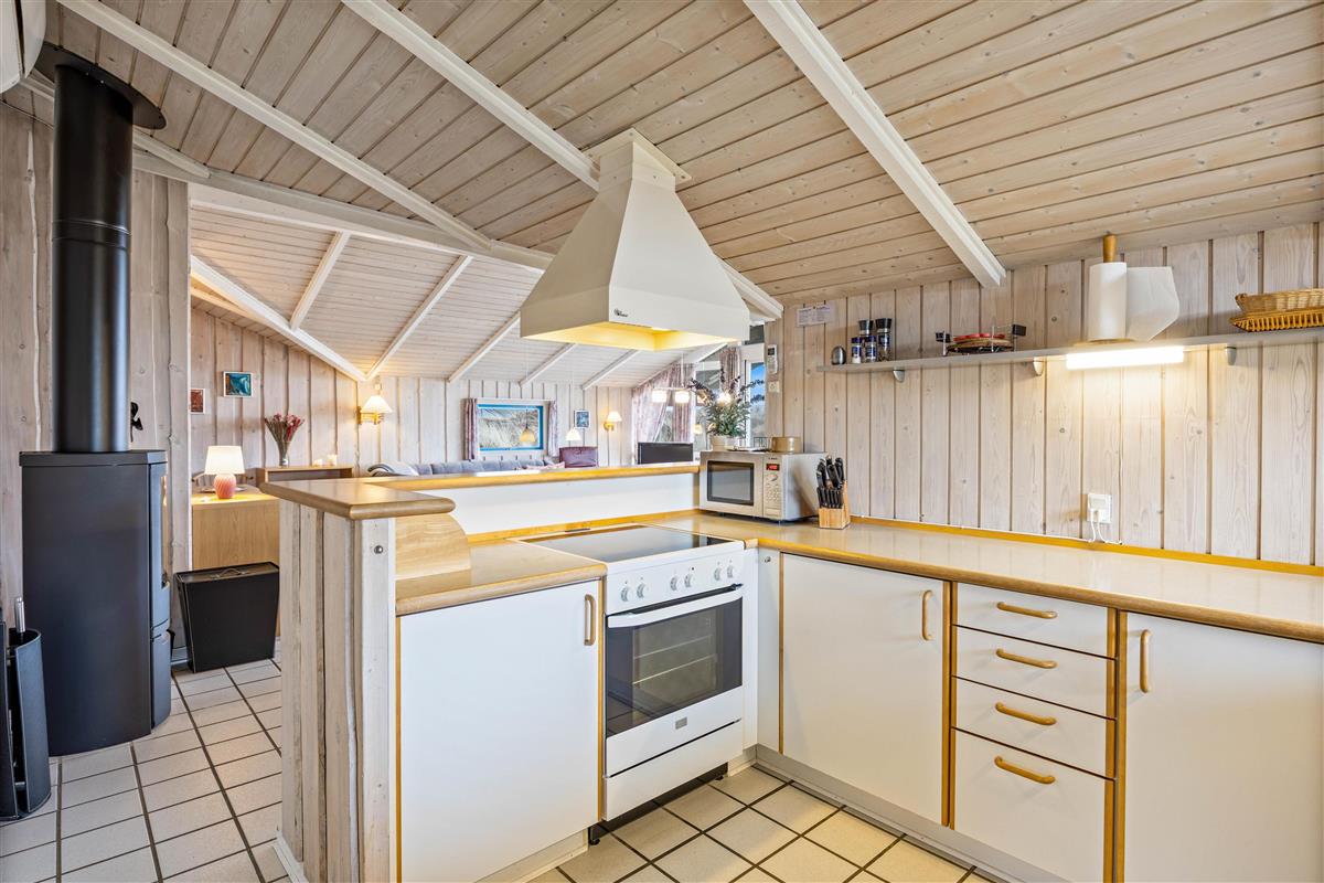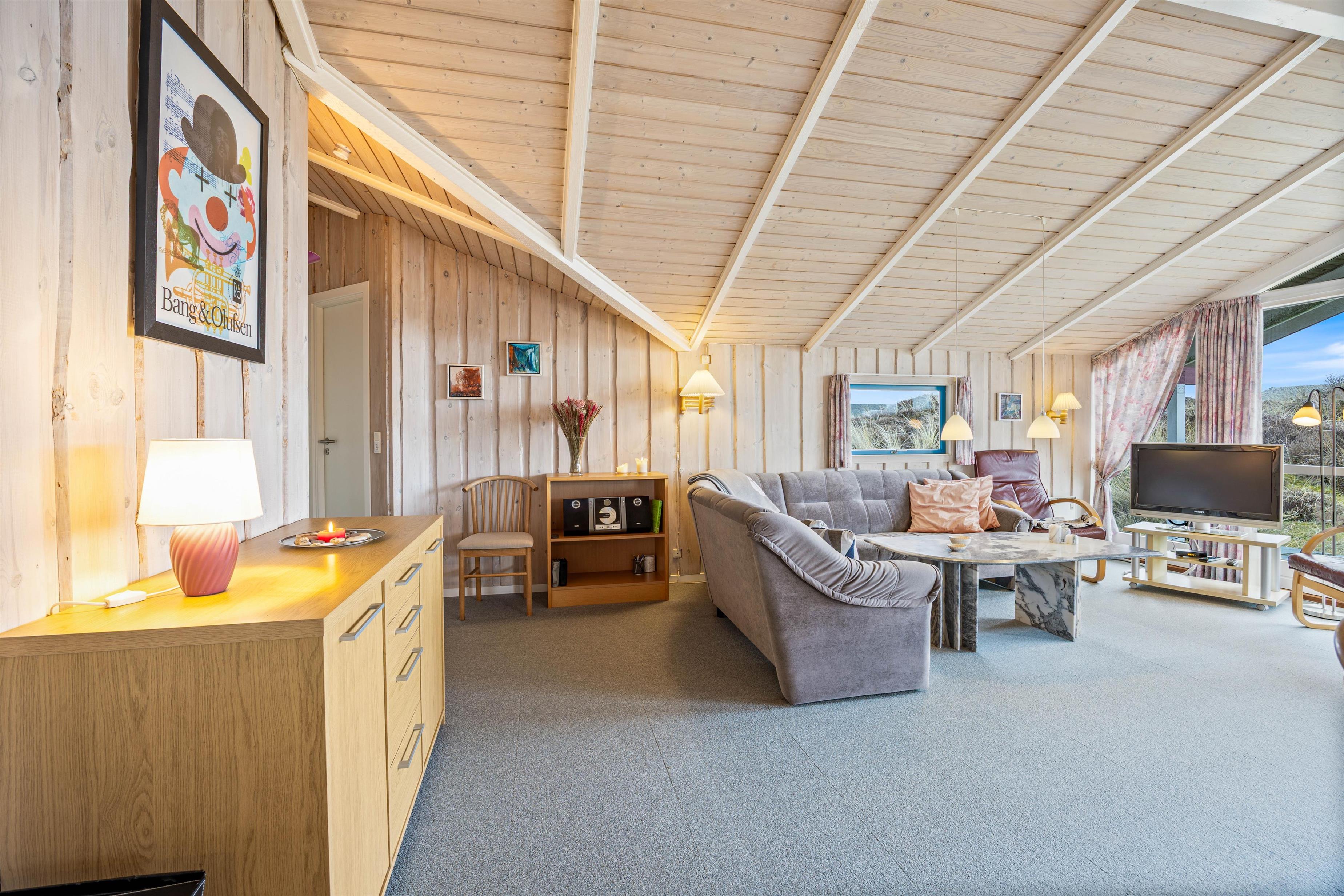 The holiday home is only about 650 m from the beach, meaning nothing stands in the way of daily walks by the water. Here you can take a refreshing dip in summer or let the autumn wind create new hairstyles for you. The centre of Søndervig is about 2500 m away, and especially in summer you’ll be right in the middle of the lively town centre. Here you can take care of your everyday shopping needs and also eat out if you don’t feel like cooking.
