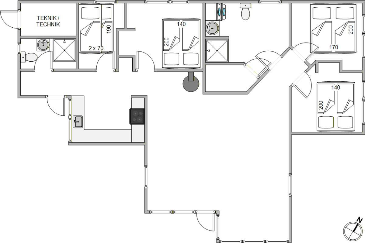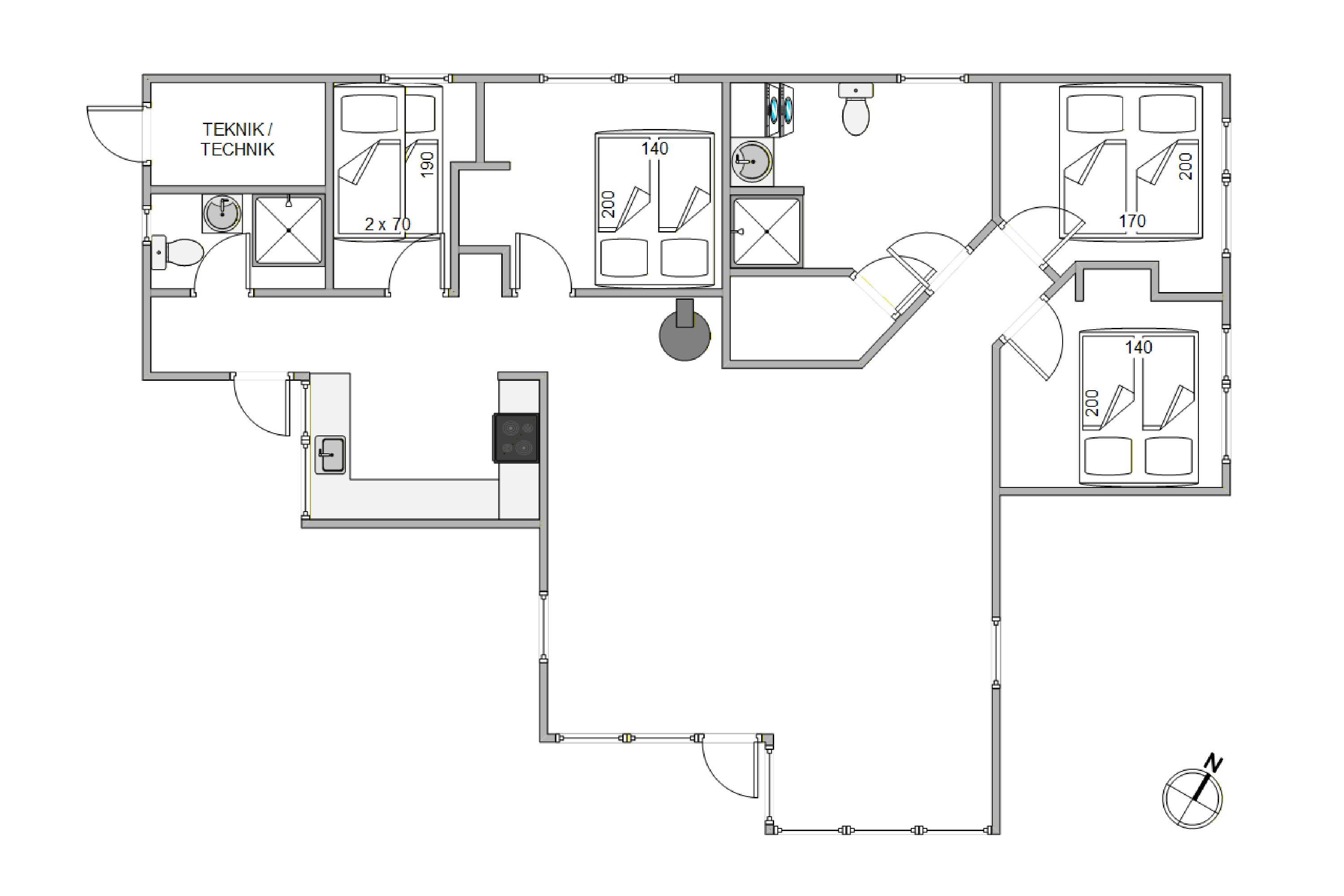 The holiday home welcomes you with an open-plan living concept where you can spend plenty of time together. Here you can try out new recipes together and then leave the washing-up to the dishwasher or enjoy a fun games night at the dining table to crown the new poker champion. On cooler days, you can make yourselves comfortable in front of the wood-burning stove, and for those who prefer a constant and pleasant indoor climate, an energy-saving heat pump has been installed.