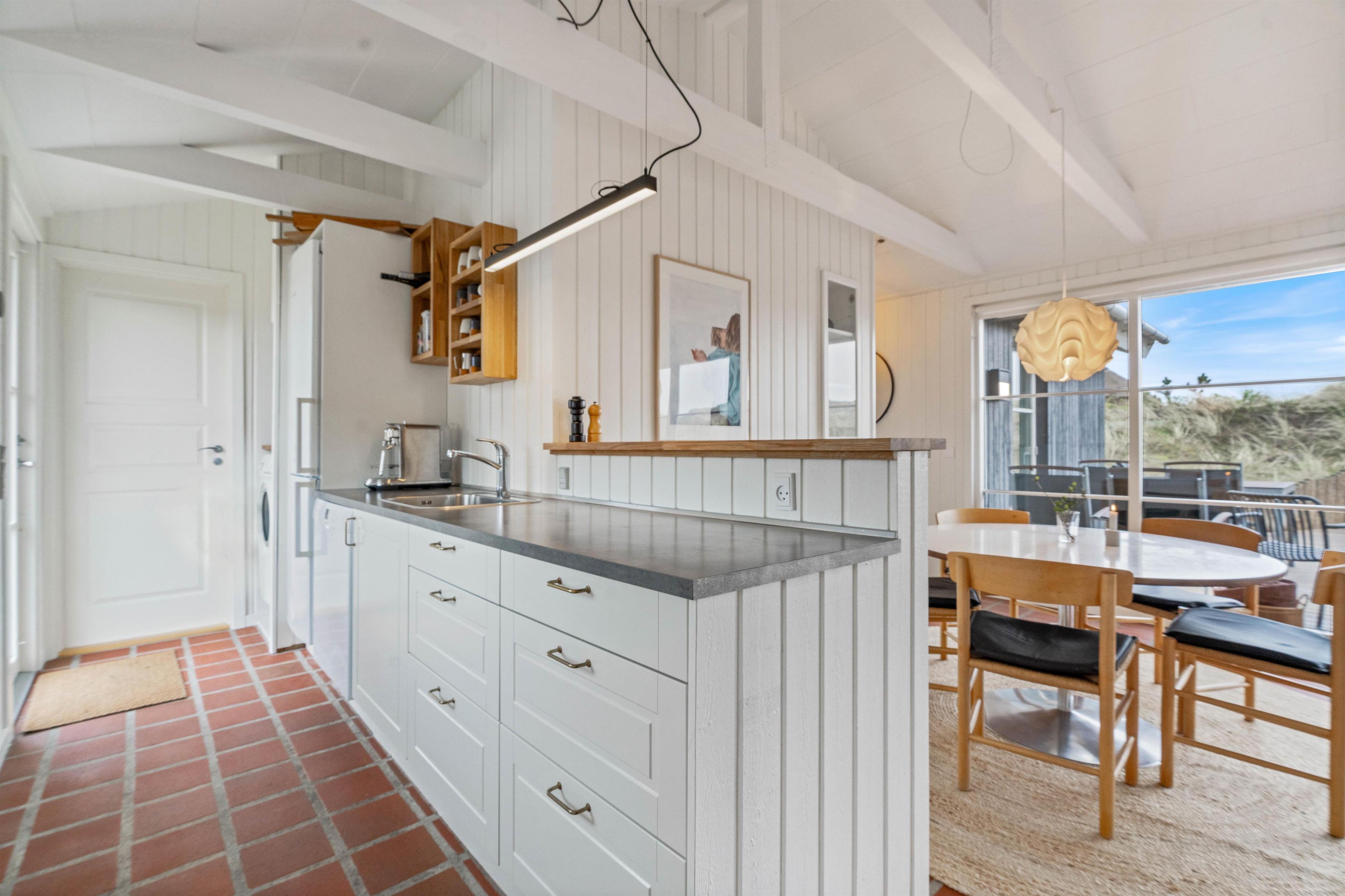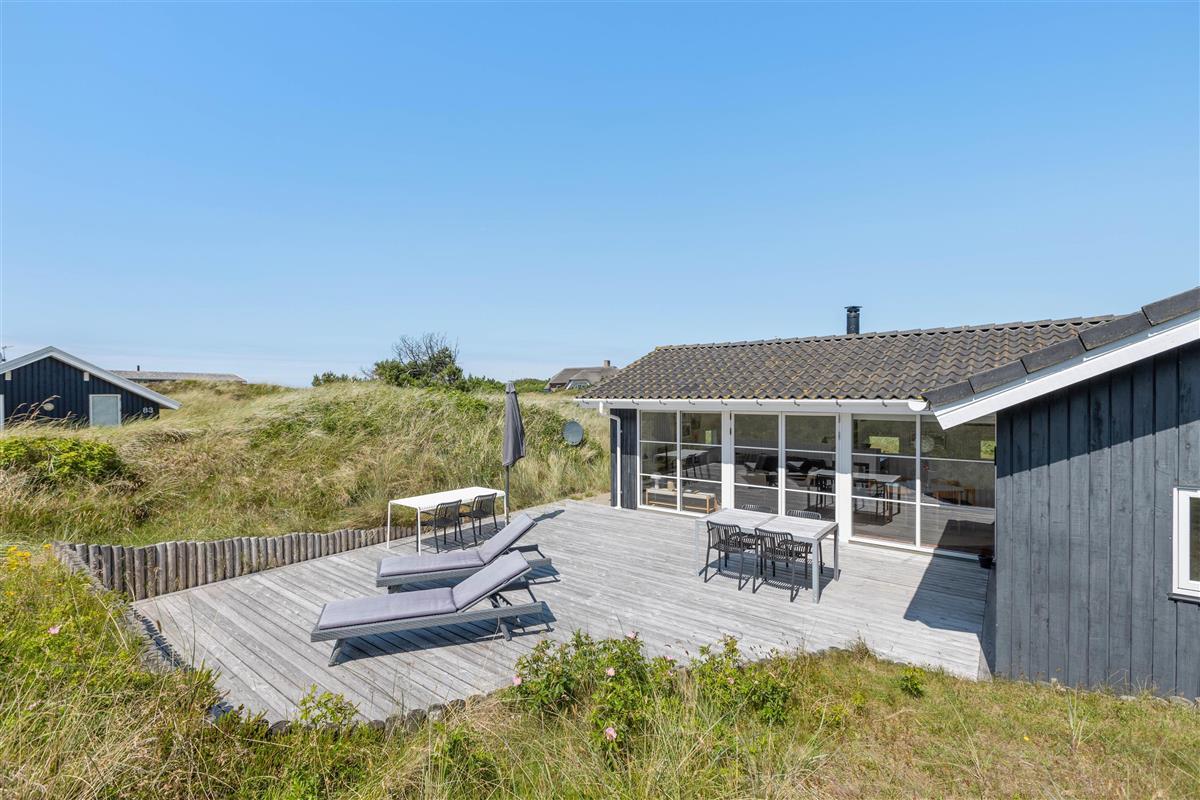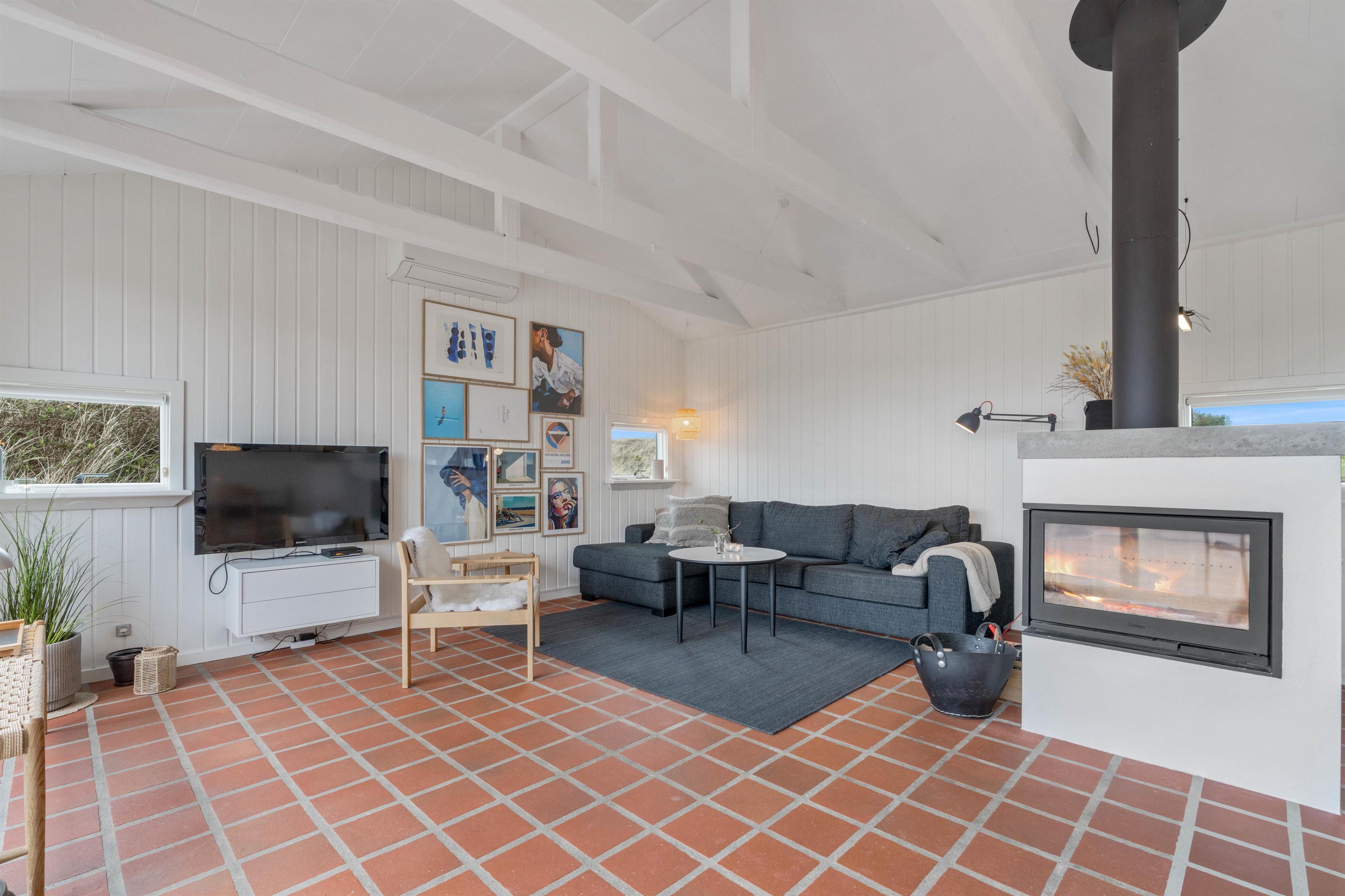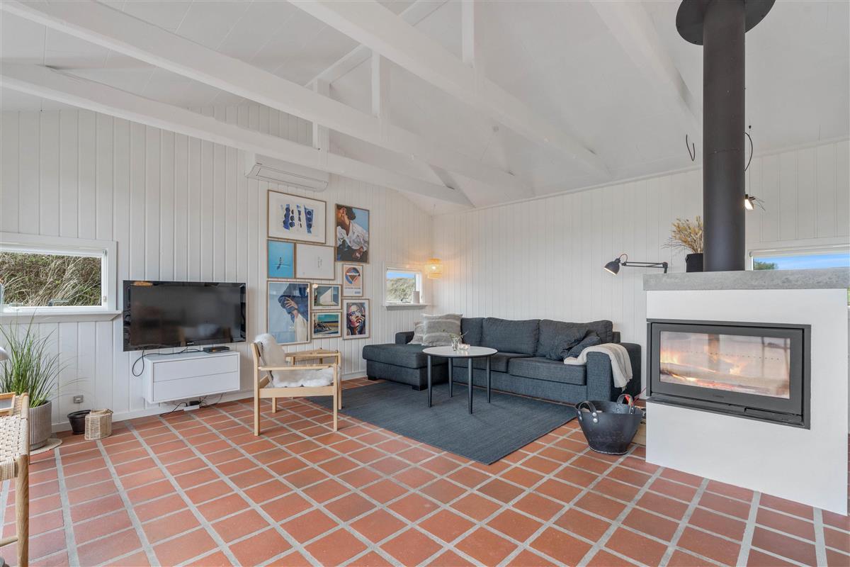 This holiday home near the beach, nestled in the dunes of Søndervig at Jakob Bondes Vej 81, awaits you by the Ringkøbing Fjord. Featuring cosy touches throughout, you can enjoy the comfort of a wood-burning stove insert on cooler evenings and benefit from the efficient heat pump heating system. With 82 square metres of living space, this holiday home offers ample room for up to 5 people and your dog. It provides an ideal base for both holiday activities and relaxation, situated right next to the beautiful dune landscape and the North Sea on Denmark’s west coast.