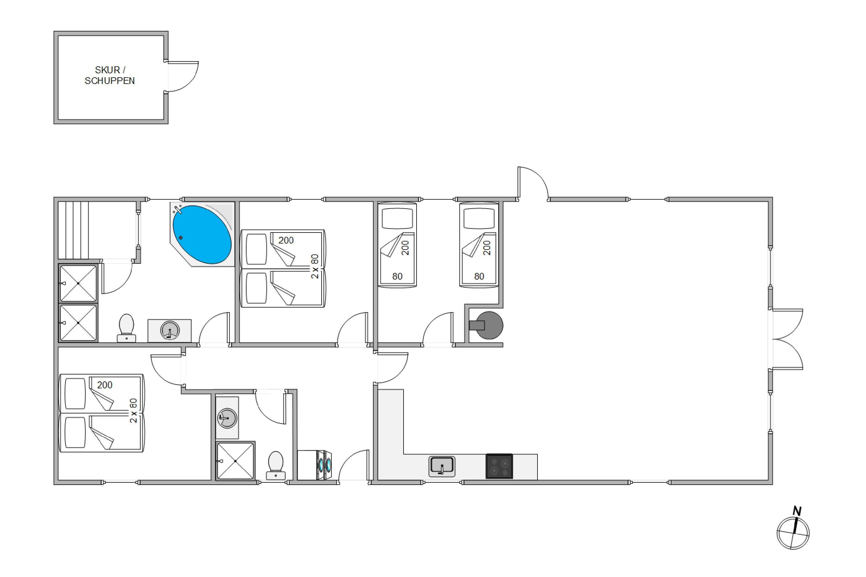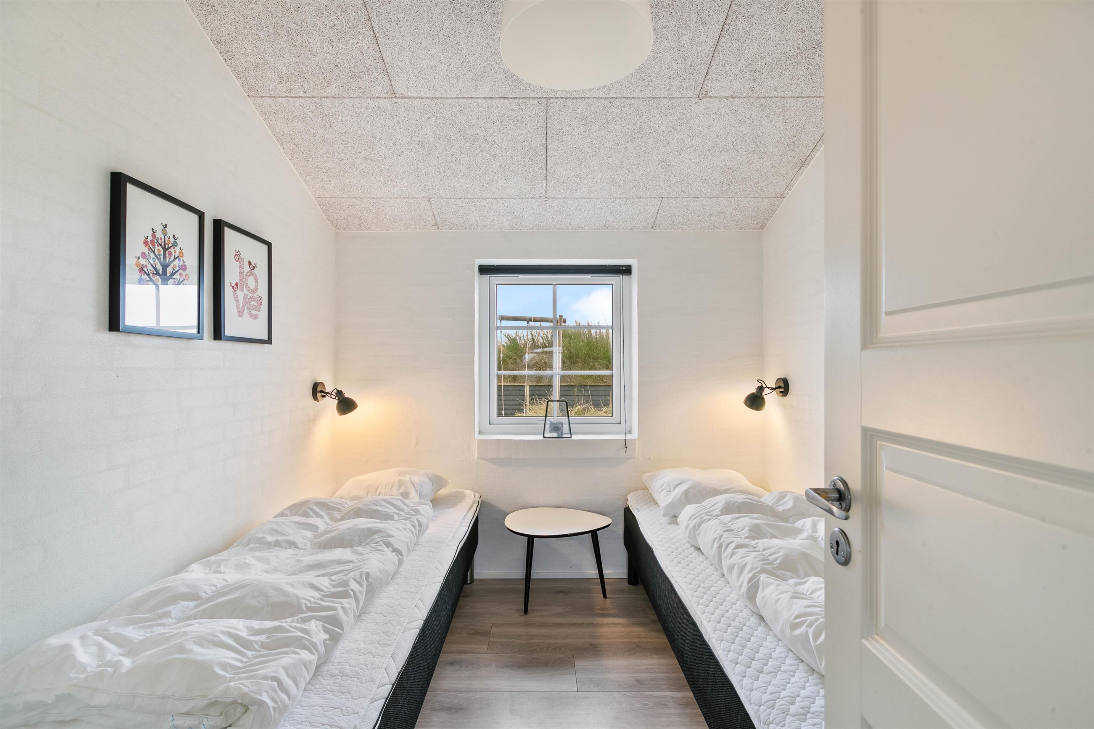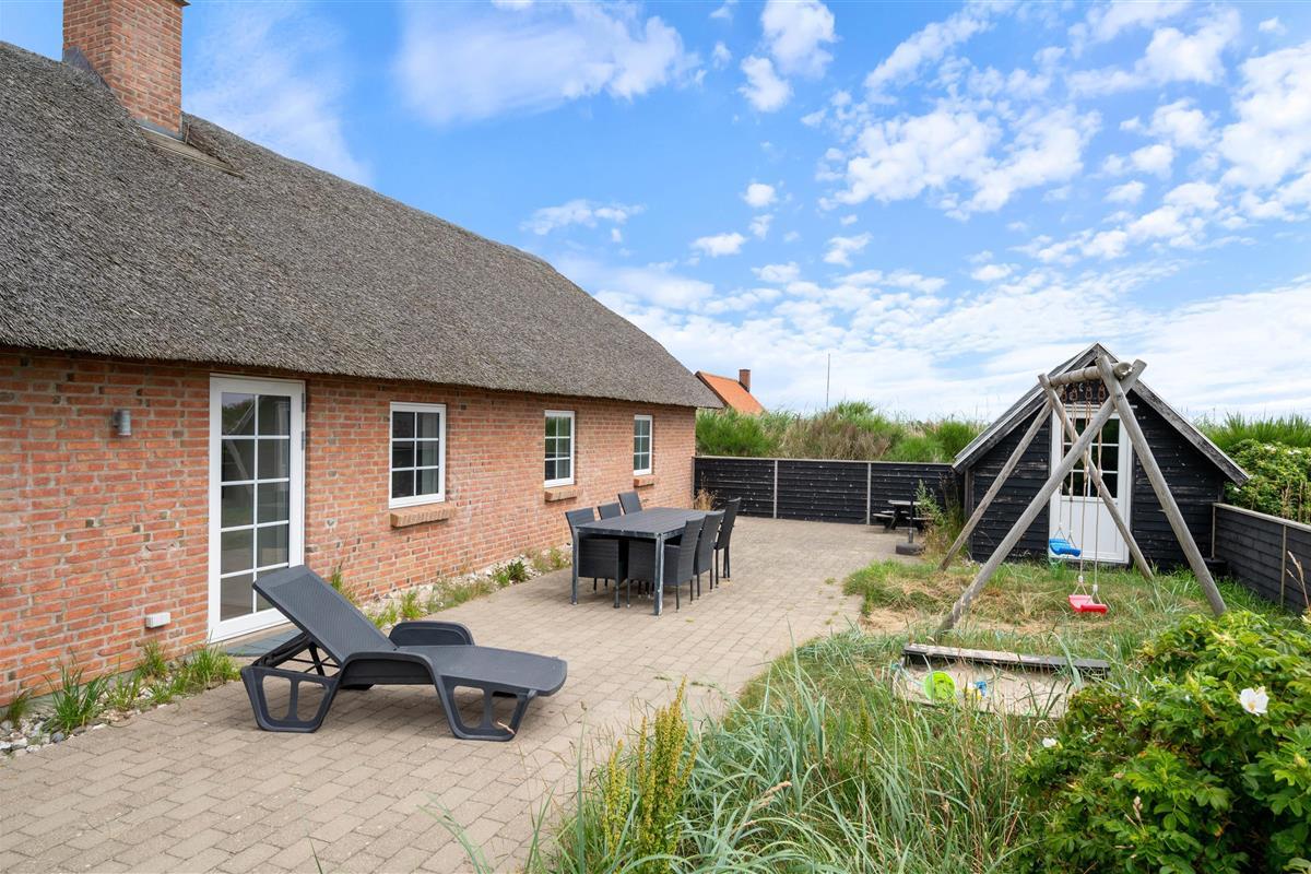 This beautiful house on Holdvej, built in 2017, features modern and bright interiors. The living area connects to the open-plan kitchen, creating a spacious room where the whole family can gather while preparing meals. The sleeping accommodation is arranged across three lovely bedrooms; two with double beds and one with twin beds. The house sits on a natural plot, complete with a sandbox and swing for younger children. The holiday home's terrace is screened and enclosed, ideal when travelling with small children and the family dog. Garden furniture and a barbecue are included in the basic equipment.
