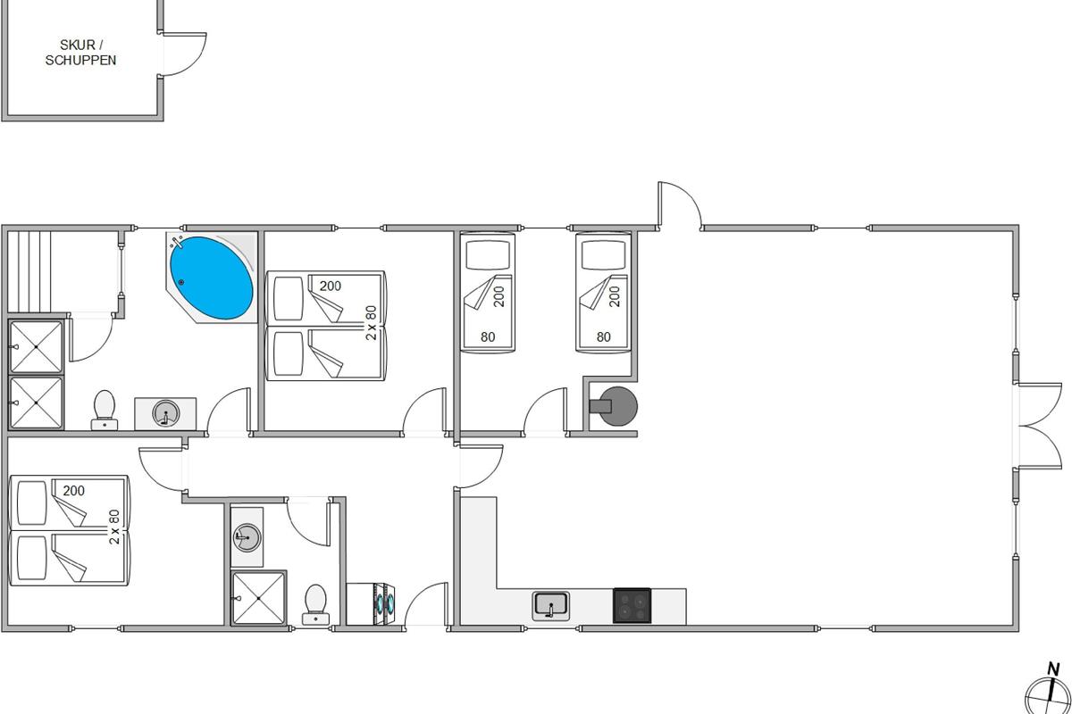 A fantastic new holiday home on the North Sea coast in Holdvej, Søndervig, built in 2017. It's located just a short distance from Søndervig centre and only a few minutes' walk from the beach. The holiday home accommodates 6 people and welcomes the family dog.