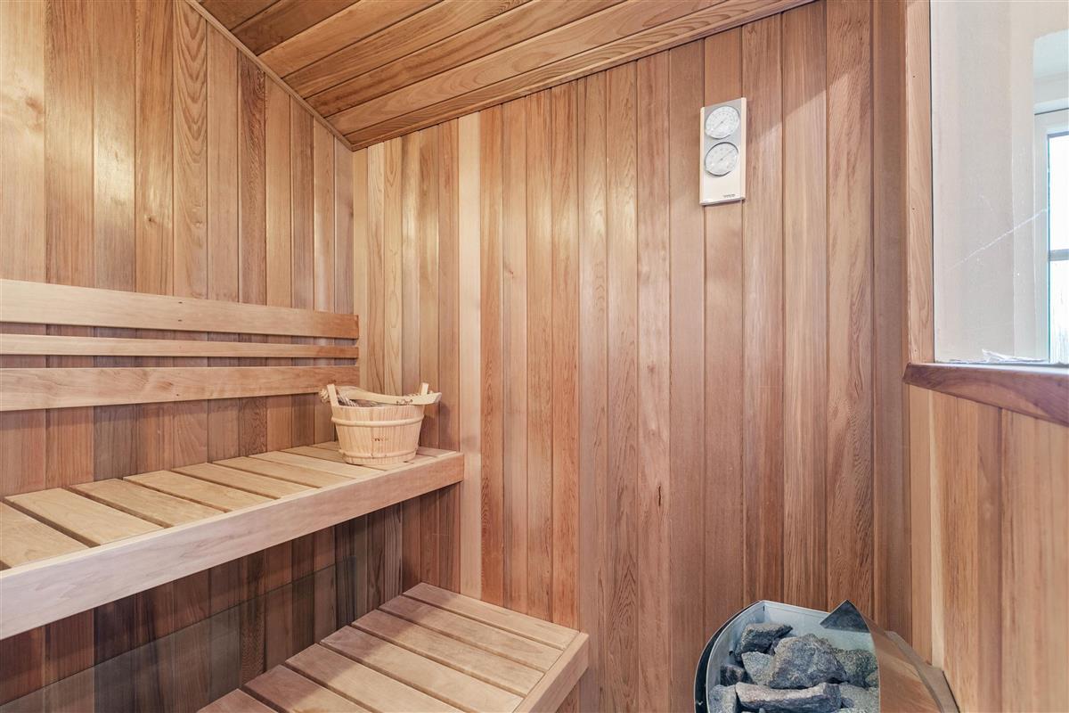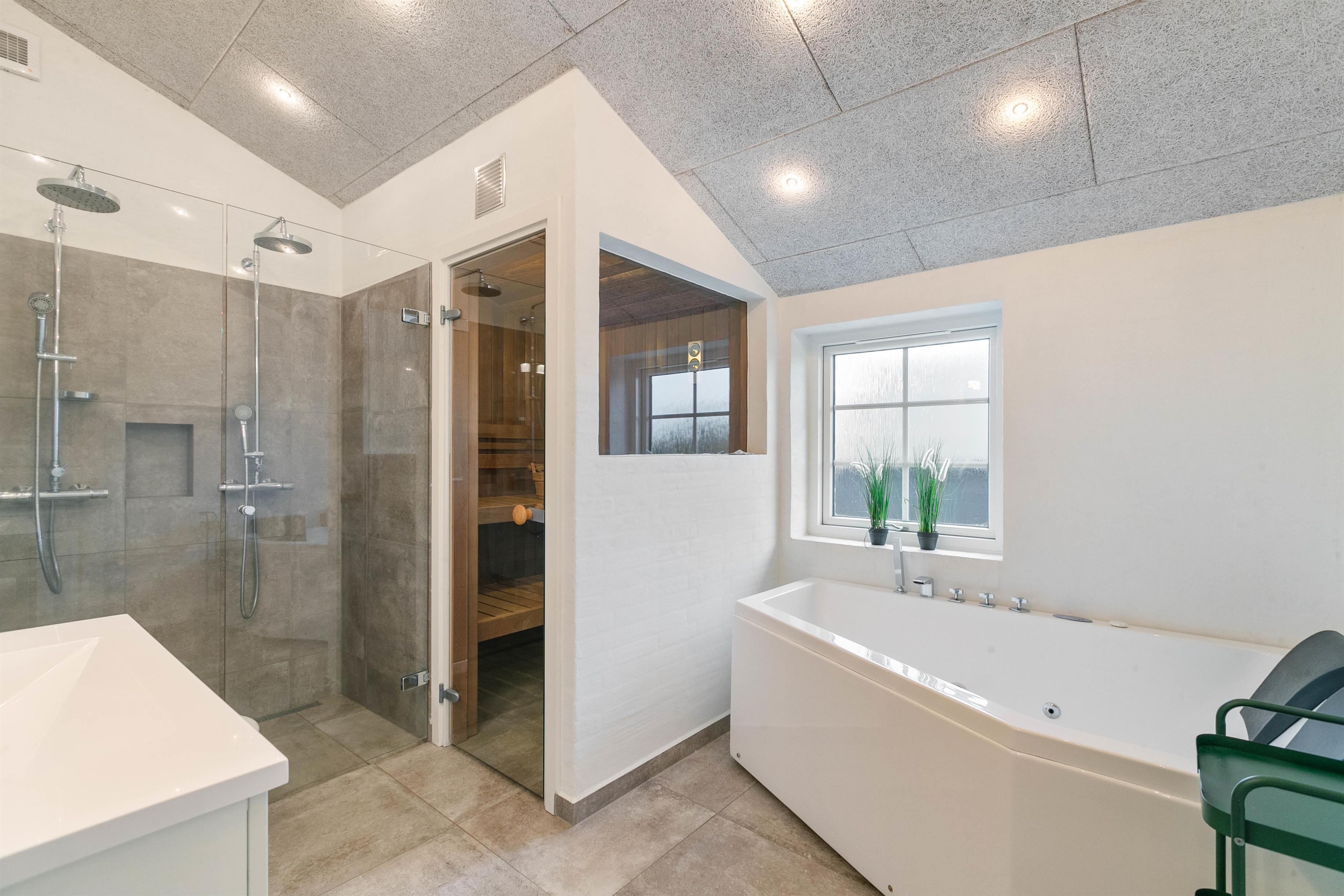 There are two beautiful bathrooms, one of which features a sauna and whirlpool. What better way to unwind at the end of the day? Afterwards, you can light the wood-burning stove for a cosy atmosphere while playing board games or watching films.