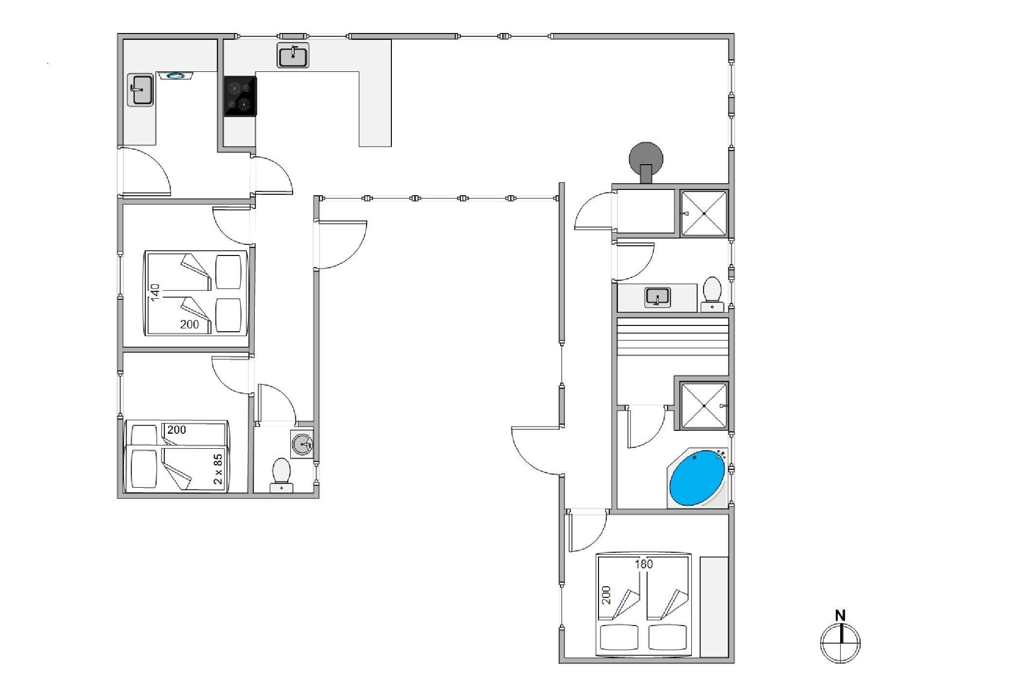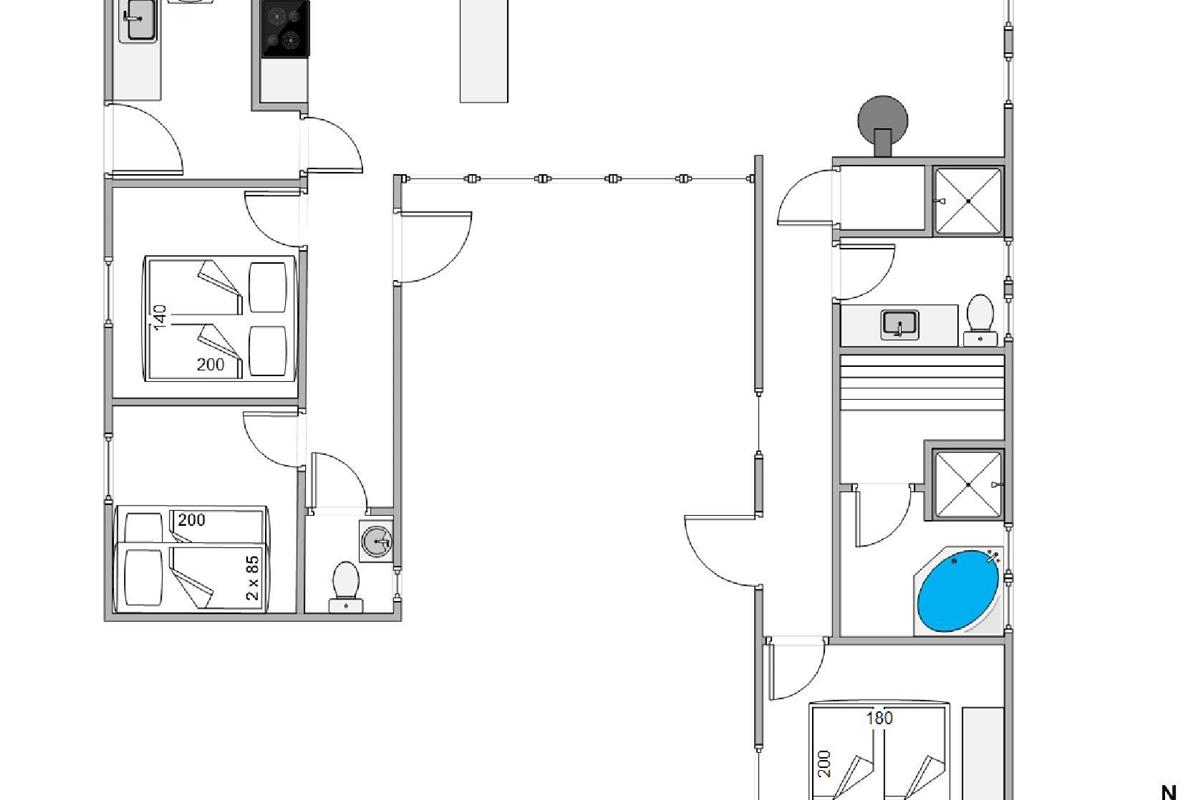 This beautiful holiday home at Hafavej 133 enjoys a central location in Søndervig, with everything close at hand. Notable highlights include the hot tub and sauna, as well as the short distance to the beach and North Sea. The well-equipped holiday home features a lovely sheltered terrace nestled between the two wings of the house.