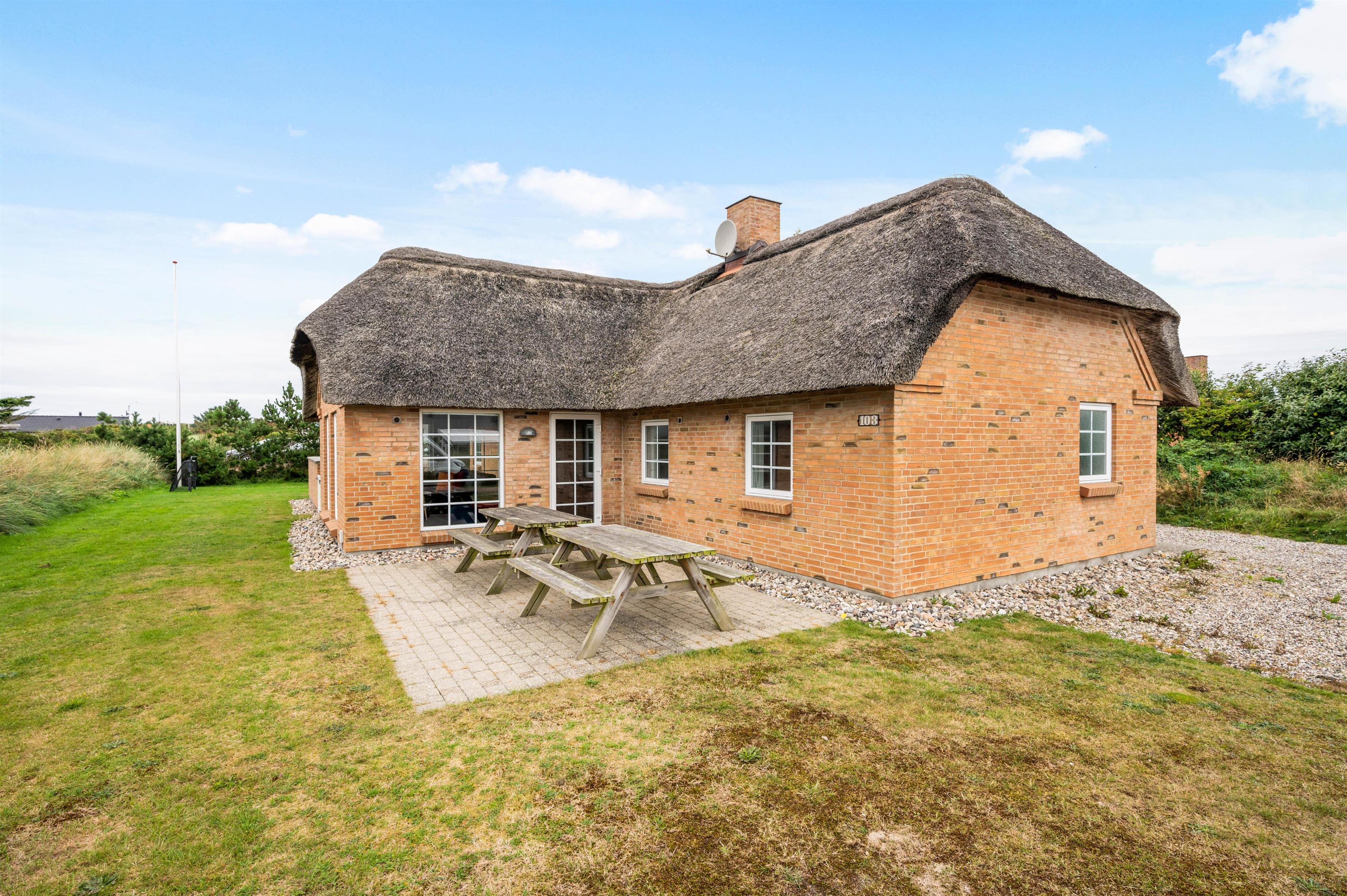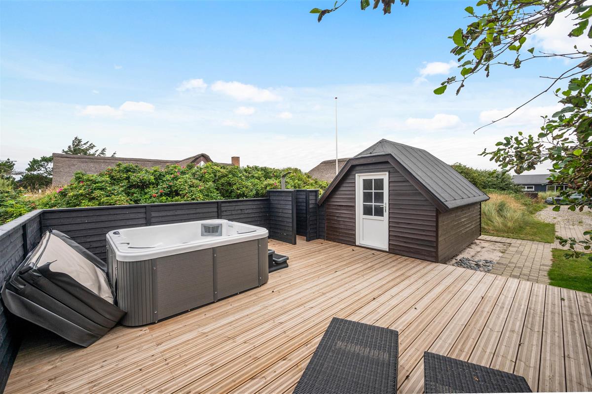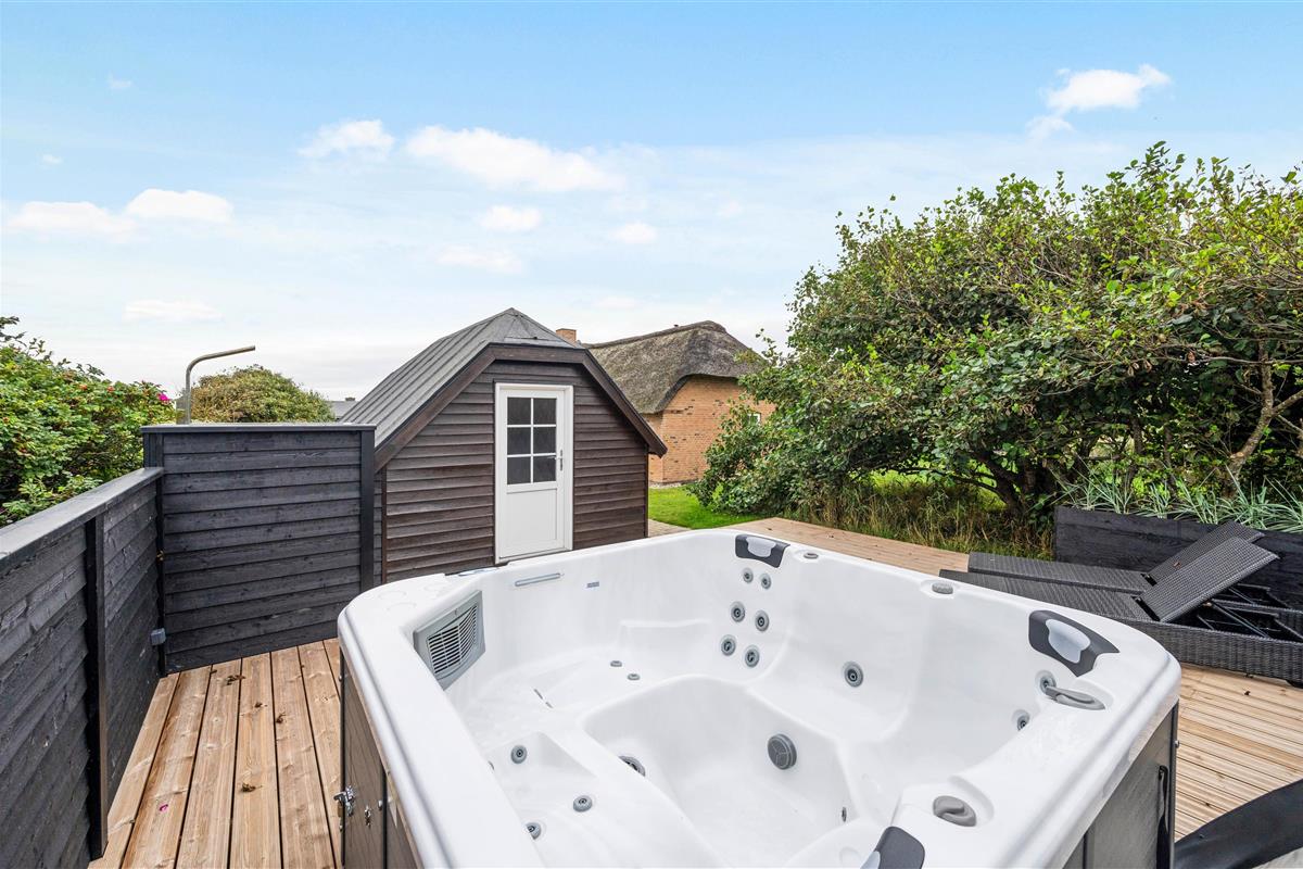 This beautiful thatched holiday home, built in 2009, is an excellent choice for those seeking both quality and comfort. Located at Nordsøvej 103, it's close to the centre of Søndervig and just 1.2 miles (2 km) from the lovely golf course. The holiday home is within walking distance of restaurants and shops, which are always worth a visit. Equipped with an energy-saving heat pump, stylish furnishings, free Wi-Fi, and the absolute highlight - an outdoor hot tub and outdoor shower - this holiday home leaves nothing to be desired.