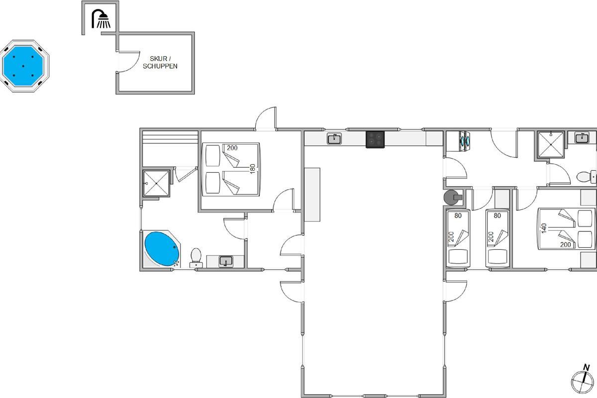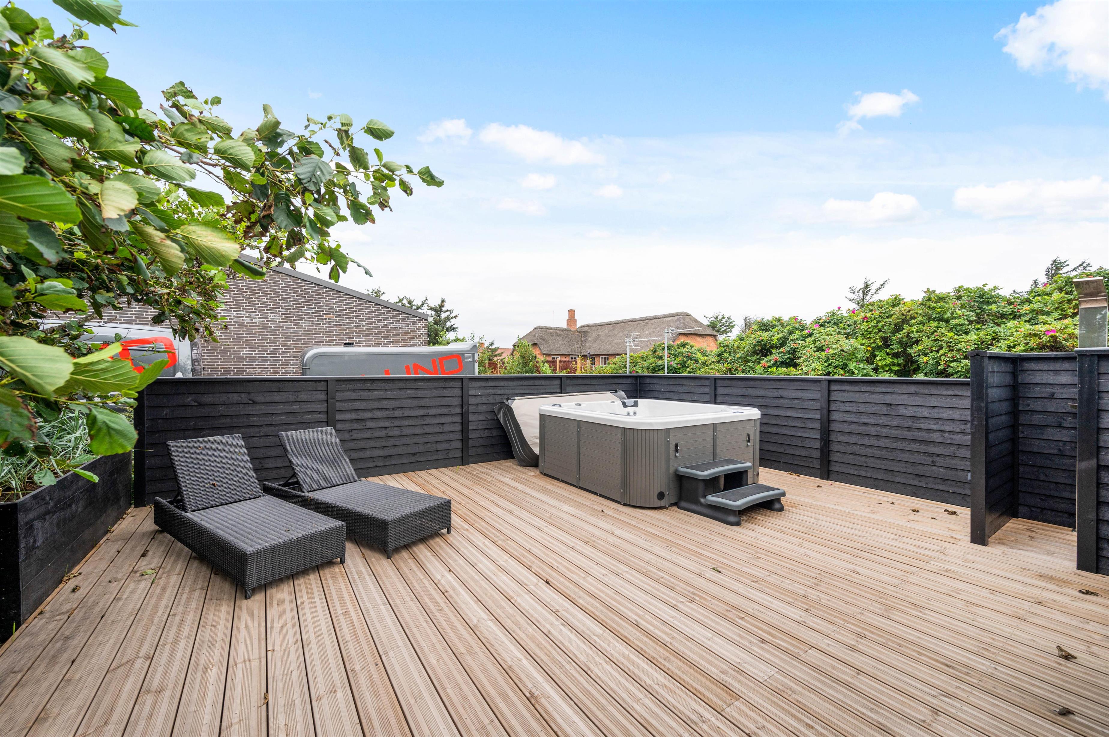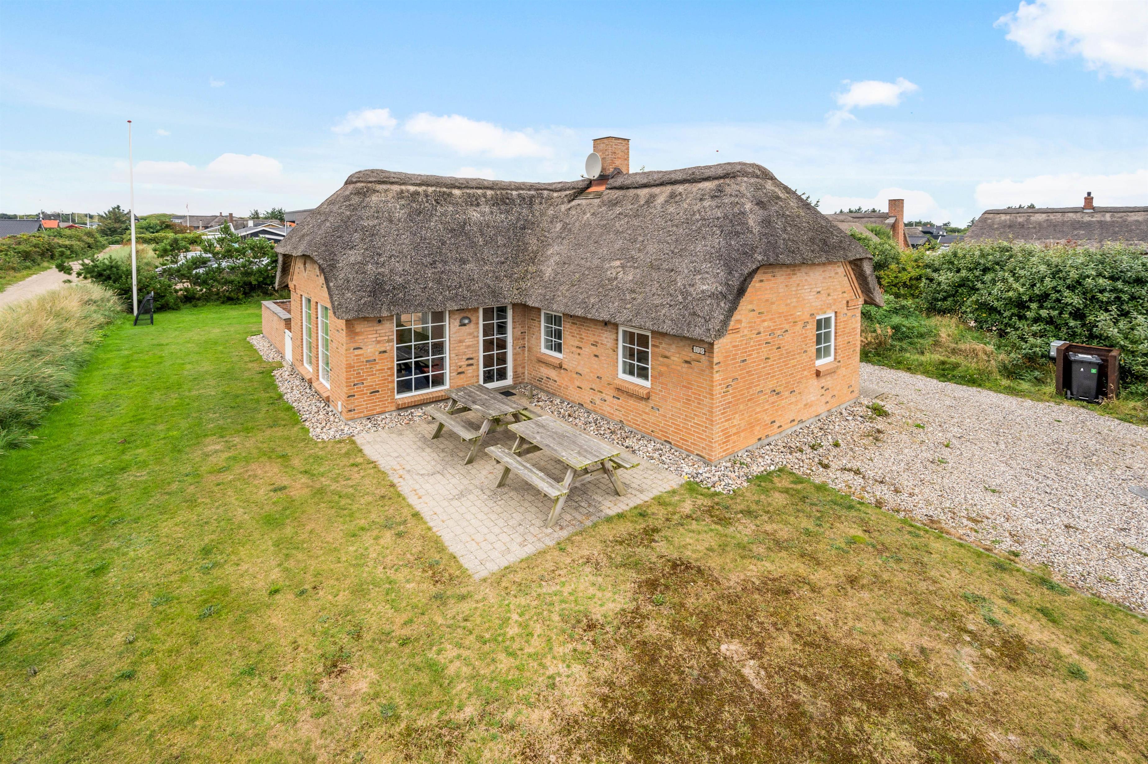 This beautiful thatched holiday home, built in 2009, is an excellent choice for those seeking both quality and comfort. Located at Nordsøvej 103, it's close to the centre of Søndervig and just 1.2 miles (2 km) from the lovely golf course. The holiday home is within walking distance of restaurants and shops, which are always worth a visit. Equipped with an energy-saving heat pump, stylish furnishings, free Wi-Fi, and the absolute highlight - an outdoor hot tub and outdoor shower - this holiday home leaves nothing to be desired.