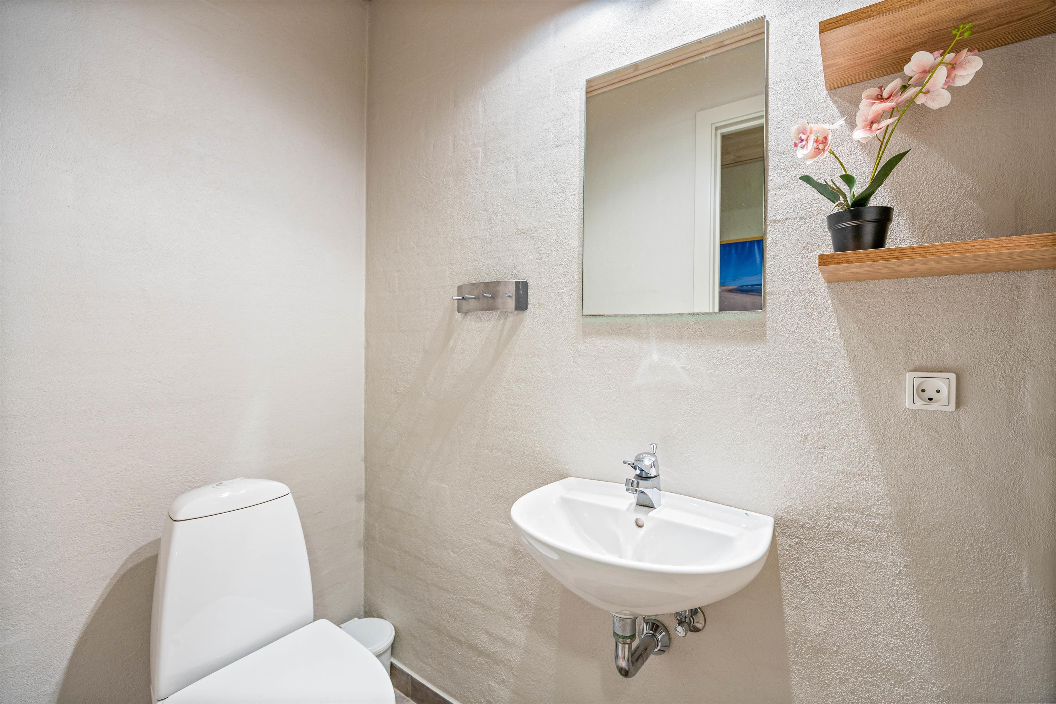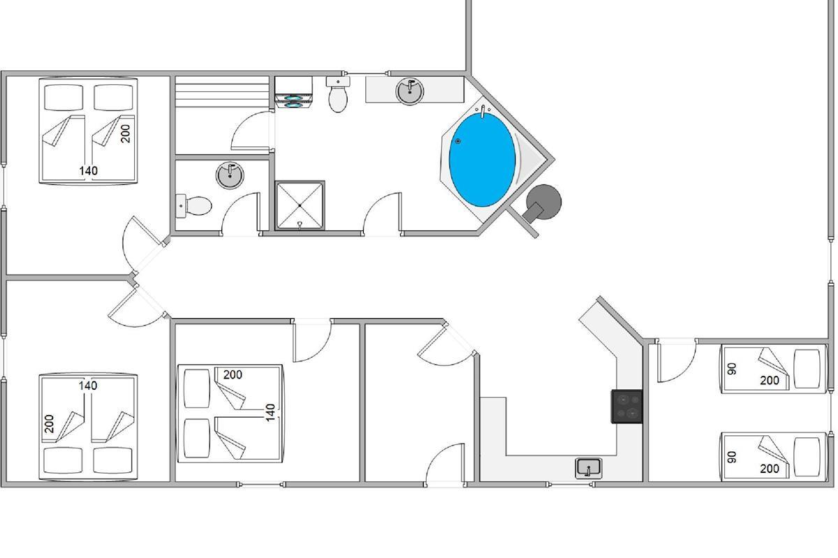 Das Ferienhaus bietet insgesamt vier Schlafzimmer, die für bis zu 8 Personen ausgelegt sind. Drei Zimmer sind mit Doppelbetten ausgestattet, während das vierte Zimmer zwei Einzelbetten bietet, ideal für Kinder oder Freunde. Hier findet ihr Ruhe und Erholung nach einem ereignisreichen Tag an der frischen Luft. Für zusätzlichen Komfort steht euch ein Badezimmer zur Verfügung, das mit Sauna und Whirlpool Entspannung pur garantiert. Eine Gästetoilette rundet das Angebot ab. Die Fußbodenheizung in beiden Räumen sorgen dafür, dass ihr mit warmen Füßen in den Tag starten könnt. Selbstverständlich sind Waschmaschine und Trockner vorhanden, sodass ihr auch längere Aufenthalte problemlos planen könnt.