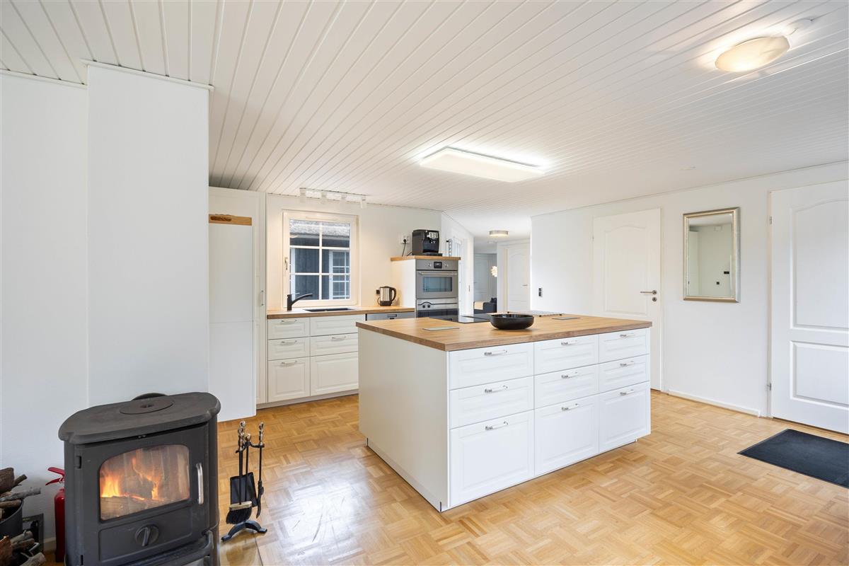 Inviting living area with wood-burning stove