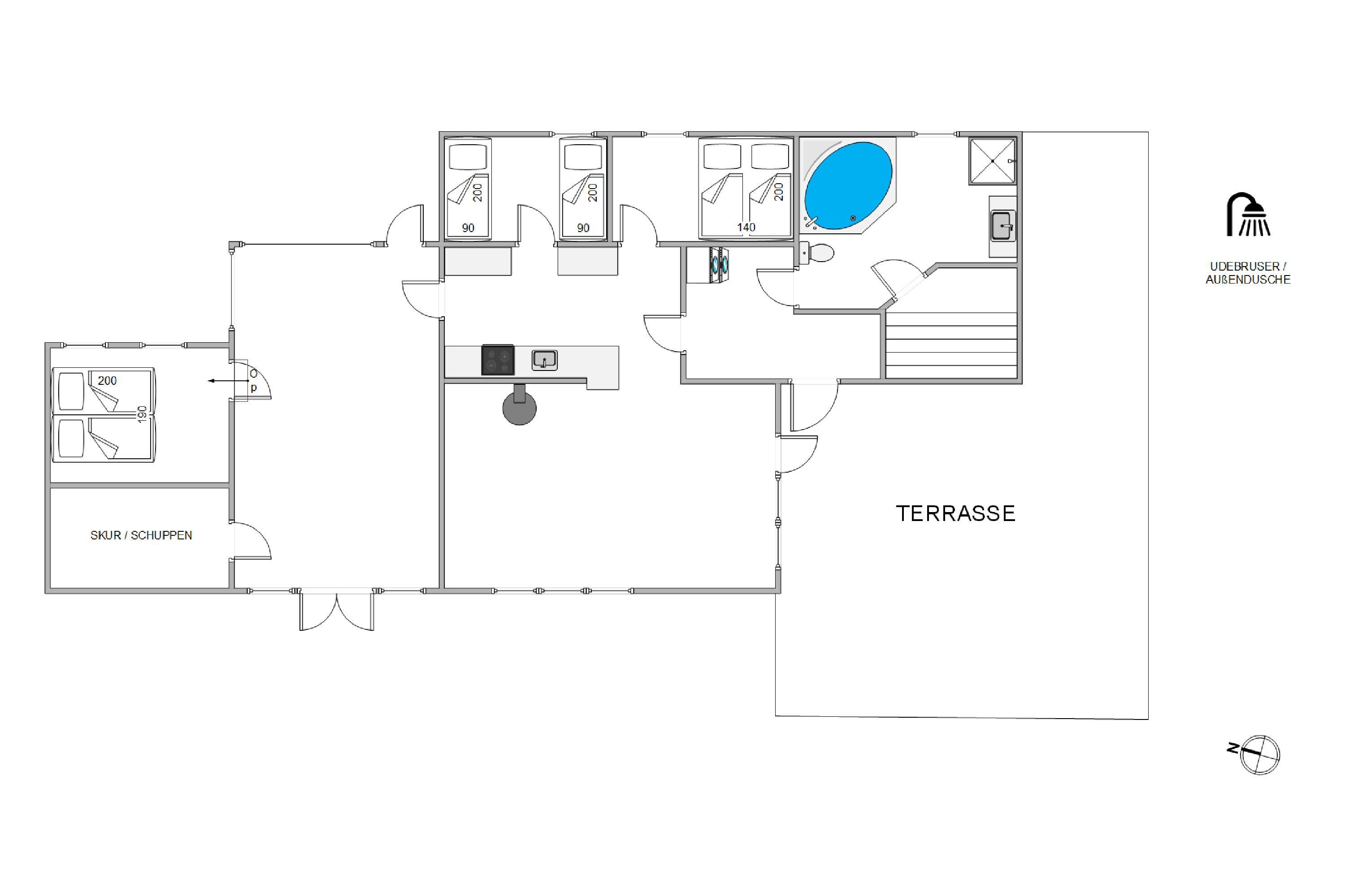 On cold, rainy days - or if you're visiting during the winter months - you can move from the terrace to the conservatory. It's a wonderful feeling to listen to raindrops gently falling on the glass while staying dry inside. The holiday home has an outdoor shower for rinsing off sand after a long day at the North Sea, which is only about 750 metres away. The shower is available from April to November to prevent frost damage.