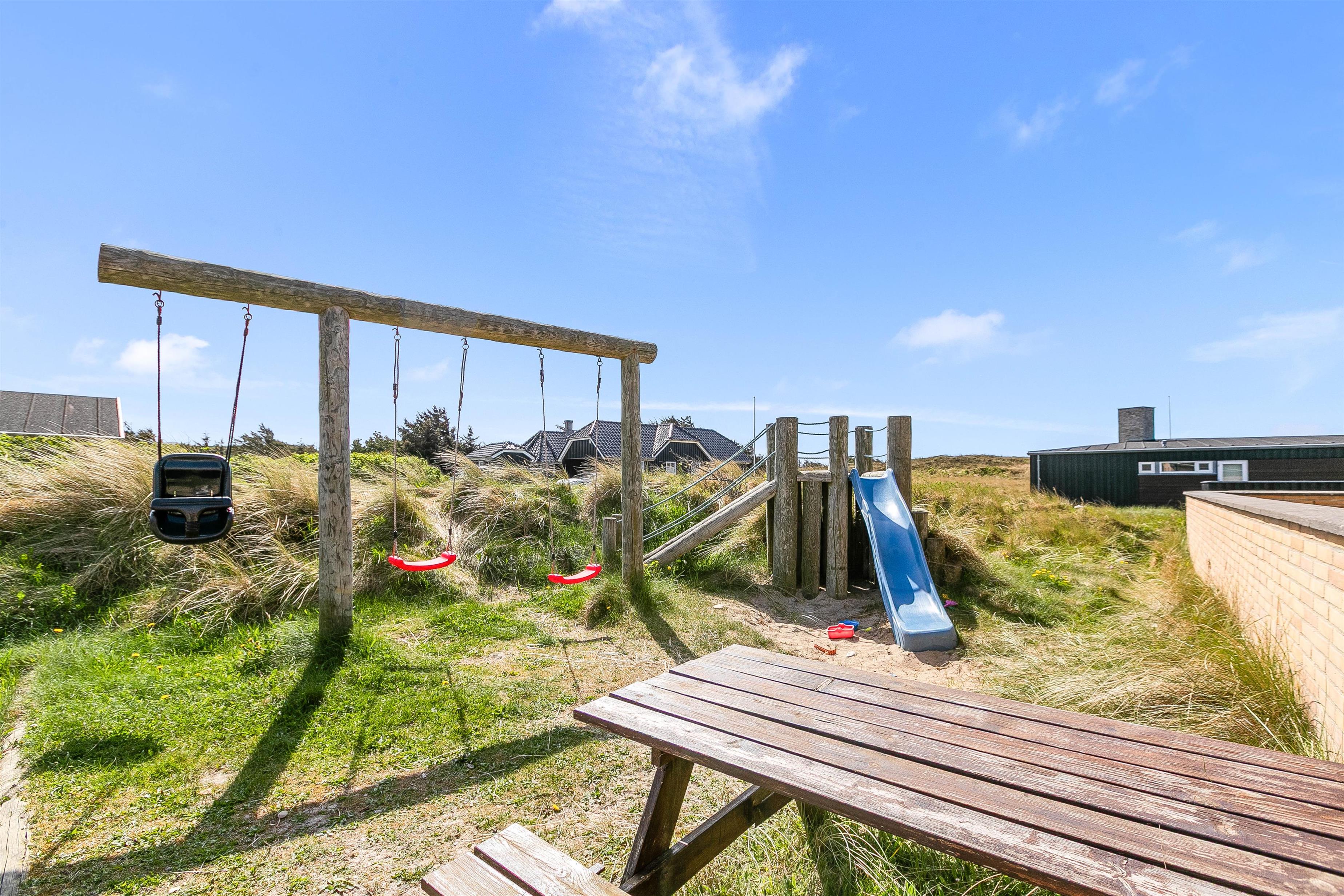 An enclosed terrace, where you can enjoy the sun and fresh air is another advantage of this beautiful holiday home in Søndervig. Your children will be delighted to use both the slide and sandpit. In the evening, when it gets cool, you can retreat to the conservatory to enjoy views of the surrounding nature. If you prefer to end your day relaxing by the water, the beach is just 200 metres from your holiday home on Nordsøvej 440. It's perfect for experiencing sunset walks through the beautiful dune landscape and watching the colourful and romantic spectacle.