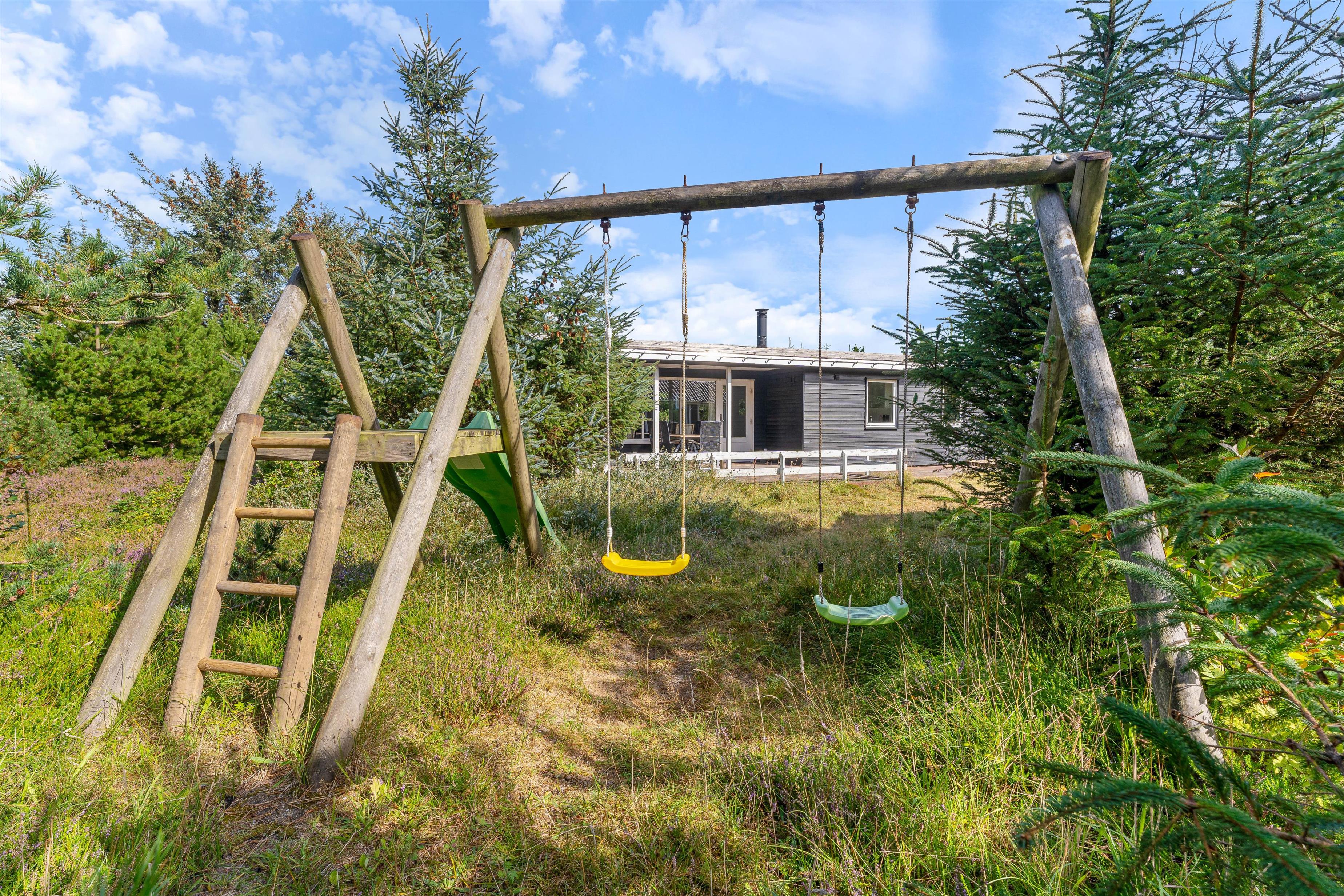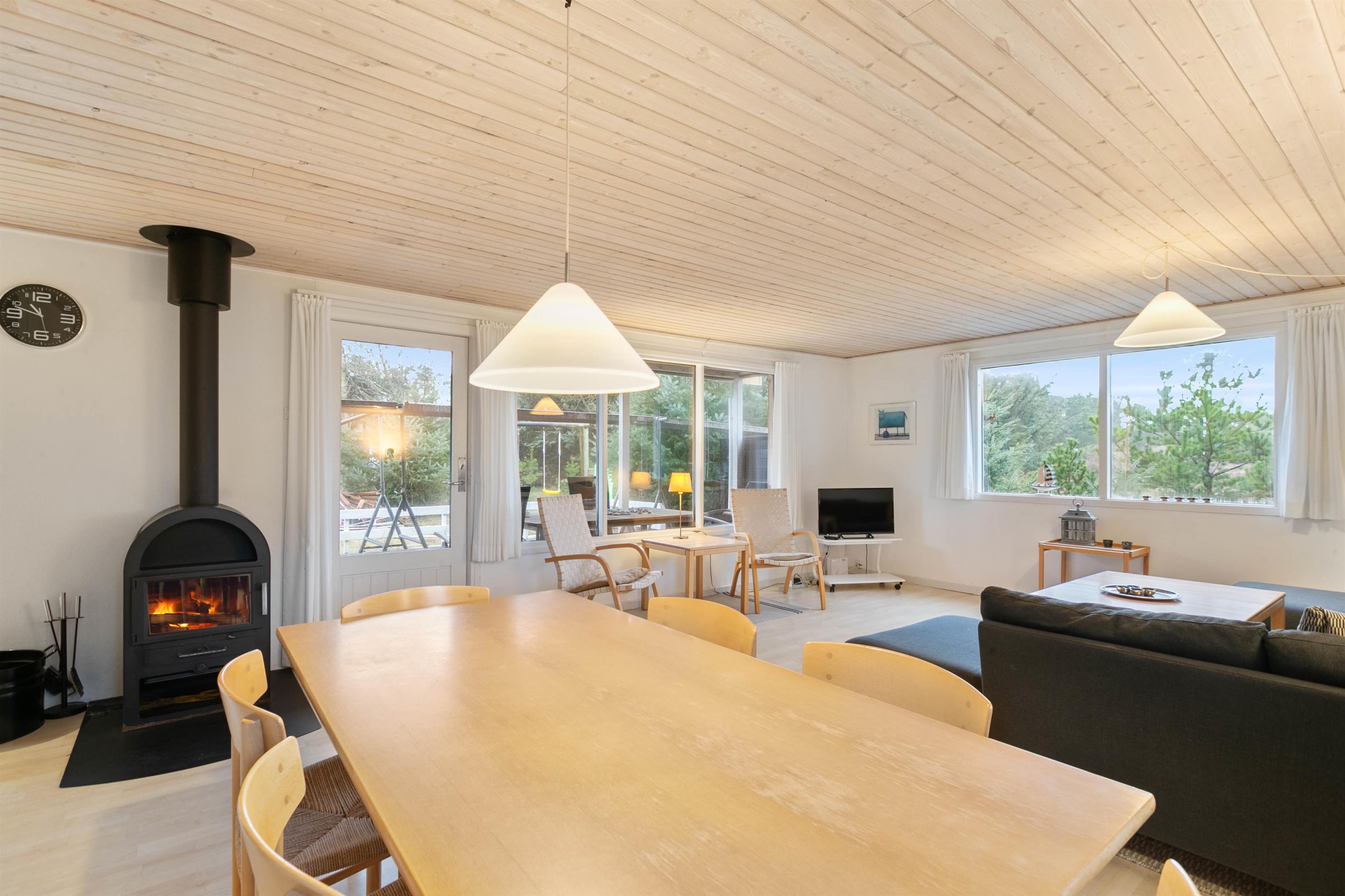This inviting, charming holiday home accommodates up to 6 people and is situated in the quiet cul-de-sac at Jens Jensens Vej 32. With a cosy wood-burning stove for cool evenings and an efficient heat pump for additional warmth, it's perfect for small families with children, who will love the swing and slide in the garden. The grounds are ideal for play and activities - and the beach is just a short walk from this holiday home in Søndervig!