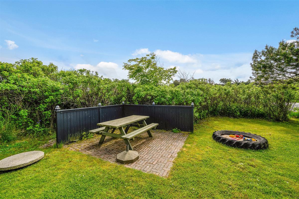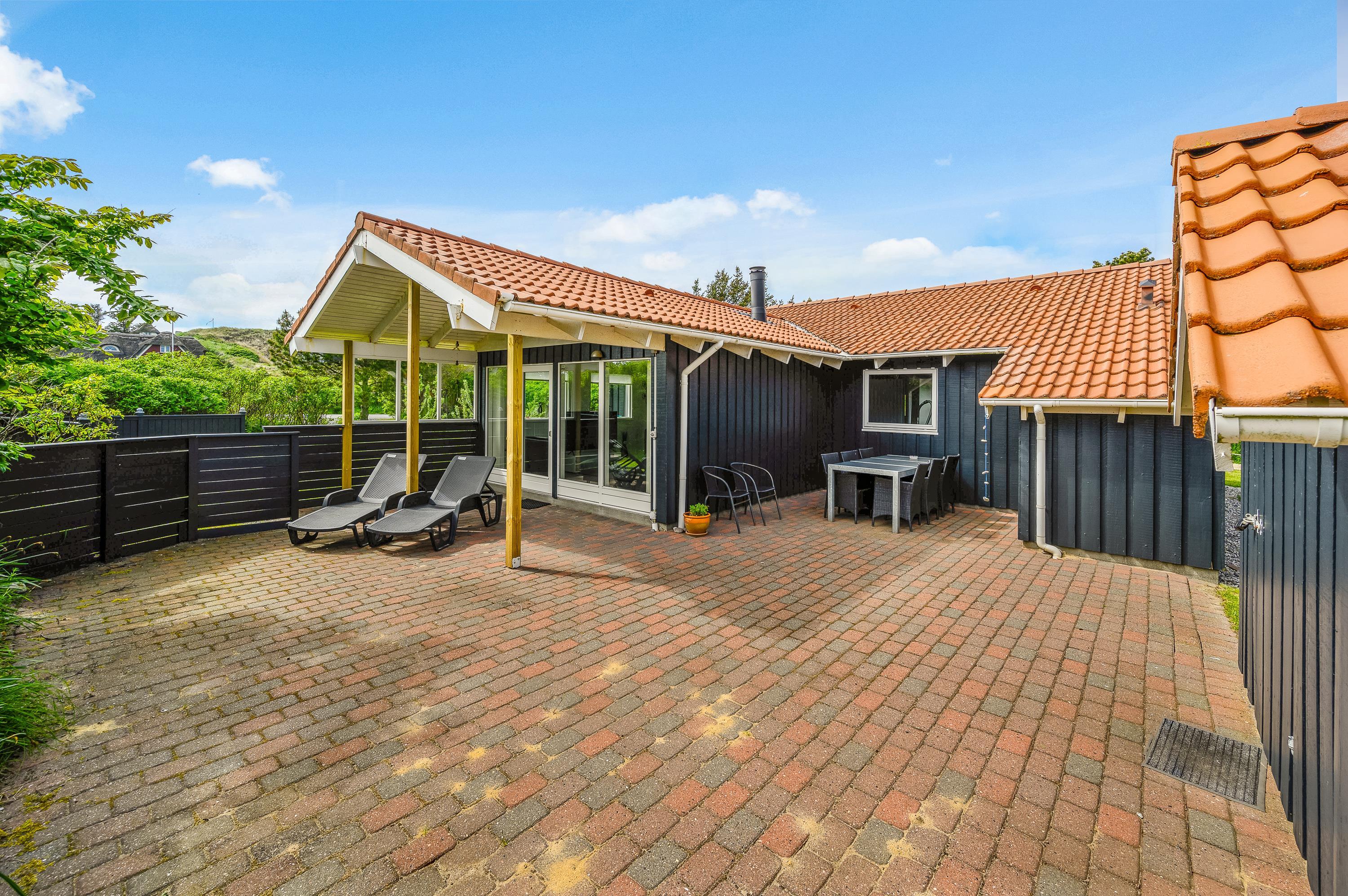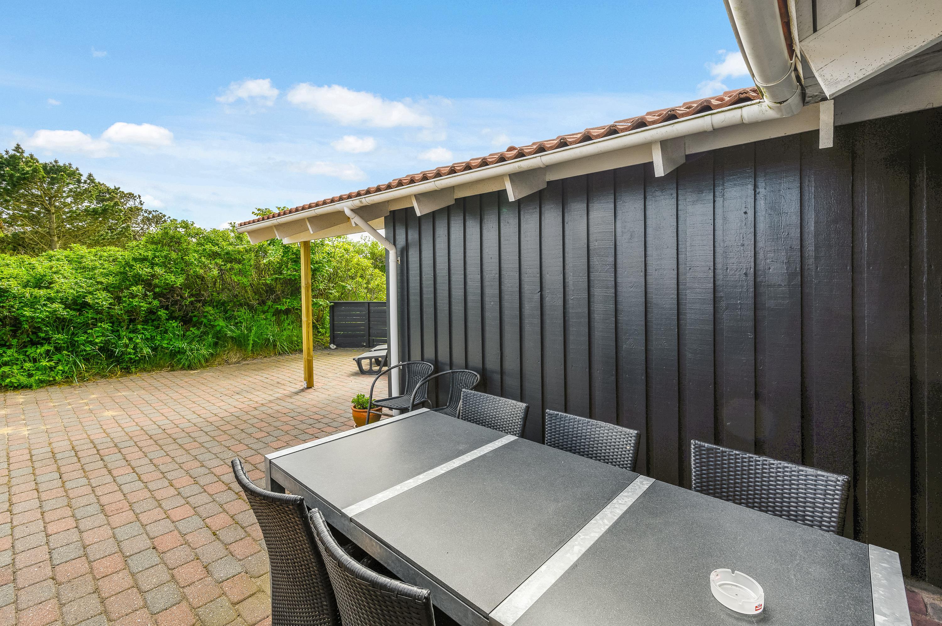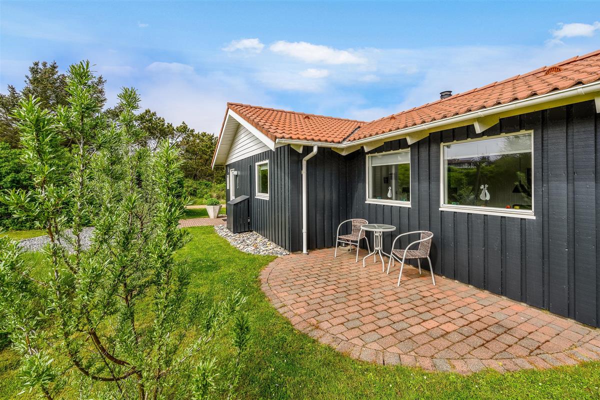 The holiday home offers beautiful terraces with many cosy corners where you can enjoy a delicious cup of coffee while breathing in the fresh West Jutland air. The large terrace is sheltered and partially covered, allowing you to relax outdoors comfortably in any weather.