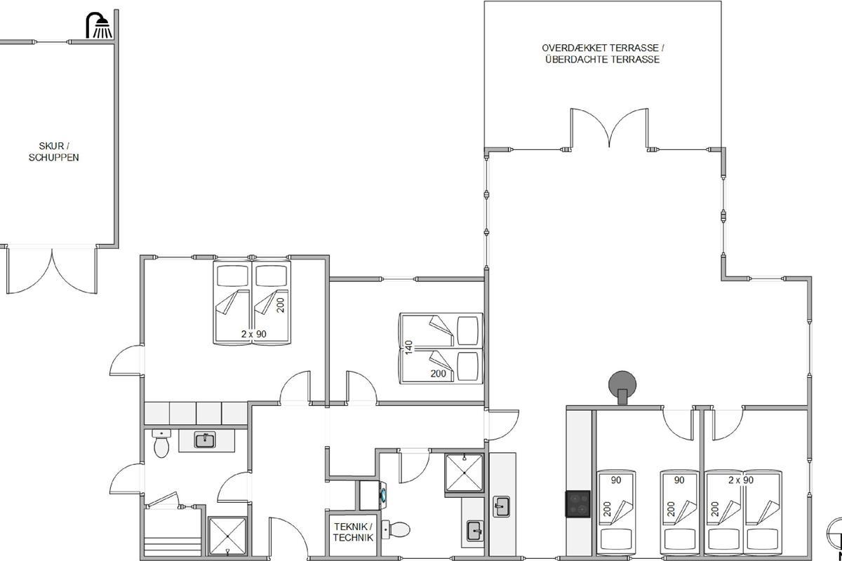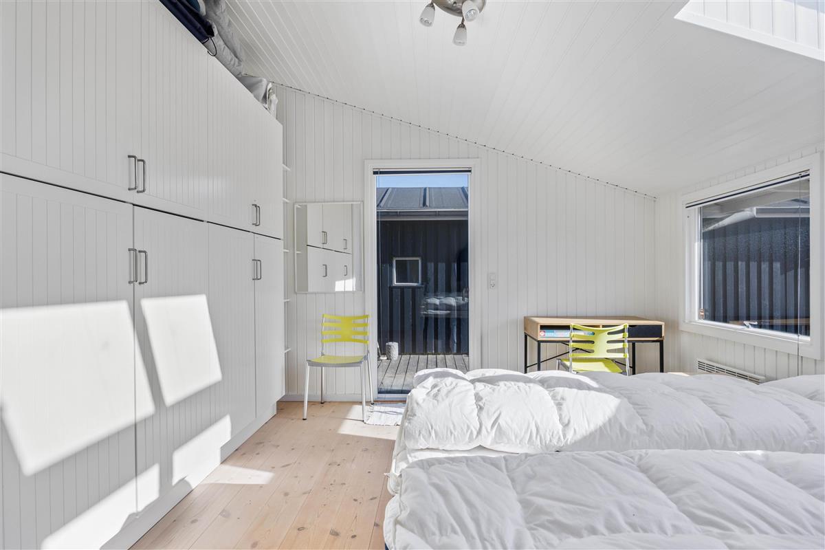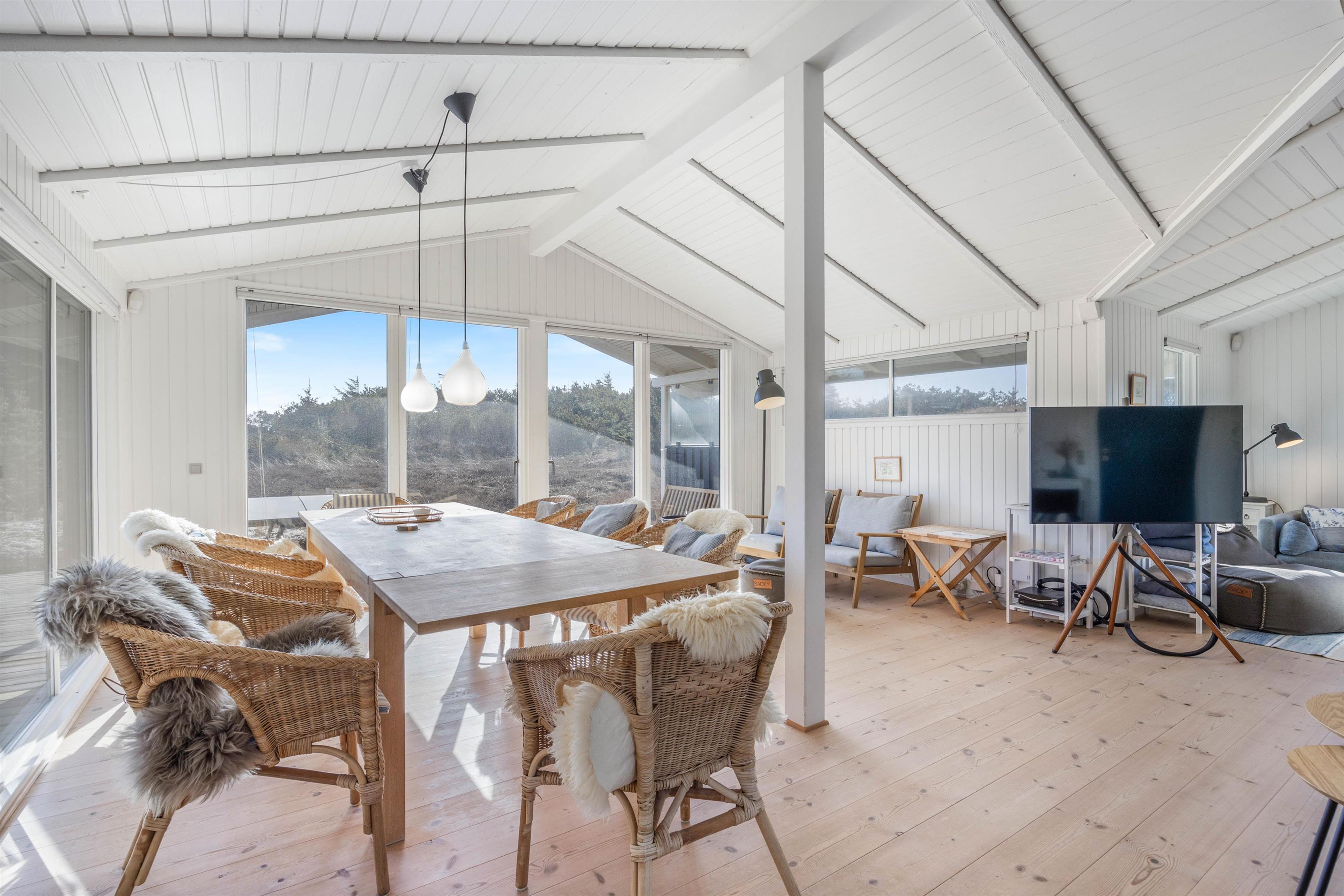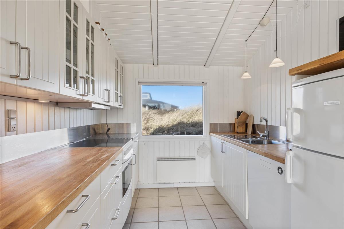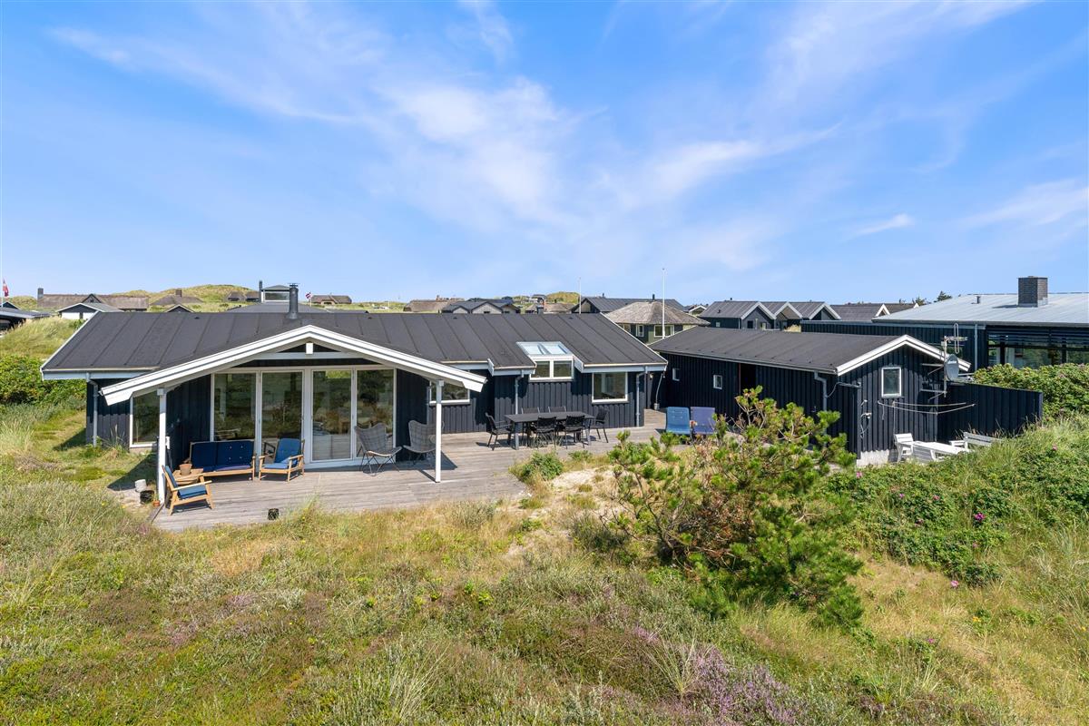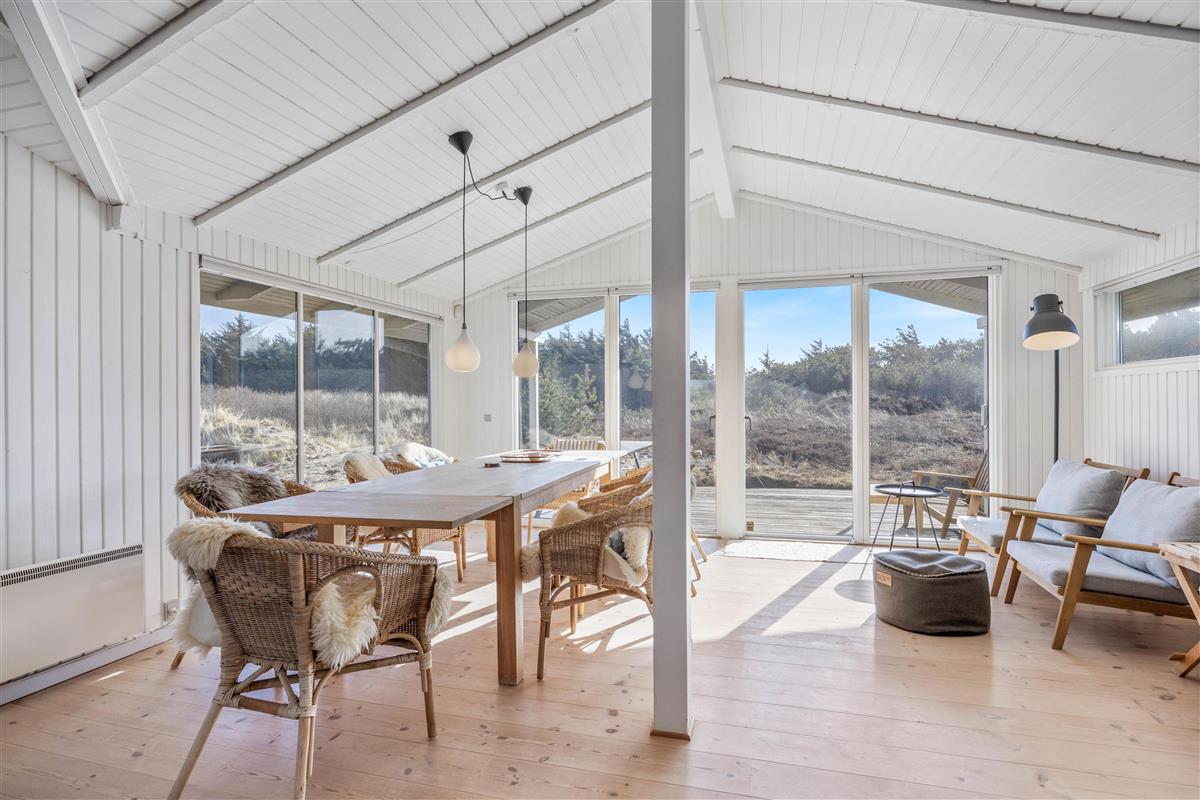 The holiday home enjoys a beautiful position on a natural plot in the heart of Søndervig's holiday region. From the secluded south-facing terrace, you can enjoy views across the dune landscape. The partially covered terrace ensures you'll always find a sheltered sunny spot on fine summer days. Garden furniture, sun loungers, an outdoor shower, and a barbecue are provided to help you make the most of outdoor living. Please note: the outdoor shower is only available from April to November due to frost risk.