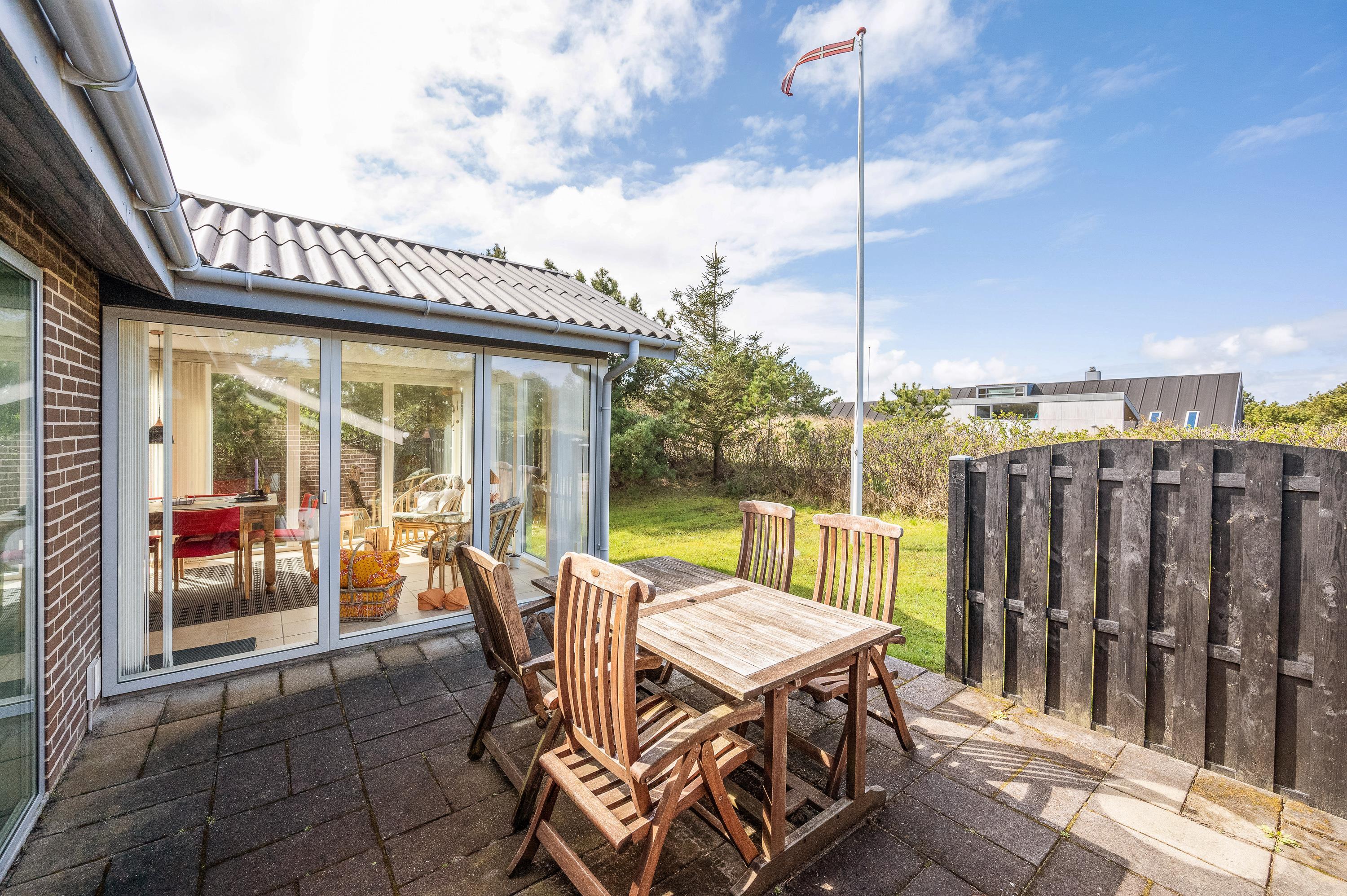Start your day on the sheltered terrace overlooking the expansive 1,466-square-metre grounds, offering plenty of space for relaxation. Both the living area and two bedrooms have direct access to the holiday home's terrace.