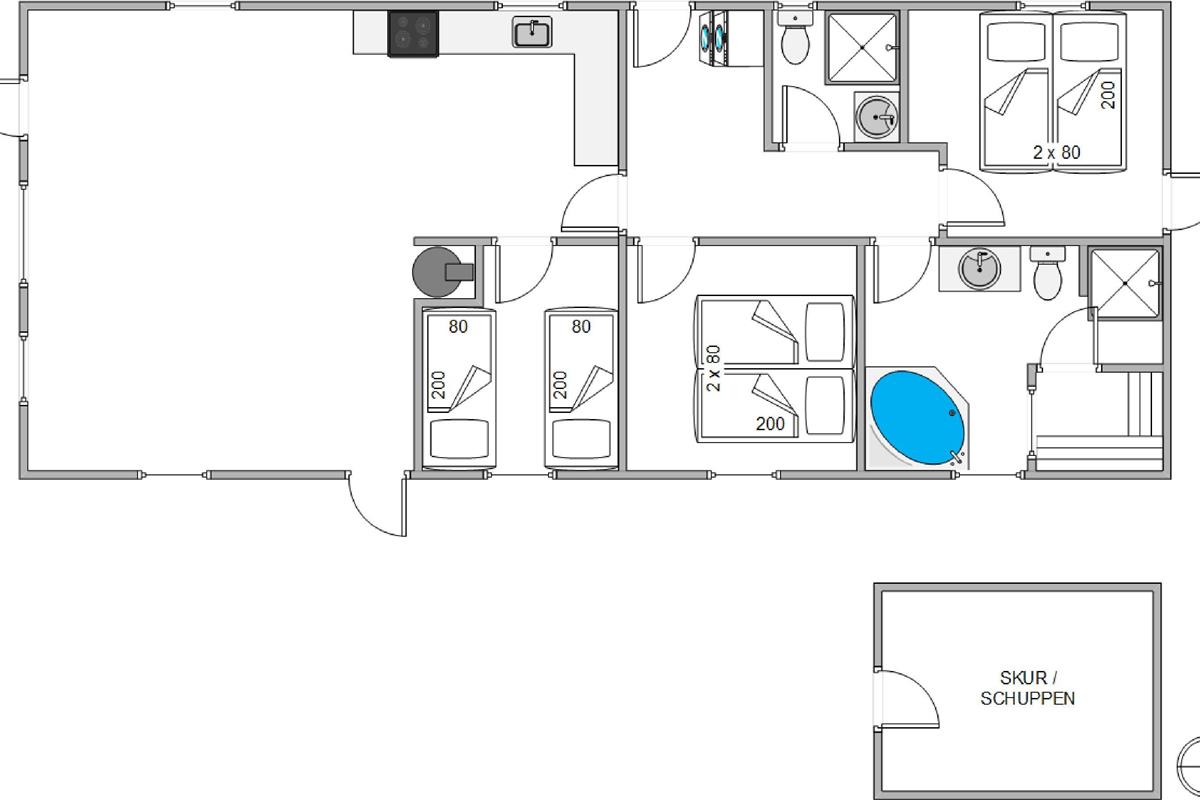 The holiday home at Holdvej 9B is well-equipped for relaxation, whether by the wood-burning stove, in the whirlpool or in the sauna. Thanks to its excellent central location, you'll find both the North Sea and Søndervig centre within easy reach.