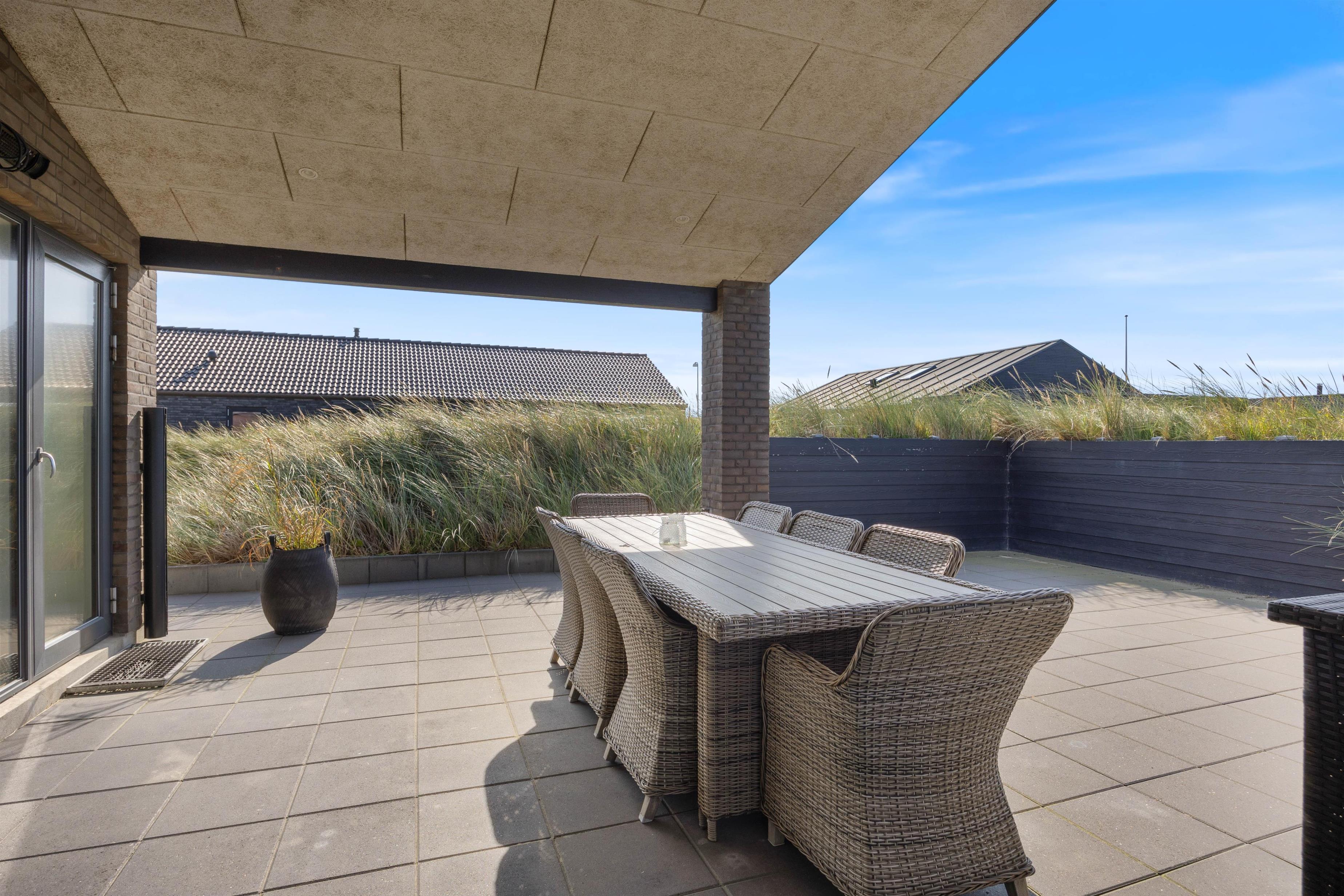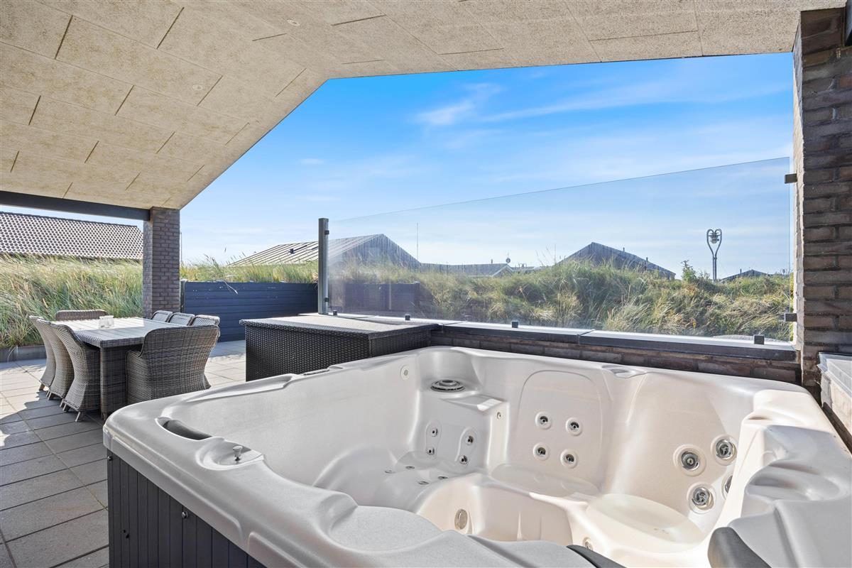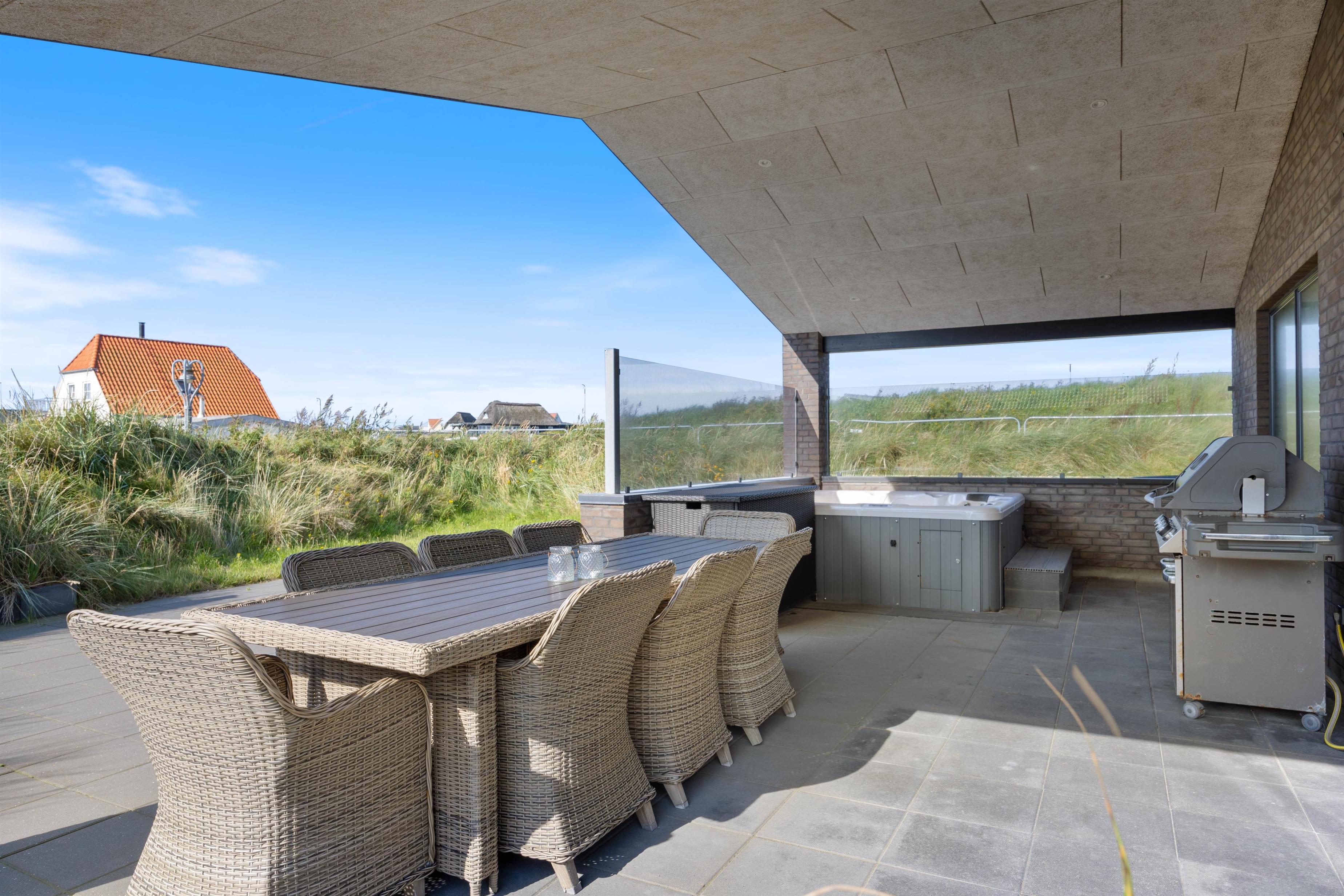 From the living area, you have access to the beautiful partially covered terrace, equipped with comfortable garden furniture and a gas barbecue. Here you can prepare delicious meals after a lovely day and listen to the sound of the North Sea. The outdoor hot tub is available for year-round use, and a soak under the starlit sky is an unforgettable experience.