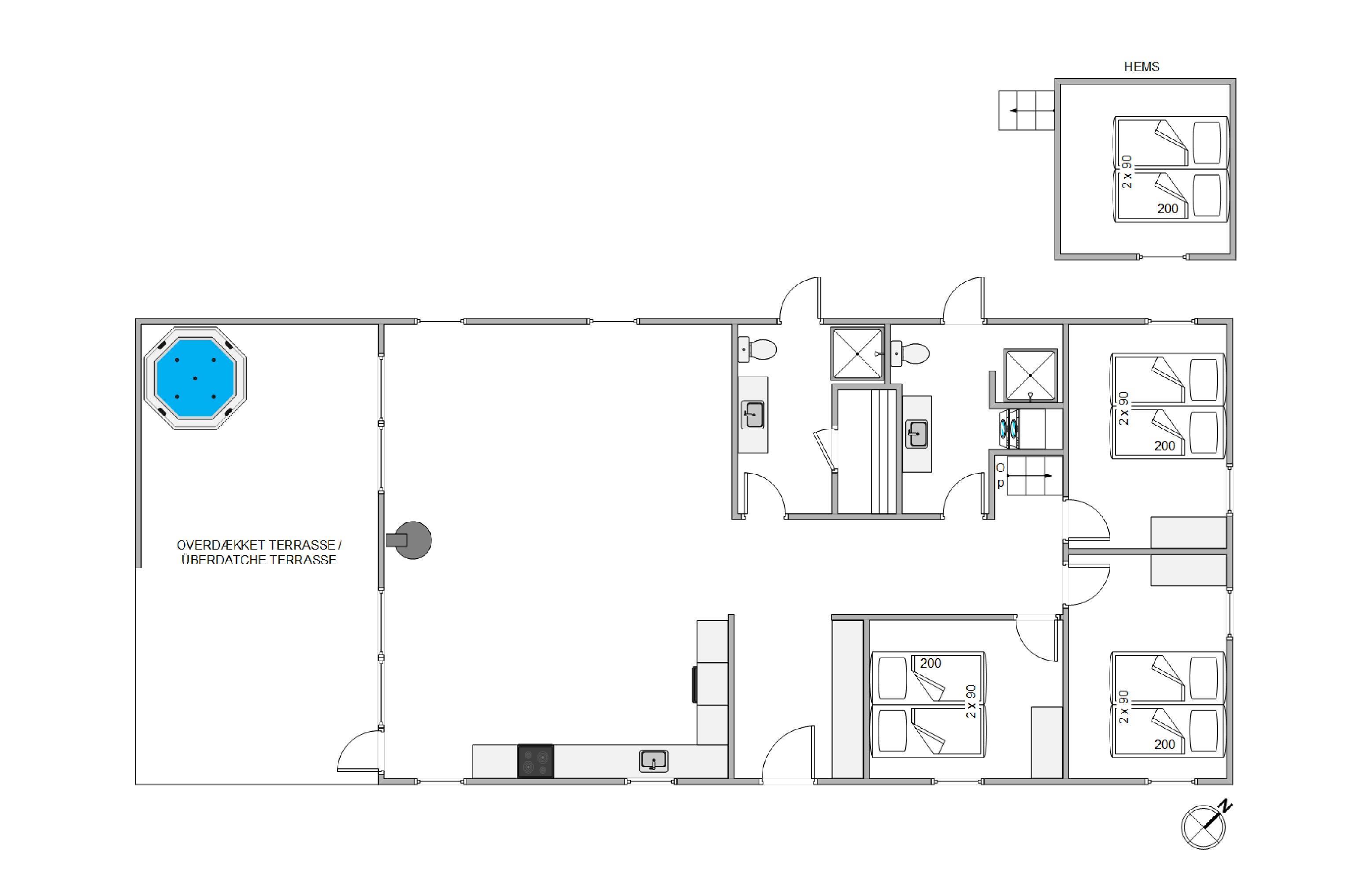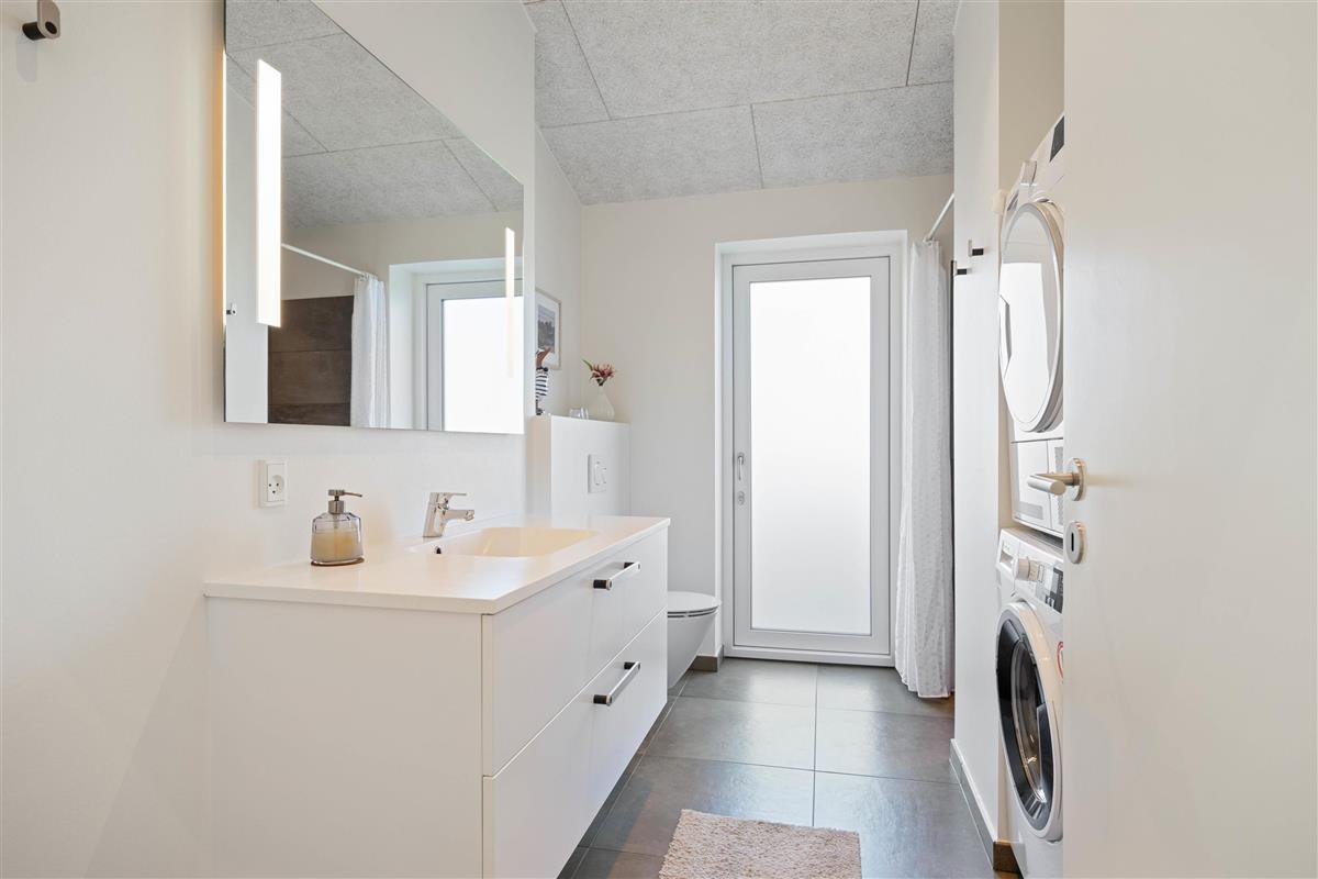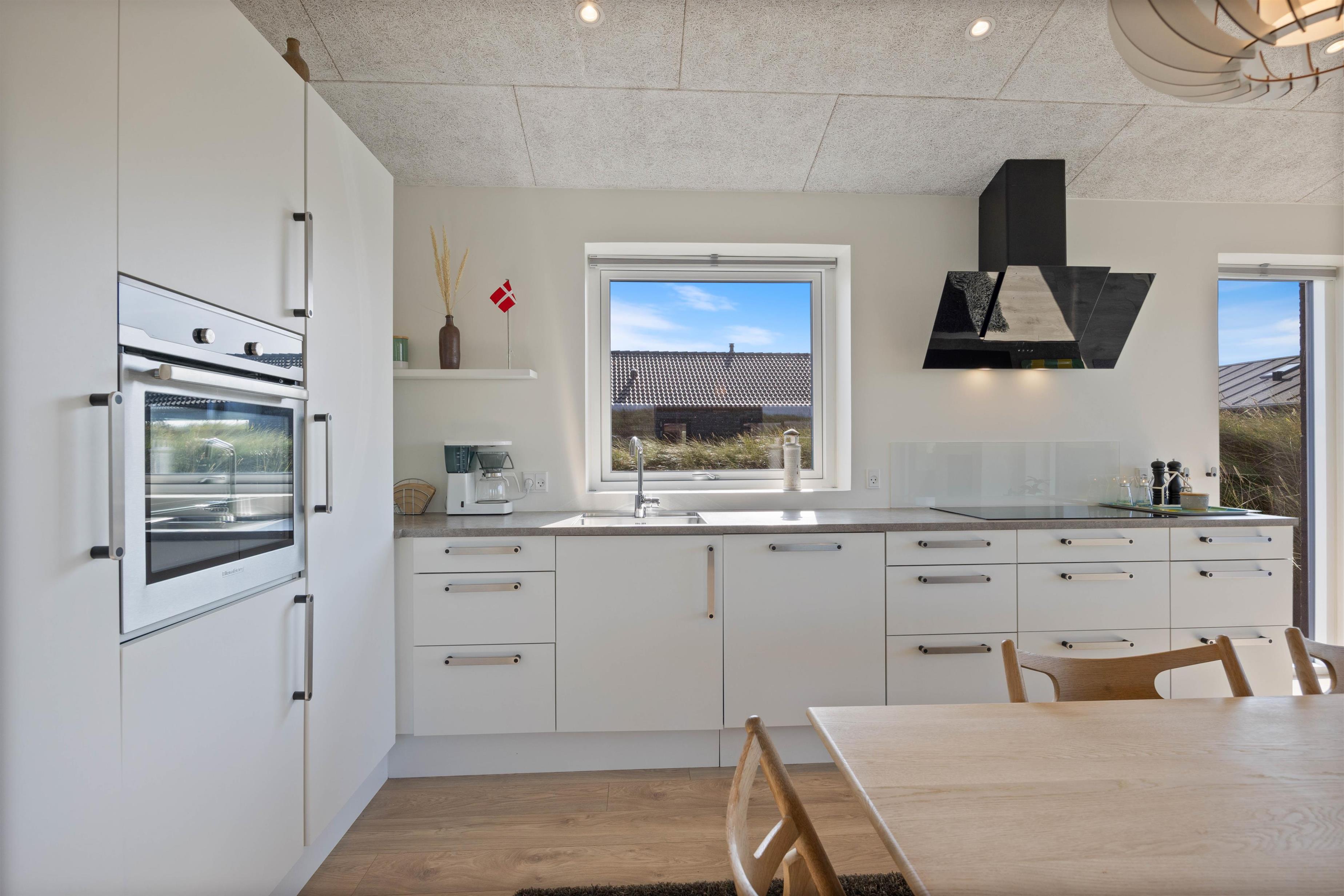 The holiday home features two modern bathrooms, both equipped with underfloor heating, ensuring warm feet to start your day. One bathroom provides access to the private sauna, where you can relax and warm up after a long day in the fresh North Sea air.
