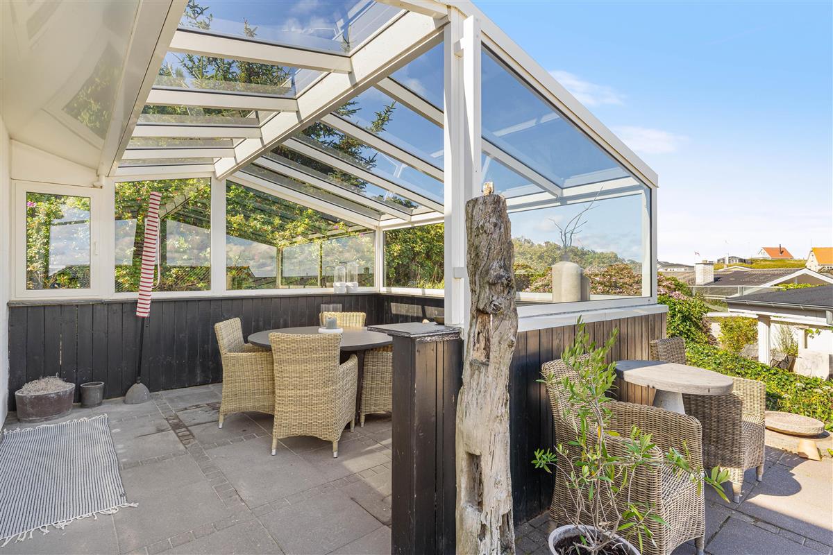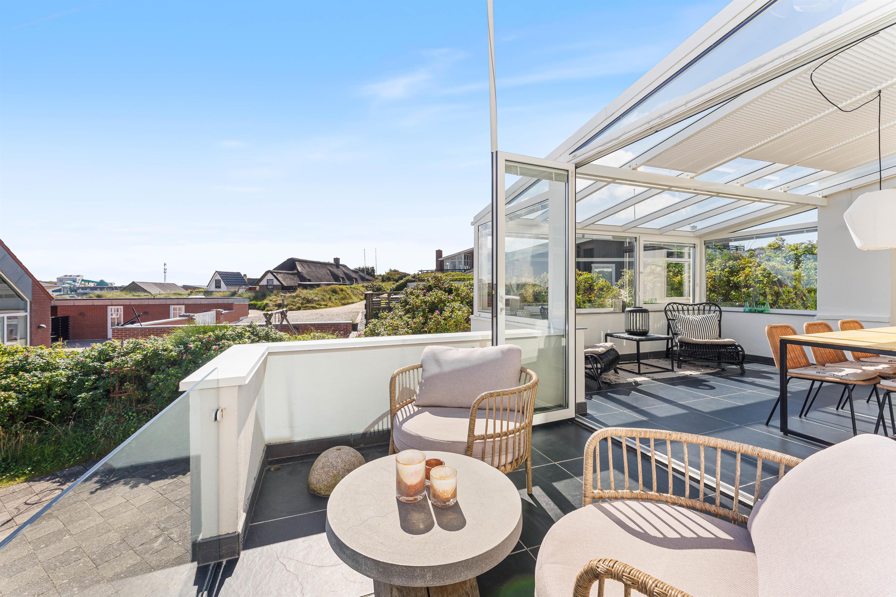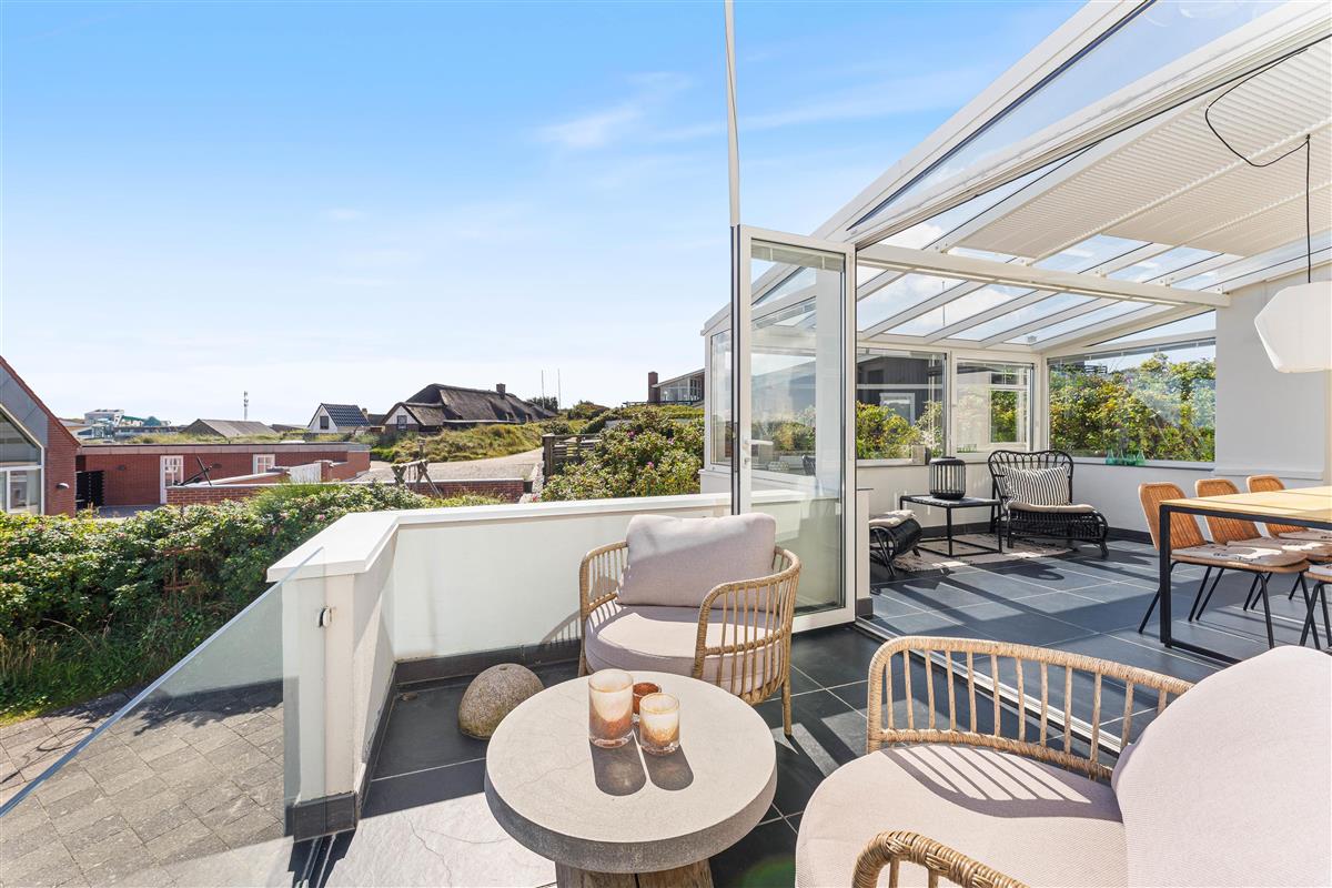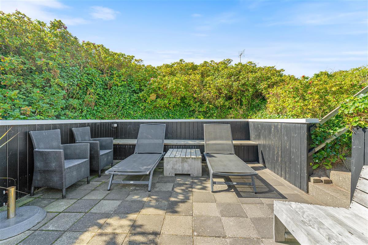 The holiday home features several terraces where you can usually find a sheltered spot. The partially enclosed and covered terrace is perfect for evening family barbecues and relaxing at the end of the day. The North Sea is just 200 metres from the house, and Søndervig centre is within walking distance. Here you'll find numerous restaurants, shops and attractions, including the Sand Sculpture Festival, which opens during summer and is definitely worth a visit. The Søndervig golf course, visible from the east-facing room, is just a 5-minute drive away. There's truly something for everyone here.