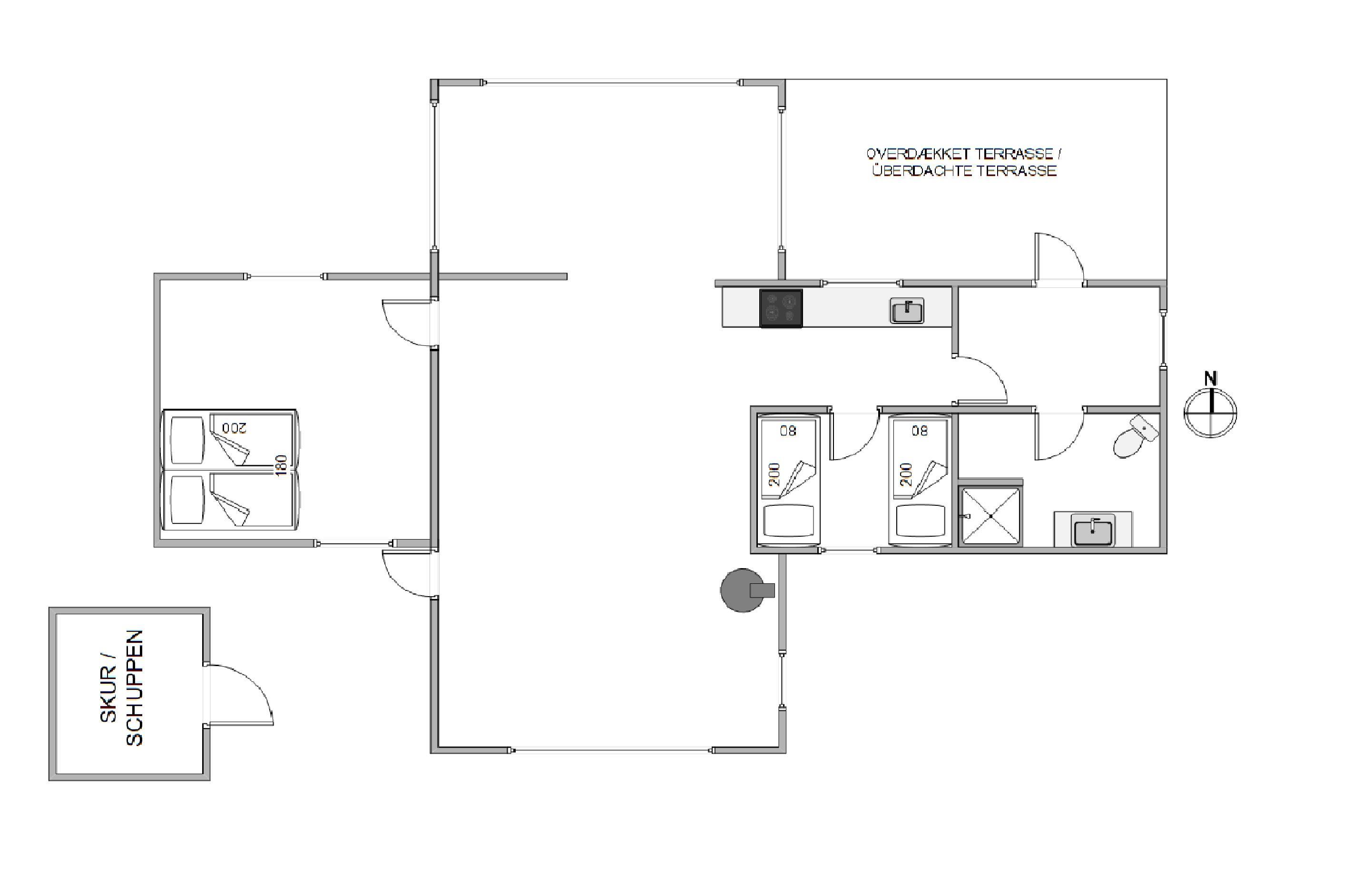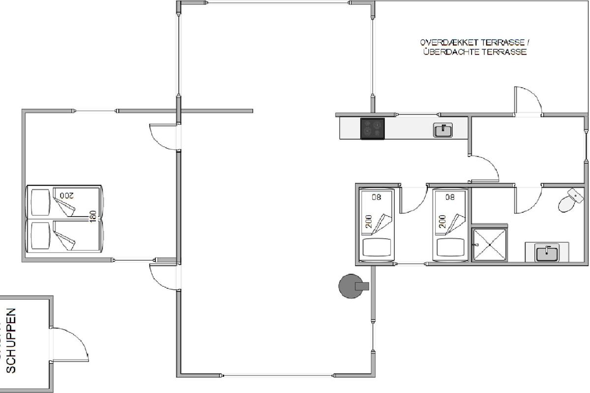 With space for up to four people and one dog, it offers ample room for relaxation across two bedrooms. One bedroom features a double bed, while the other offers two single beds. The wood-burning stove provides warming comfort, perfect for cosy evenings after a long day at the beach. The modern heat pump ensures year-round comfort regardless of the season. The well-maintained bathroom completes the comfortable living experience and ensures a relaxed start to your day.