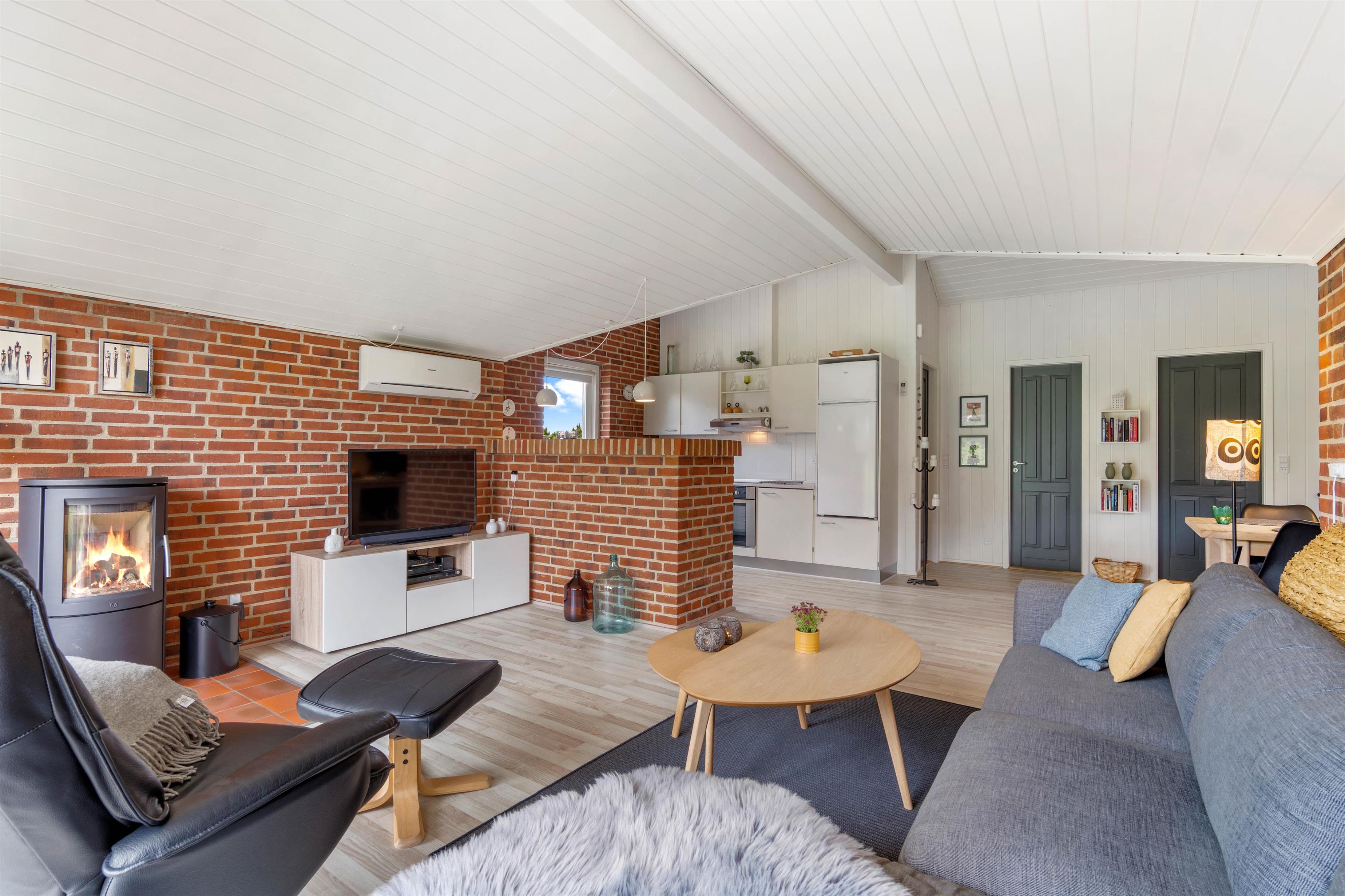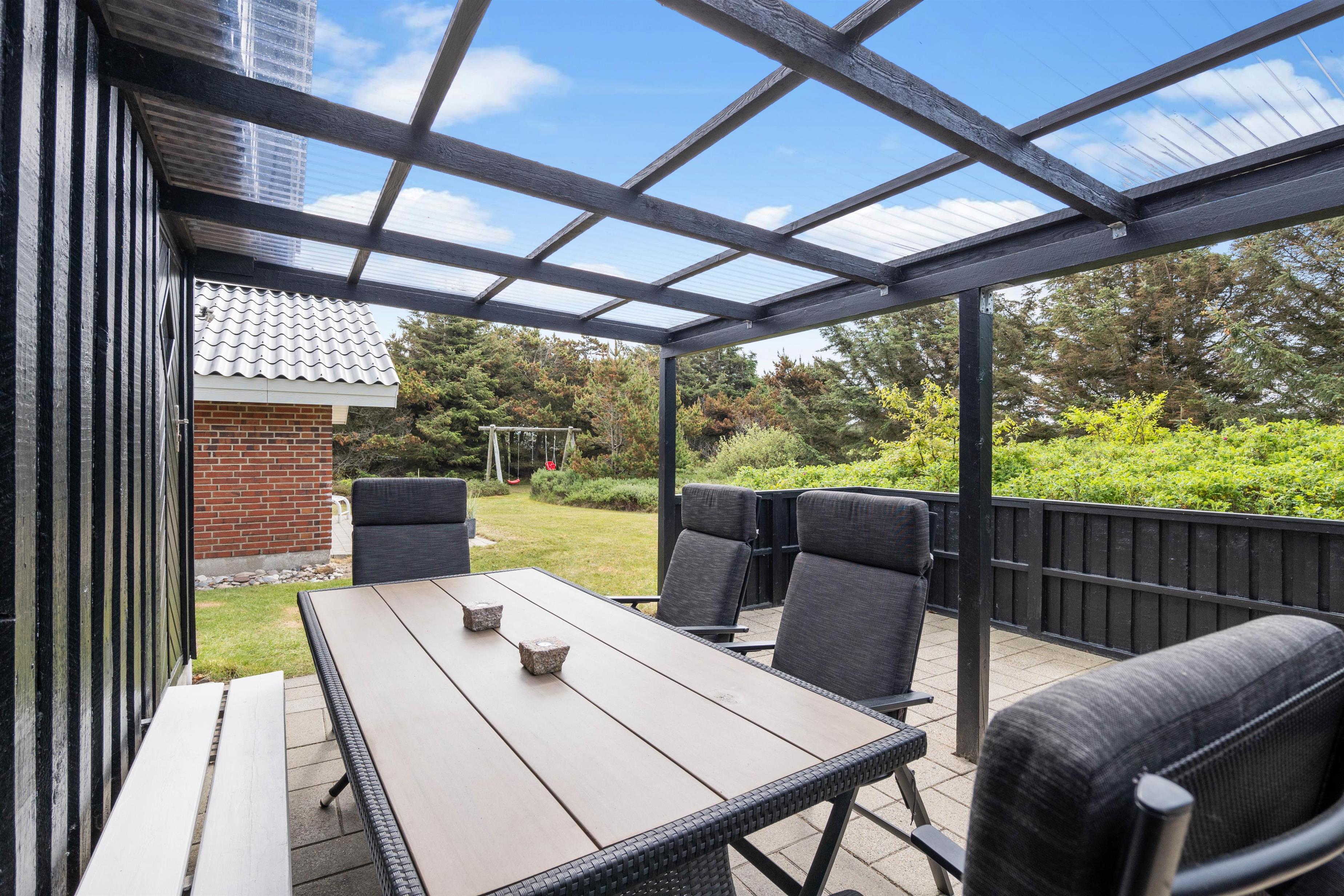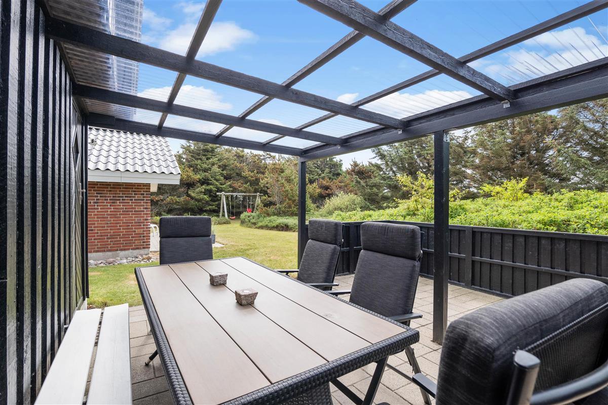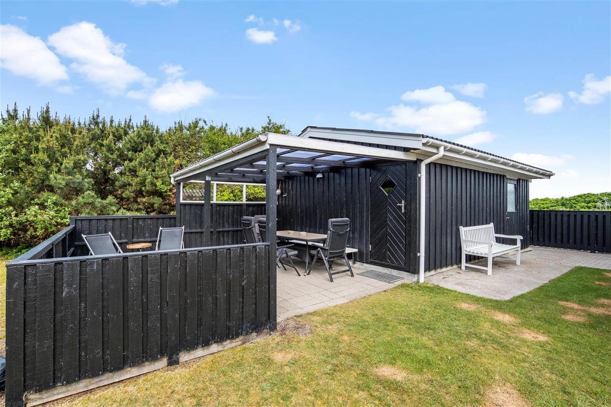 Inviting and cosy holiday home in Søndervig perfect for a small family or couple looking to escape the stress of everyday life. The plot is protected by trees and bushes, offering privacy while relaxing on the terrace. Children can play and run freely on the lawn area.