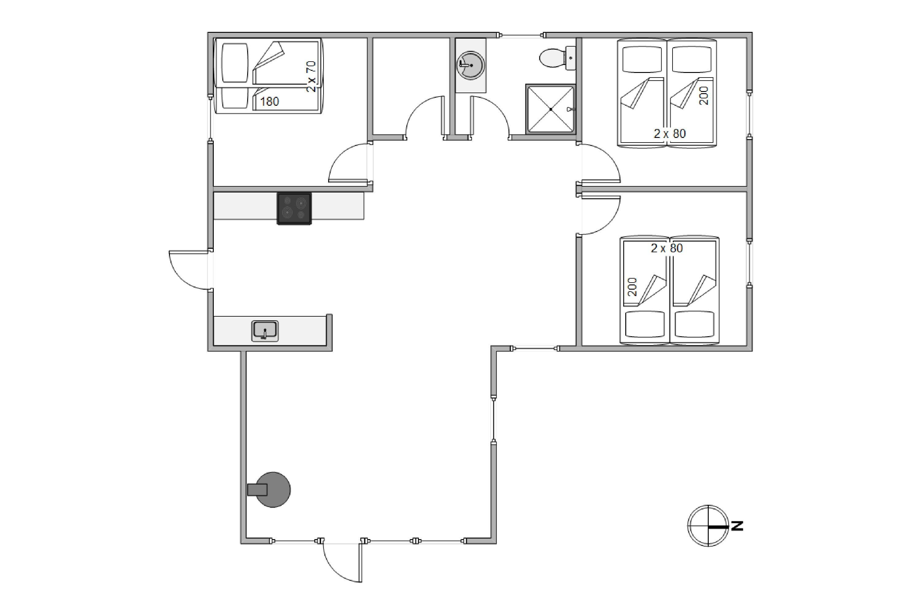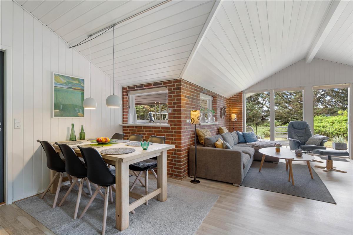 Welcoming holiday home in Søndervig, ideal for a family of 4 or a couple. The house is sheltered by trees and bushes, allowing for private barbecues on the covered terrace. Short distance to the North Sea and the supermarket in Søndervig.