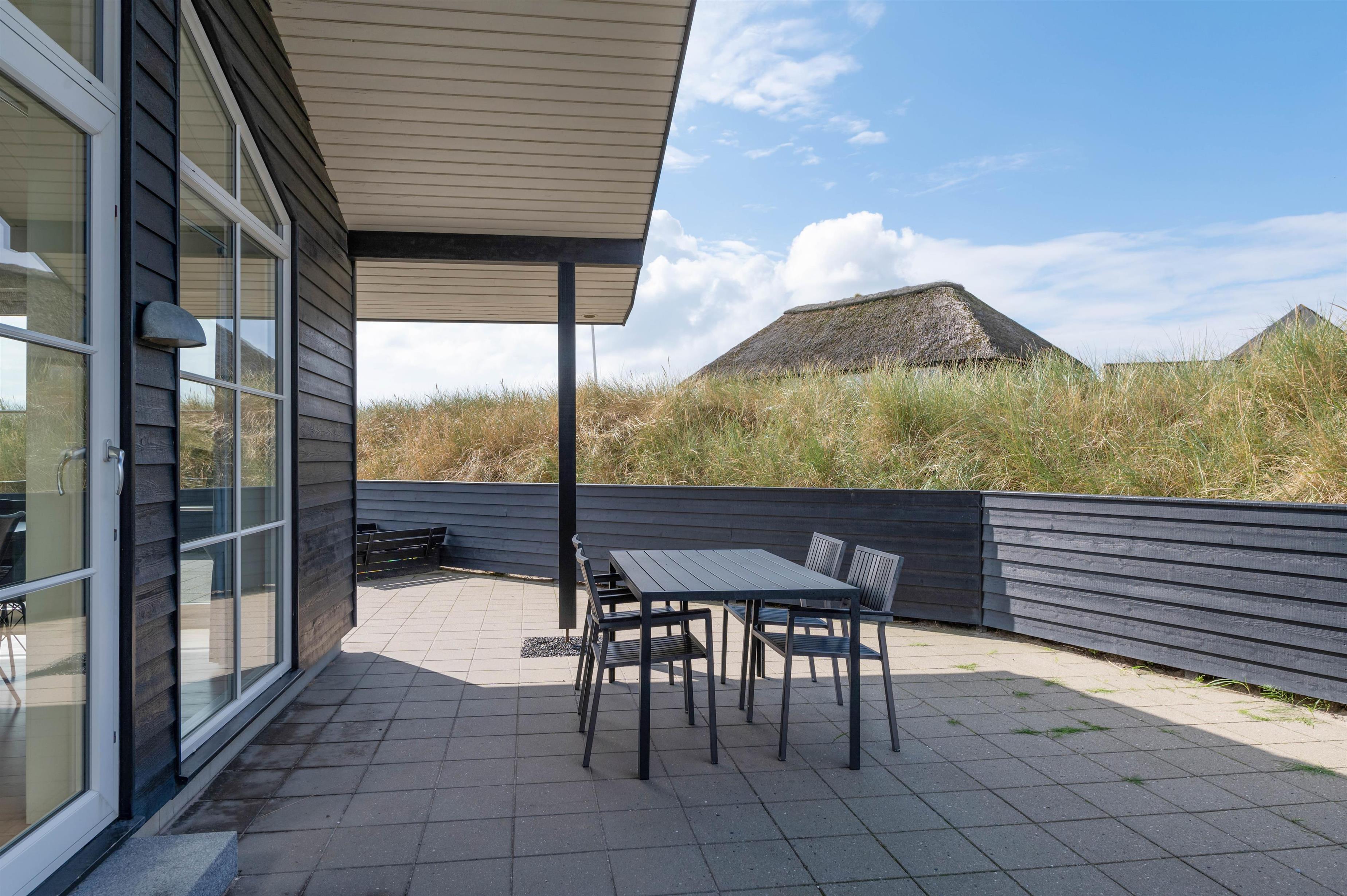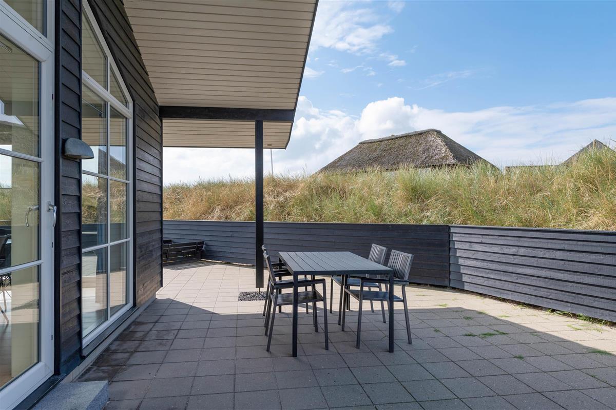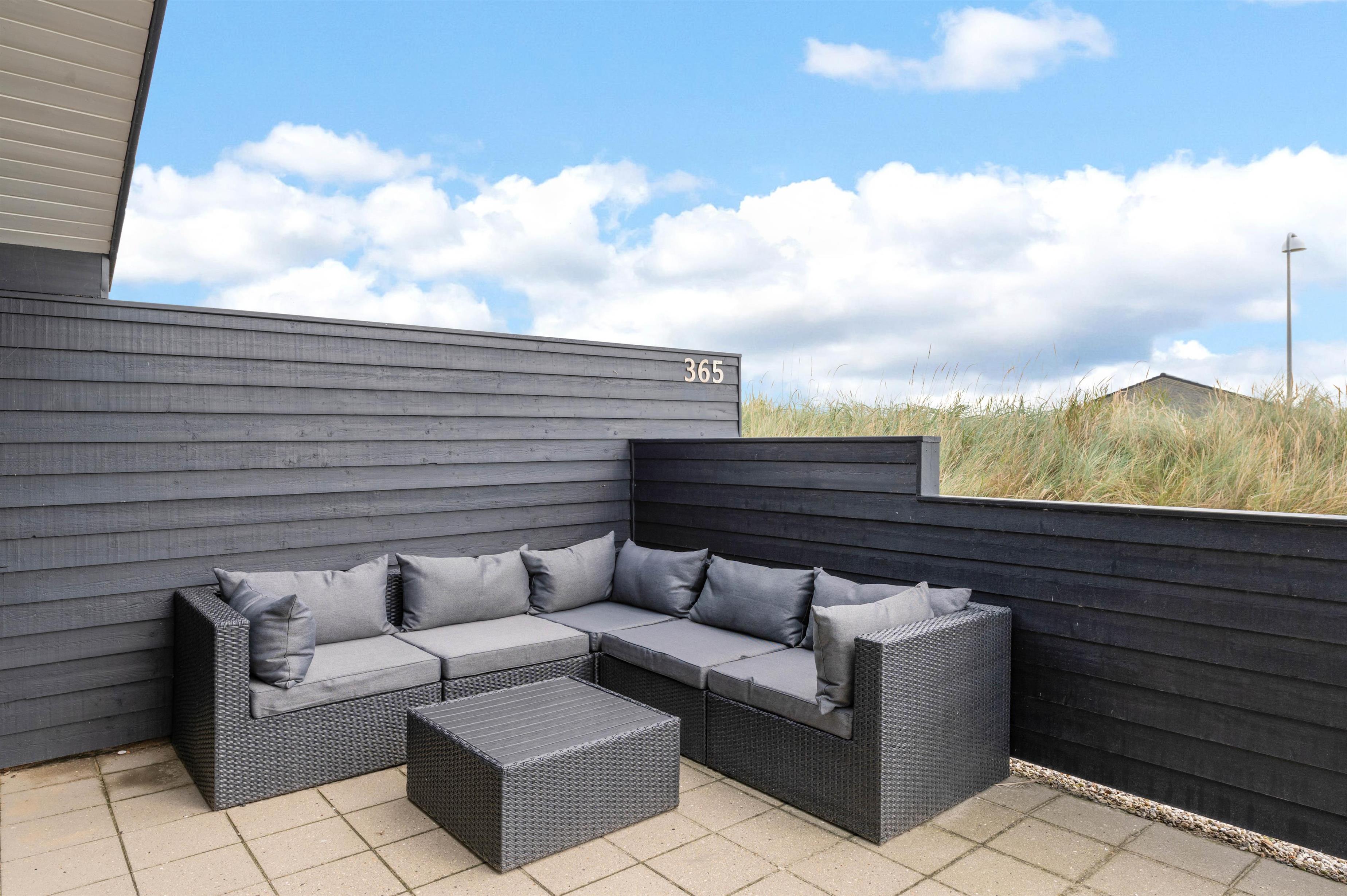 Excellent terrace with lounge furniture and outdoor shelter at Lodbergsvej 365