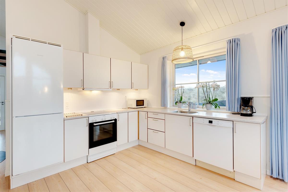 This delightful holiday home in Søndervig provides the perfect setting for a wonderful holiday. You'll be close to nature and to Søndervig, where shops and restaurants line the streets like pearls on a string. The beautiful golf course is just a few hundred metres away, and the endless beach is right around the corner.