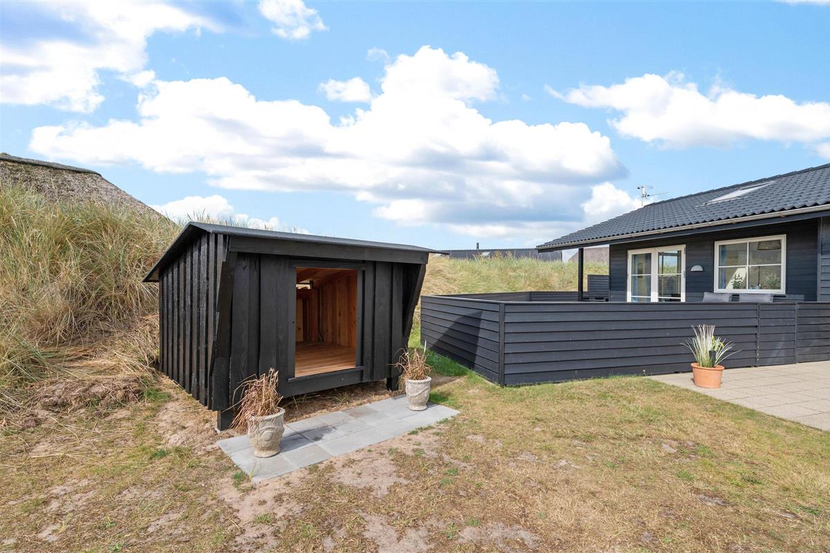 The outdoor area features a camping shelter, offering the exciting possibility of sleeping outside. Listen to the sound of waves and wind, observe the starry sky, and try something different. Look forward to a refreshing and wonderful time on the Danish West Coast.