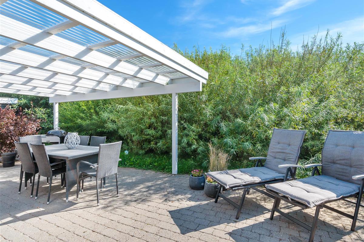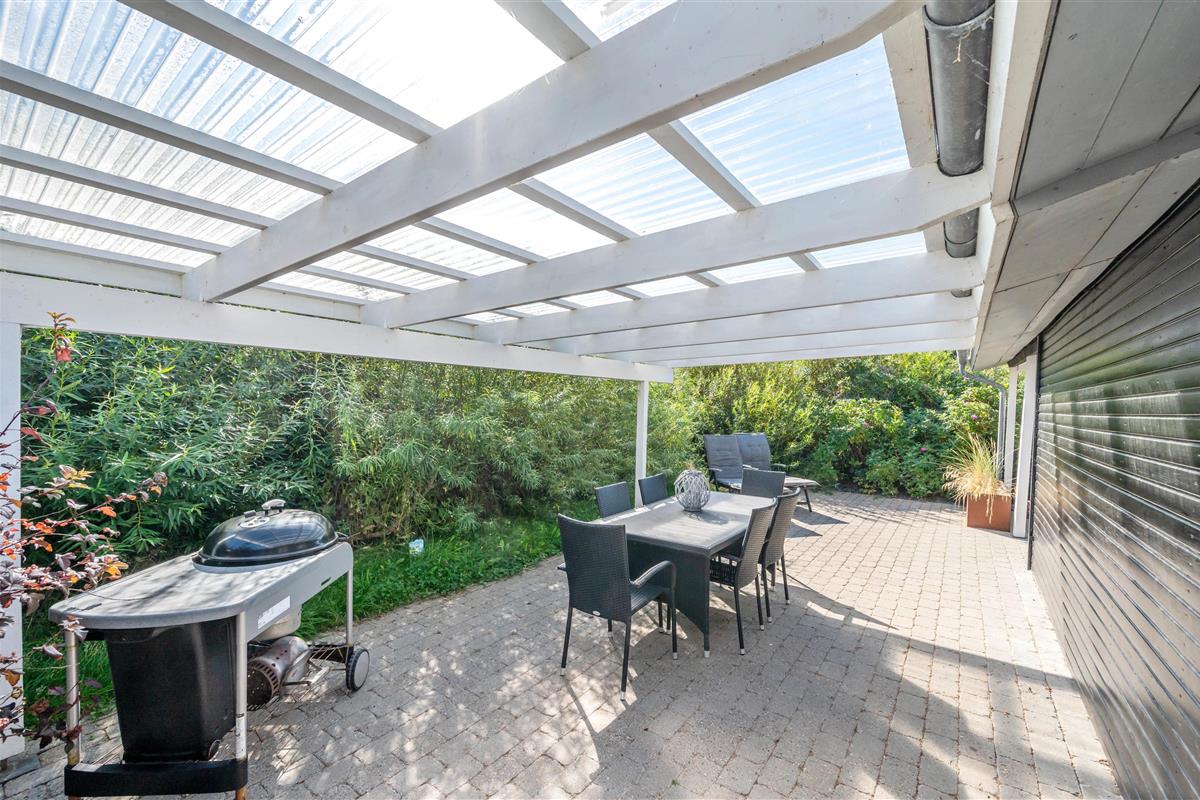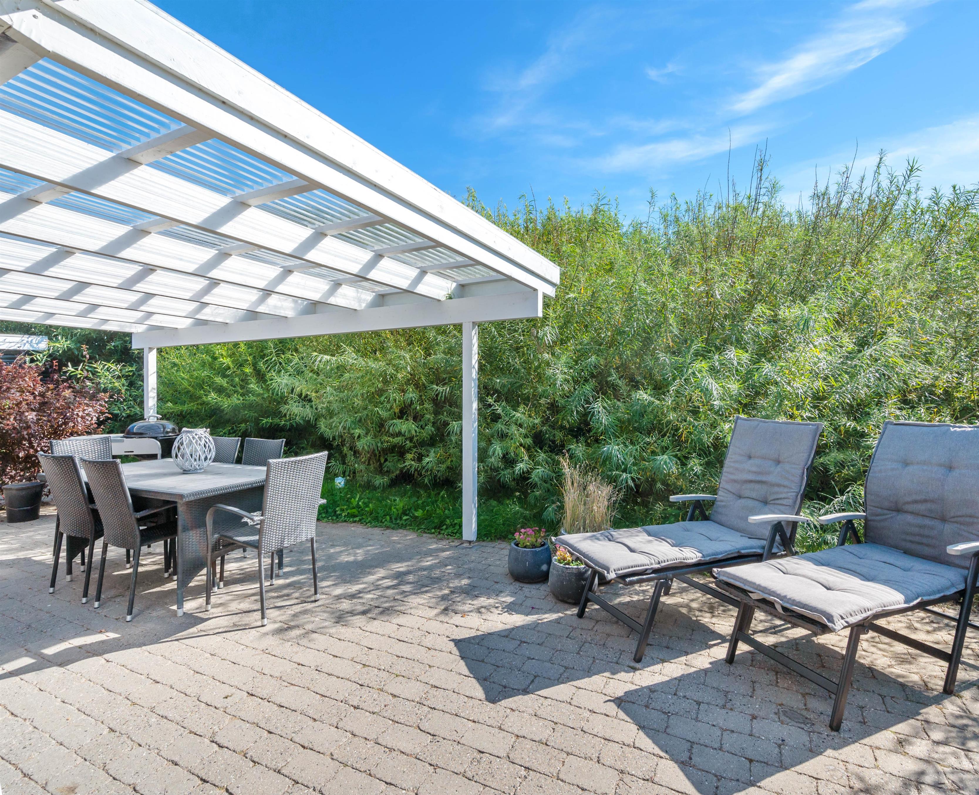 The living room leads out to a partially covered terrace. This lovely outdoor space allows you to spend time outside regardless of the weather. Make yourself comfortable on the sun loungers on sunny days, and why not enjoy a barbecue! Your dog will surely find their favourite spot whilst keeping a faithful watch over the grill. Children will love the playhouse in the grounds, guaranteeing hours of fresh air entertainment.