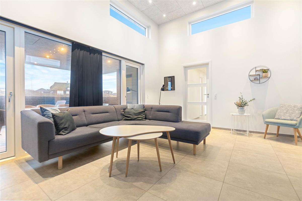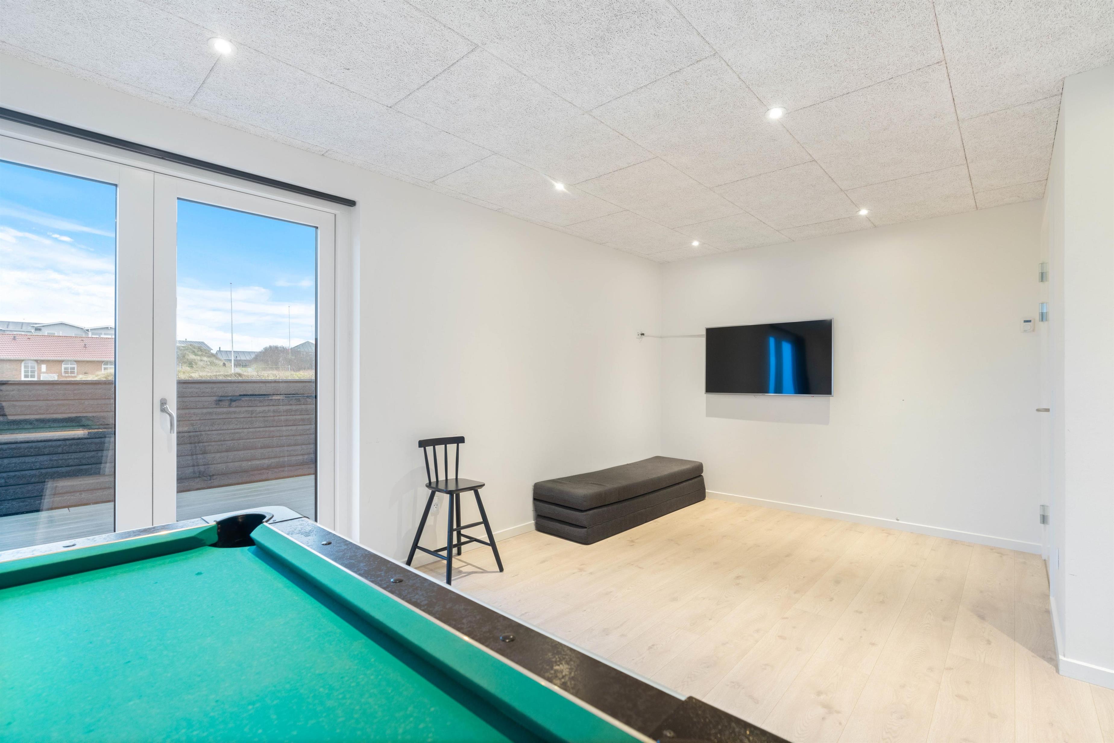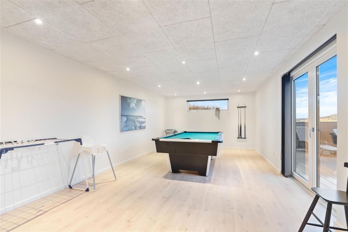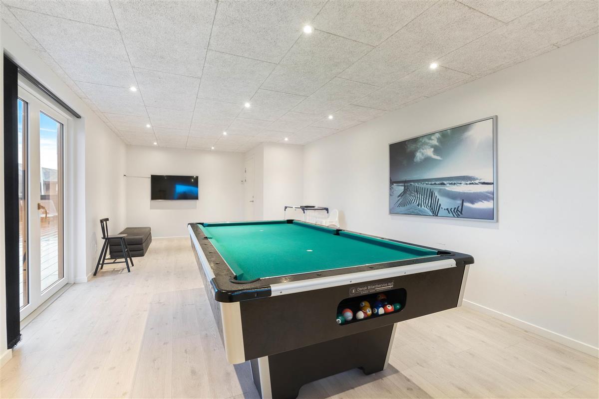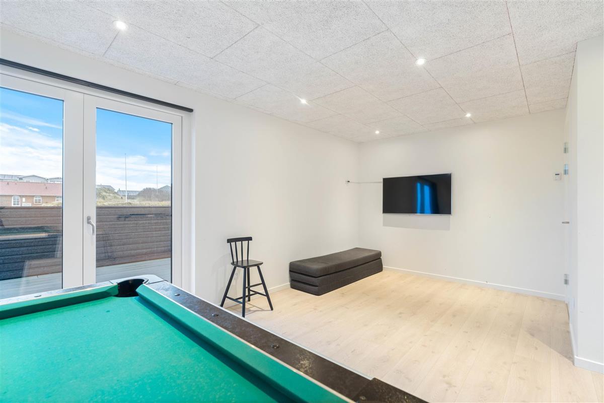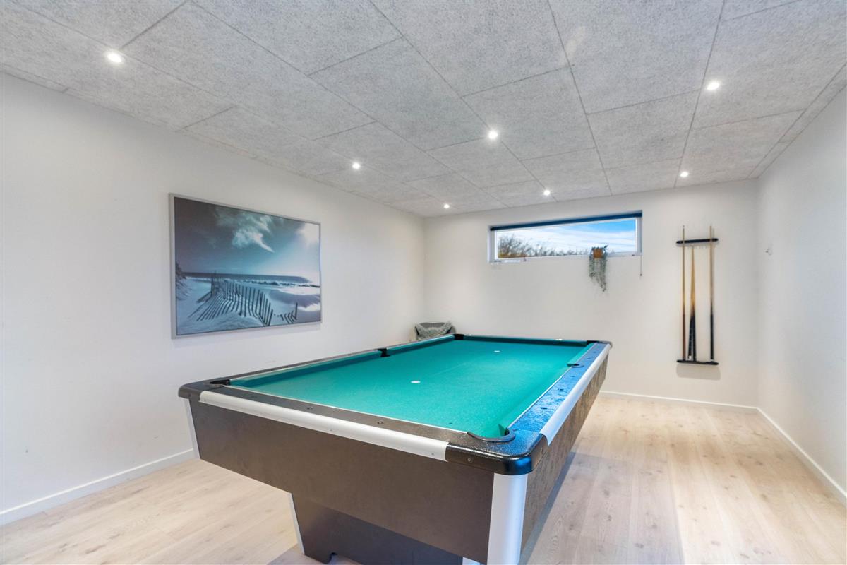 This exceptional holiday home at Lodbergsvej 99 in Søndervig accommodates up to 8 people. The holiday home offers comfort in every aspect, featuring stunning interior design, a whirlpool, sauna, and pool table. Your dog is warmly welcome, and the house enjoys an excellent location just a few minutes' walk from both the beach and Søndervig centre. This is undoubtedly the perfect holiday home for anyone looking to spend a wonderful summer holiday in Søndervig.