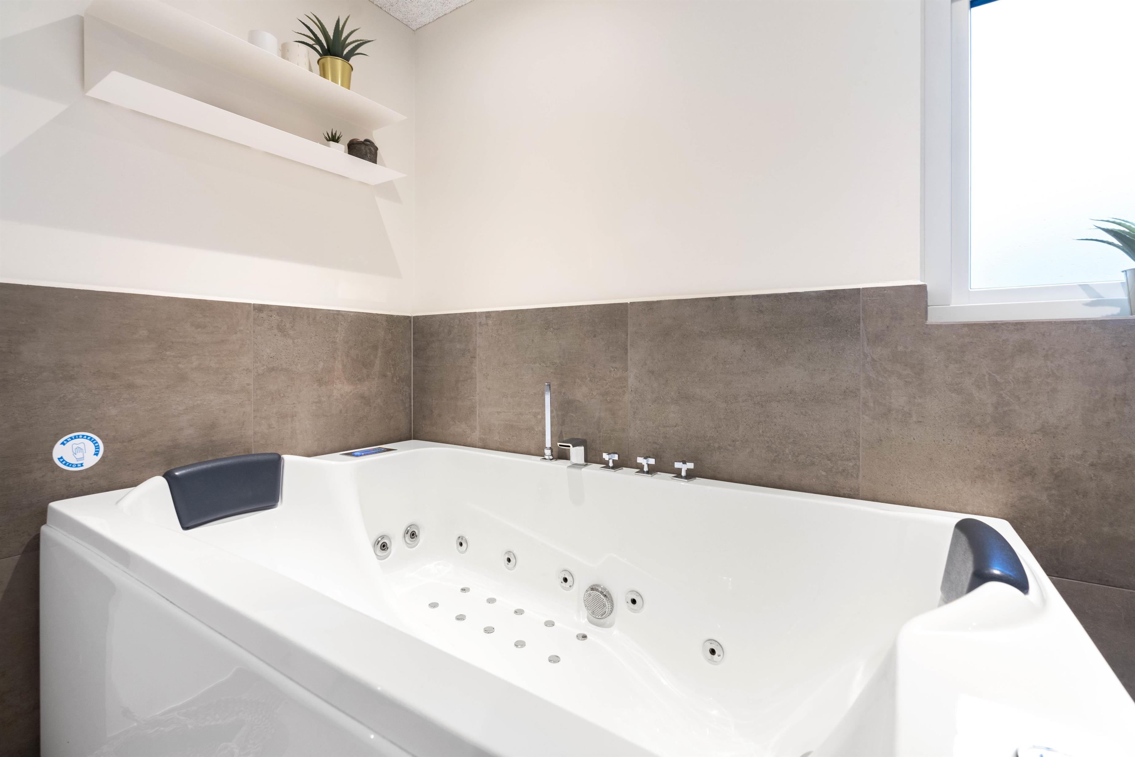 This holiday home offers a first-class wellness experience with plenty of space for the extended family. The whirlpool and sauna are located in one of the home's two bathrooms, with the second bathroom helping to avoid morning queues. For discerning guests seeking a holiday with the very best amenities, every conceivable comfort has been provided.