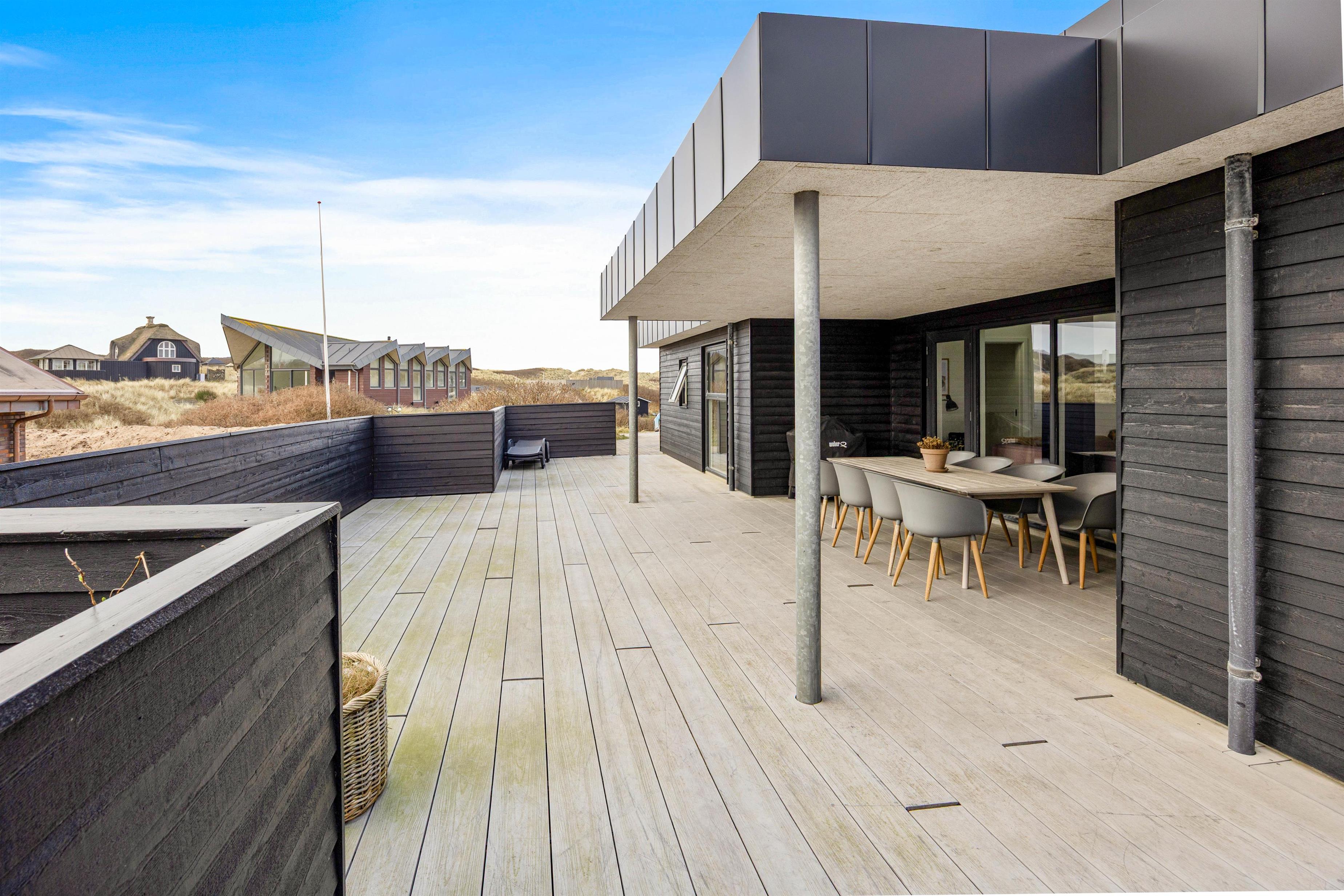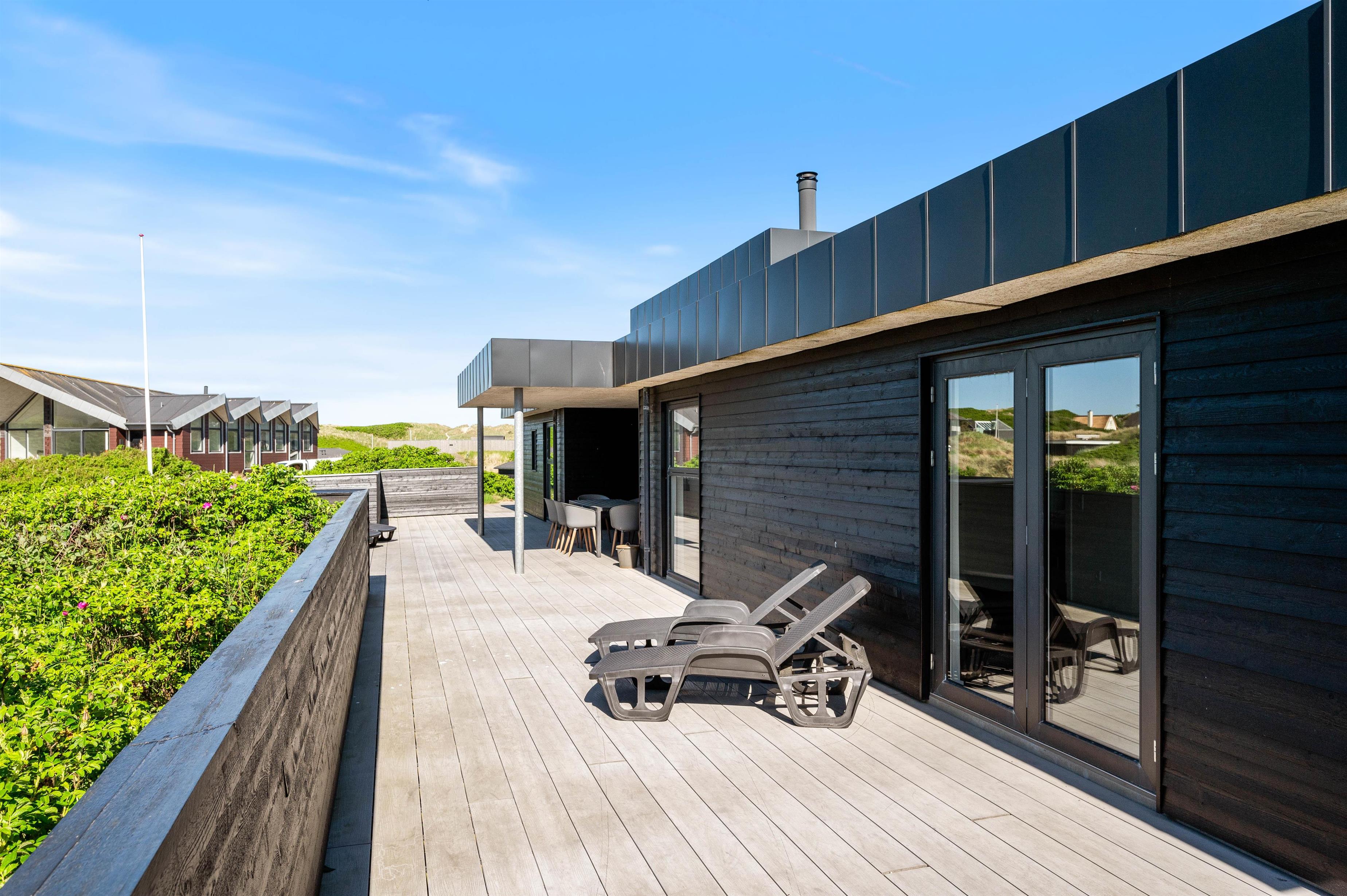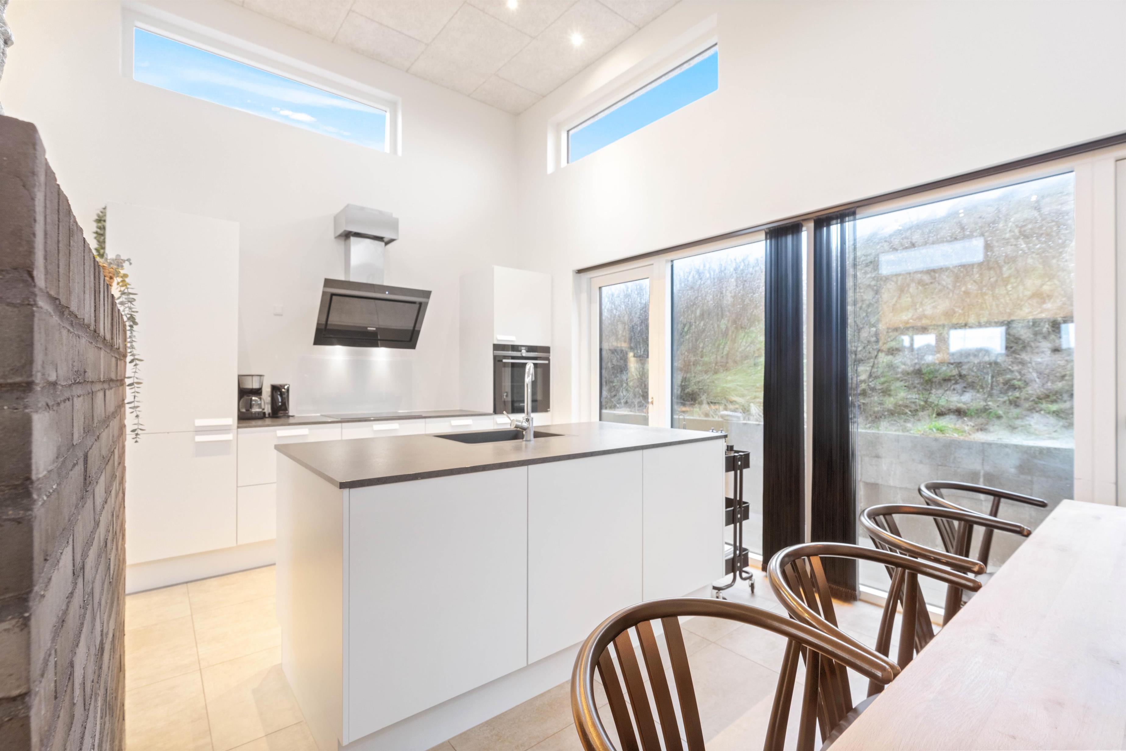 This holiday home accommodates 8 people in four large, spacious bedrooms, each furnished with a double bed. The living and kitchen area is truly outstanding, with natural light flooding through large windows and premium materials ensuring a holiday where no comfort is spared.