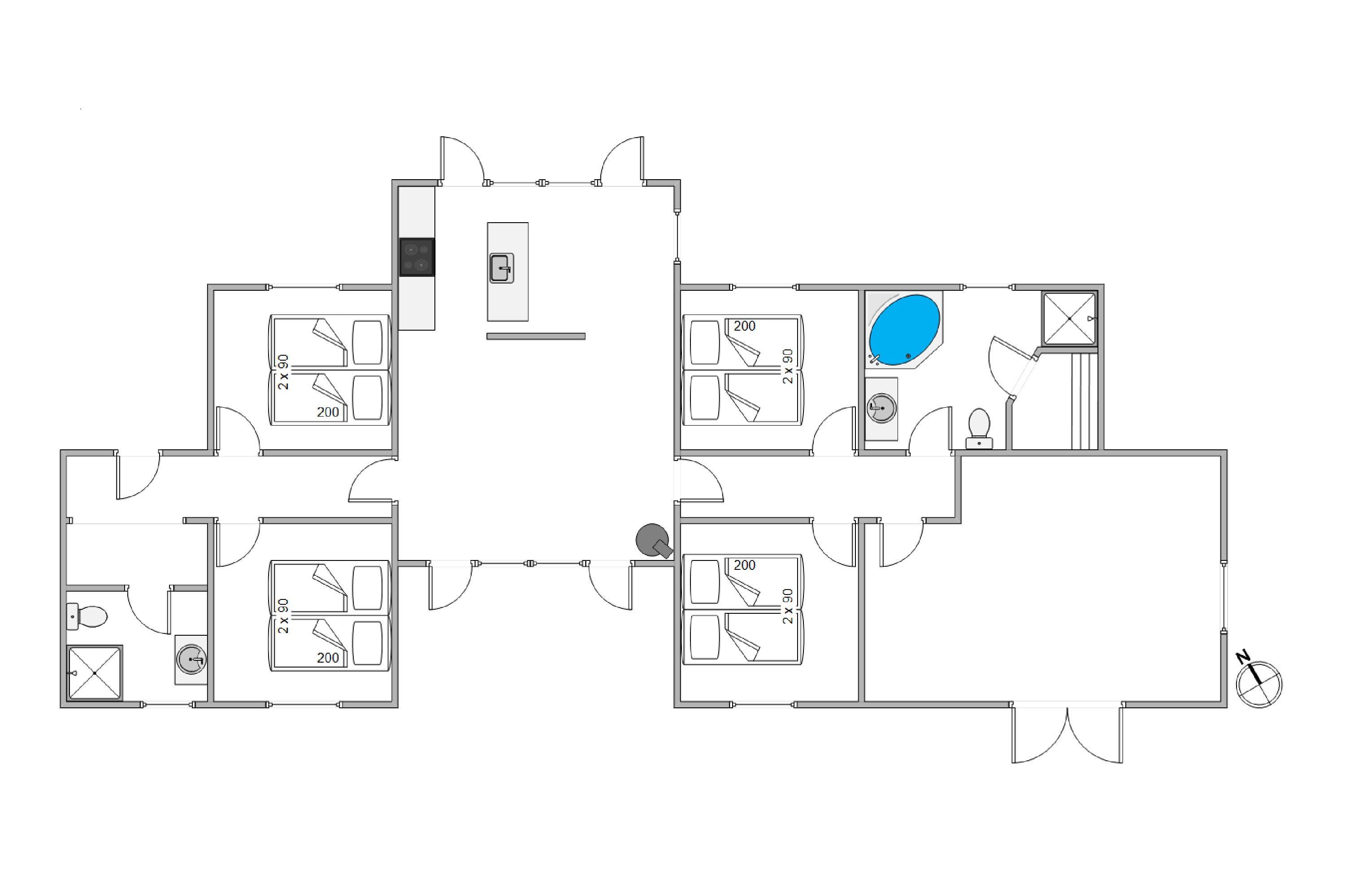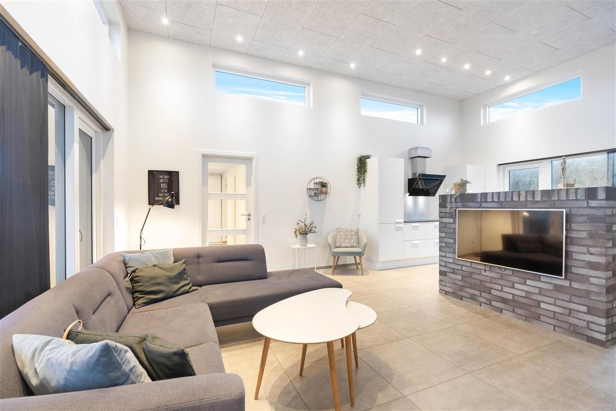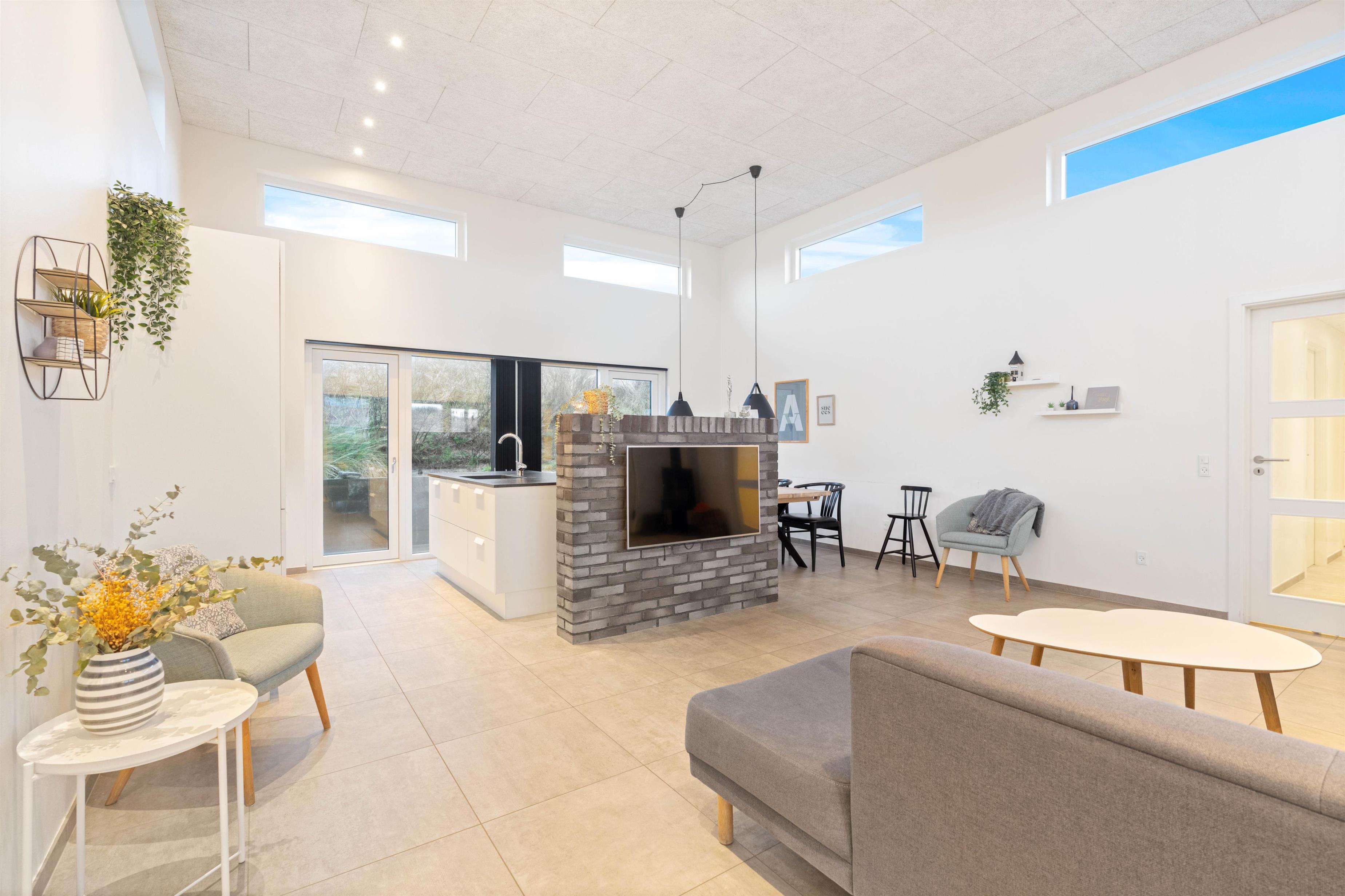 This holiday home accommodates 8 people in four large, spacious bedrooms, each furnished with a double bed. The living and kitchen area is truly outstanding, with natural light flooding through large windows and premium materials ensuring a holiday where no comfort is spared.