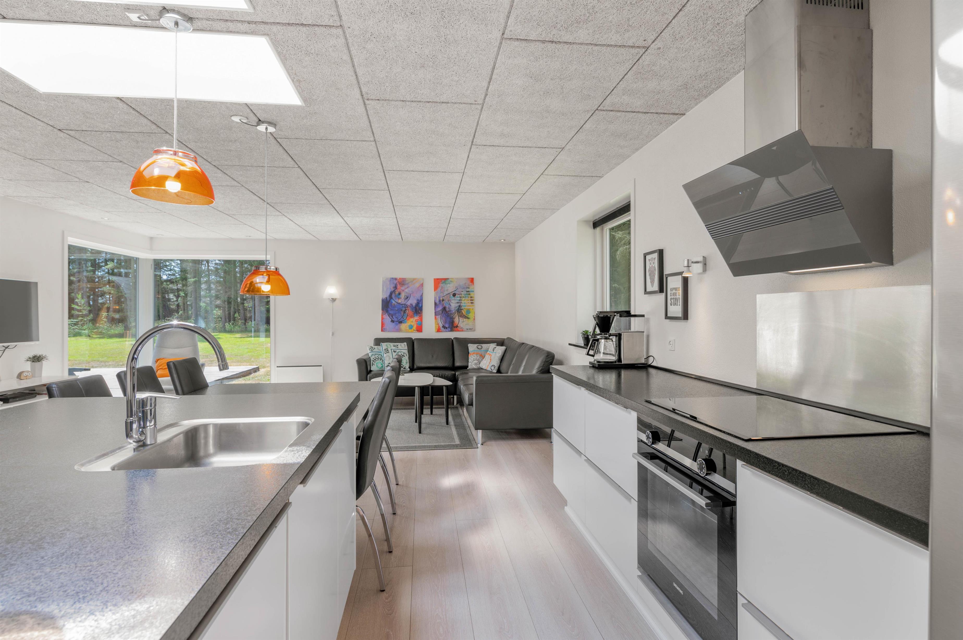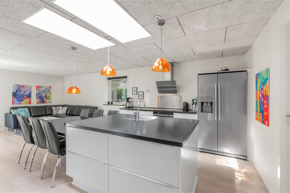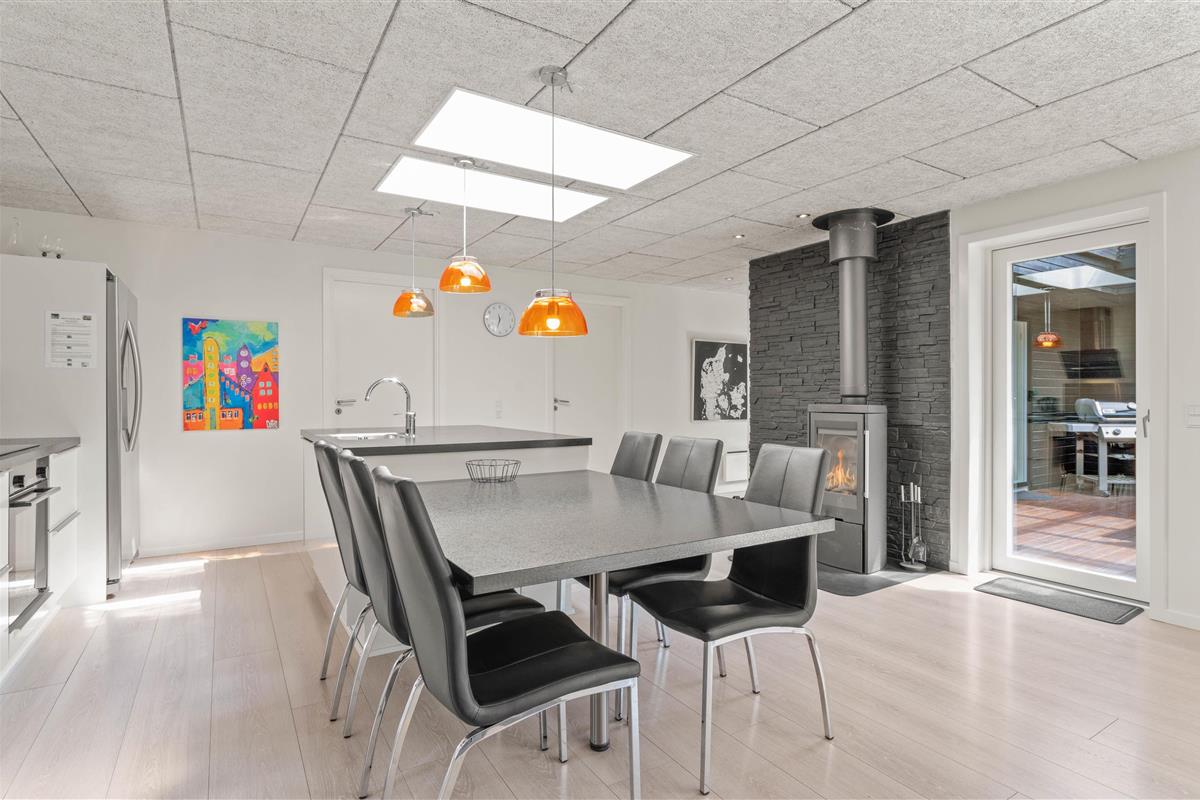 Upon entering this holiday home, you'll be immediately impressed by its style and numerous extras. Typical Danish open-plan design with abundant windows and attention to detail awaits you in this 154 square metre holiday home accommodating 6 people. The open-plan living and dining area is perfect for family games evenings, while cooking becomes a pleasure in the well-equipped kitchen, as the open layout keeps you at the heart of the action.
