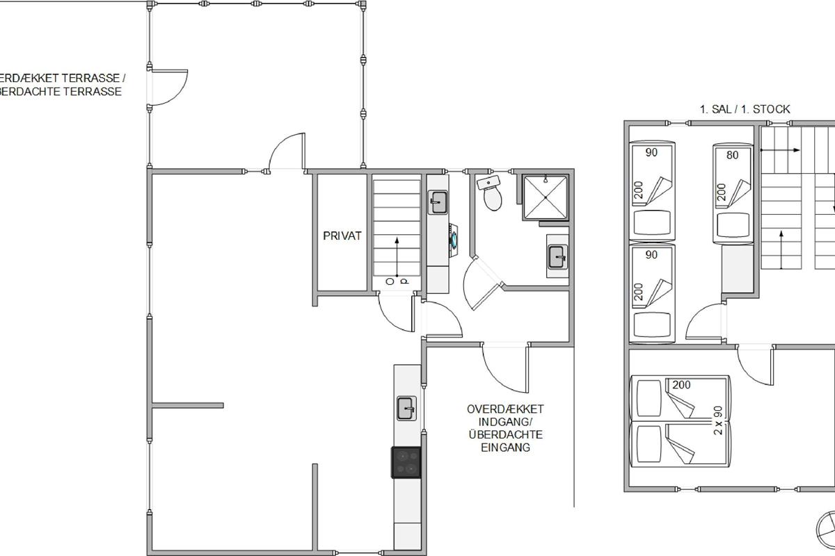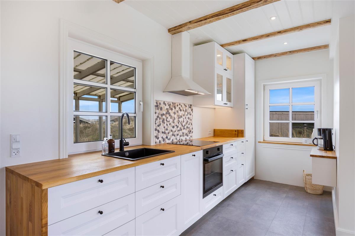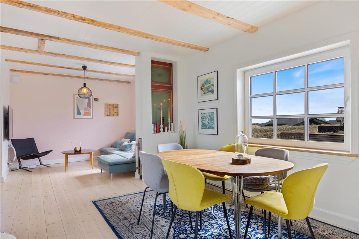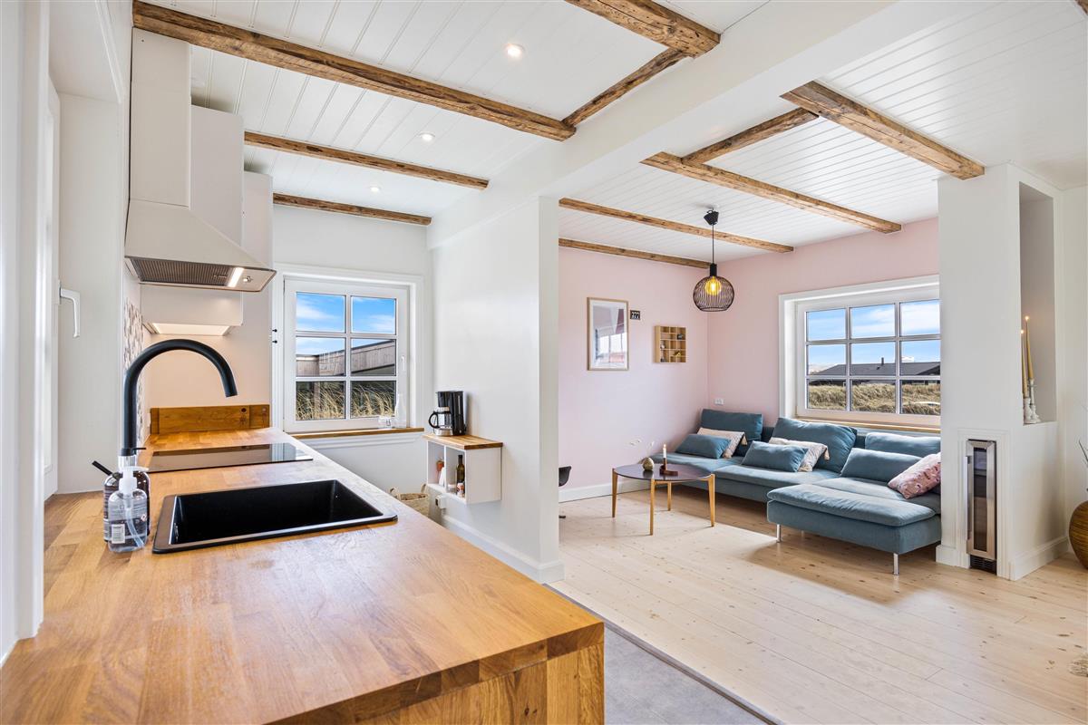 This holiday home welcomes you with plenty of natural light and a wonderfully cosy atmosphere in the heart of Søndervig's dune landscape. The well-designed open-plan layout and spacious conservatory create an instantly welcoming feel, making your holiday truly special. The holiday home features a flat-screen TV with three German channels and Chromecast streaming capability, supported by high-speed fibre broadband. The open-plan living and dining area, along with the beautiful conservatory, provide perfect spaces for evening games and wonderful conversations.