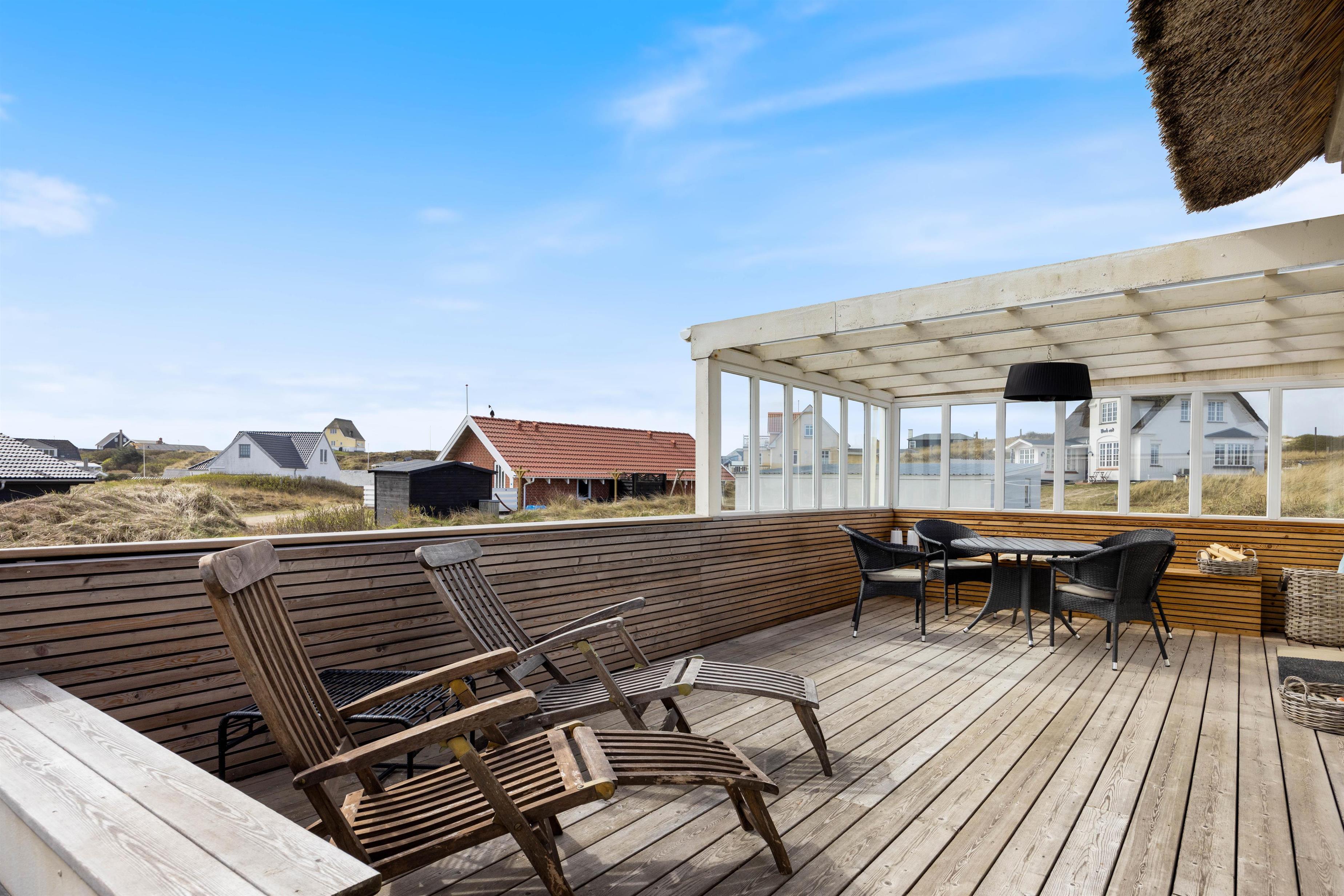 The holiday home is so close to Søndervig's unique beach that you can taste and smell the sea air from your dune-side plot. Even in strong sea breezes, the sheltered terrace - accessible directly from the conservatory - is perfect for extended barbecue evenings using the holiday home's gas barbecue. Children will enjoy the sandpit and small slide in the natural dune garden, making lasting memories of their North Sea holiday.