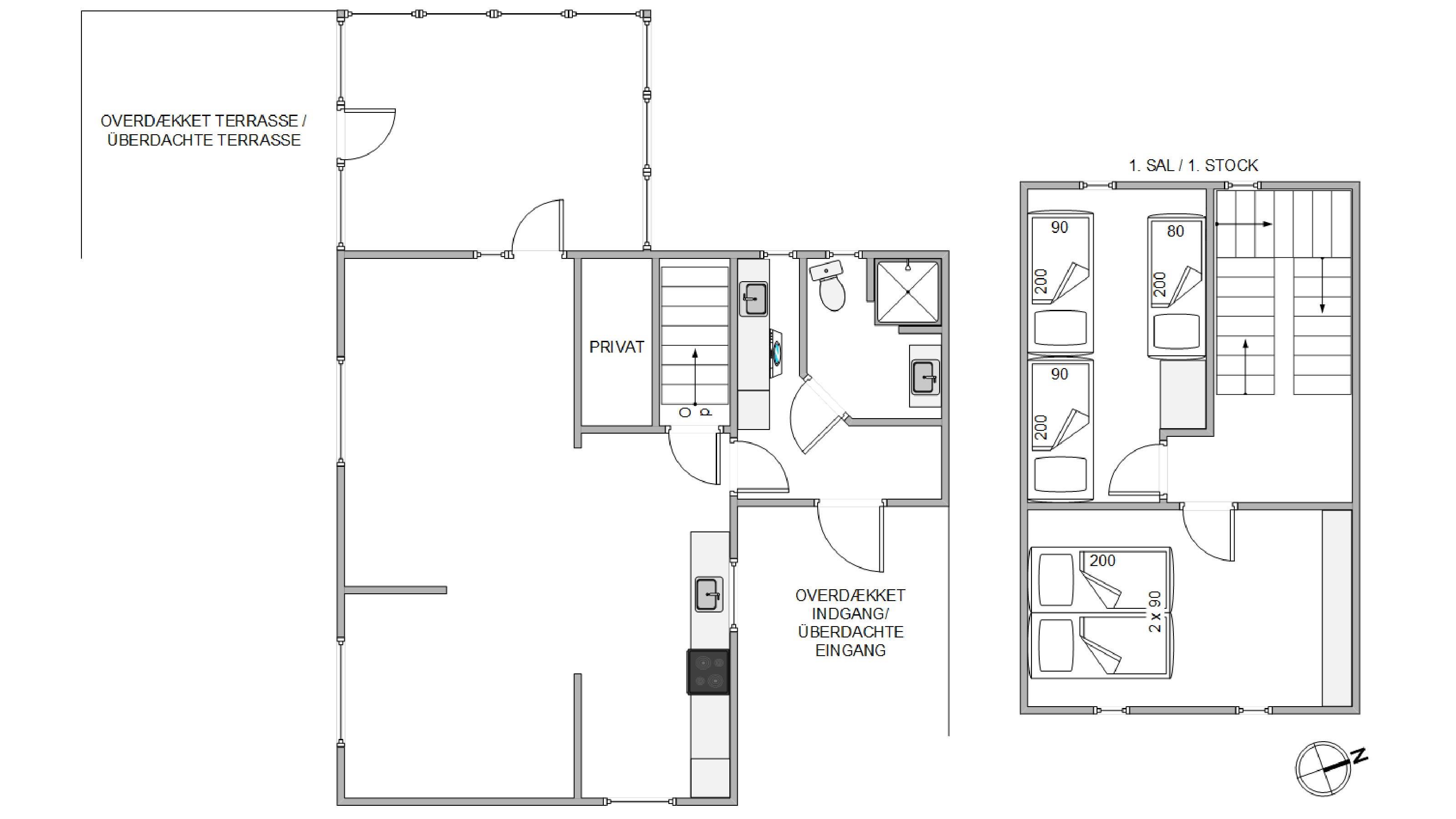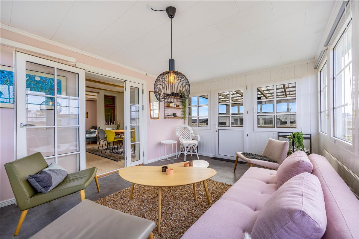This cosy 98-square-metre holiday home at Lodbergsvej 377 in Søndervig invites you for a relaxing holiday near the beach. The living space, spread across two levels, includes an open-plan kitchen, living and dining area, two bedrooms and a delightful conservatory, accommodating up to 5 people. This tastefully furnished holiday home offers both comfort and charm, located just 200 metres from the beach - a true Danish oasis of well-being.