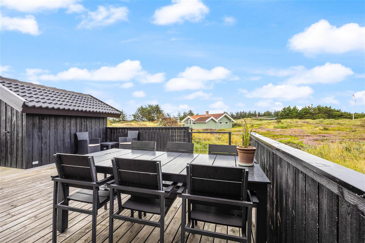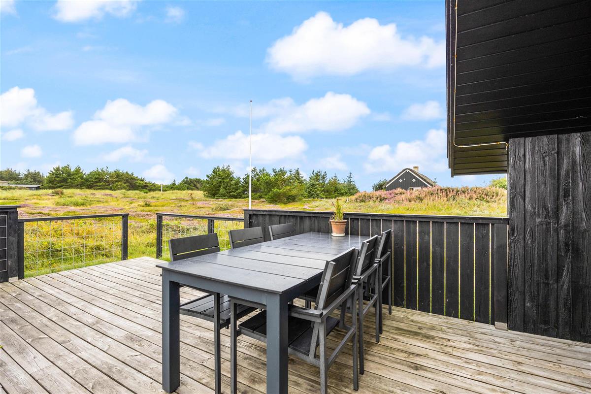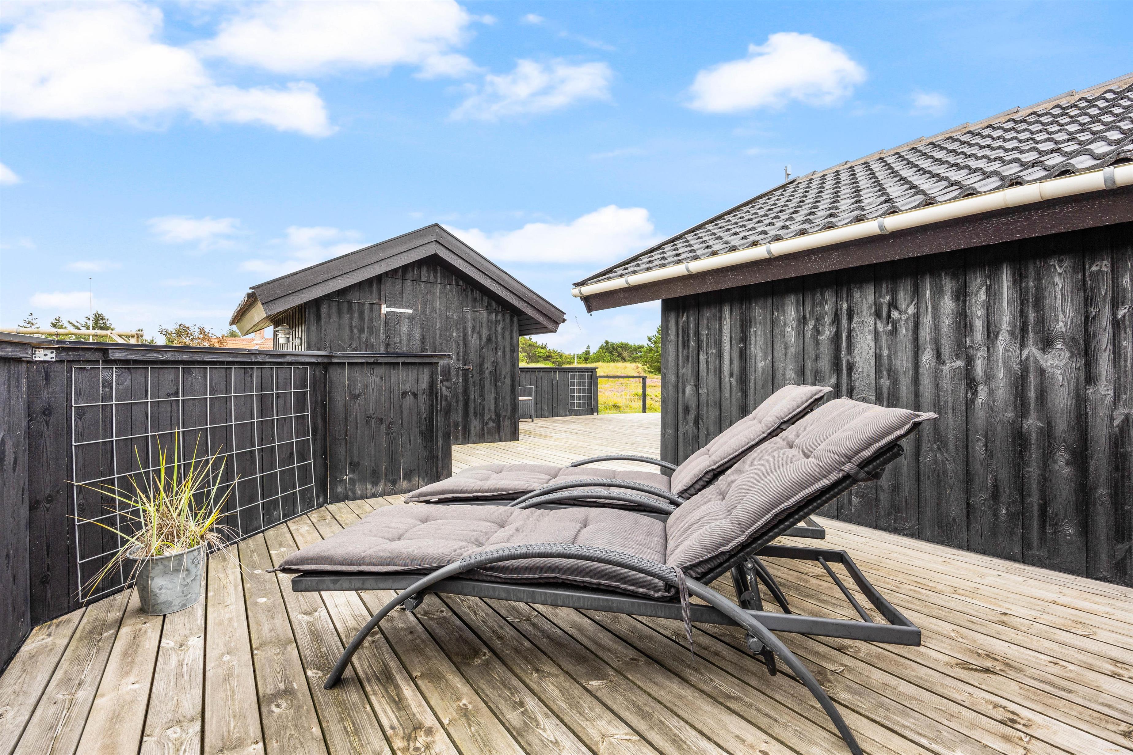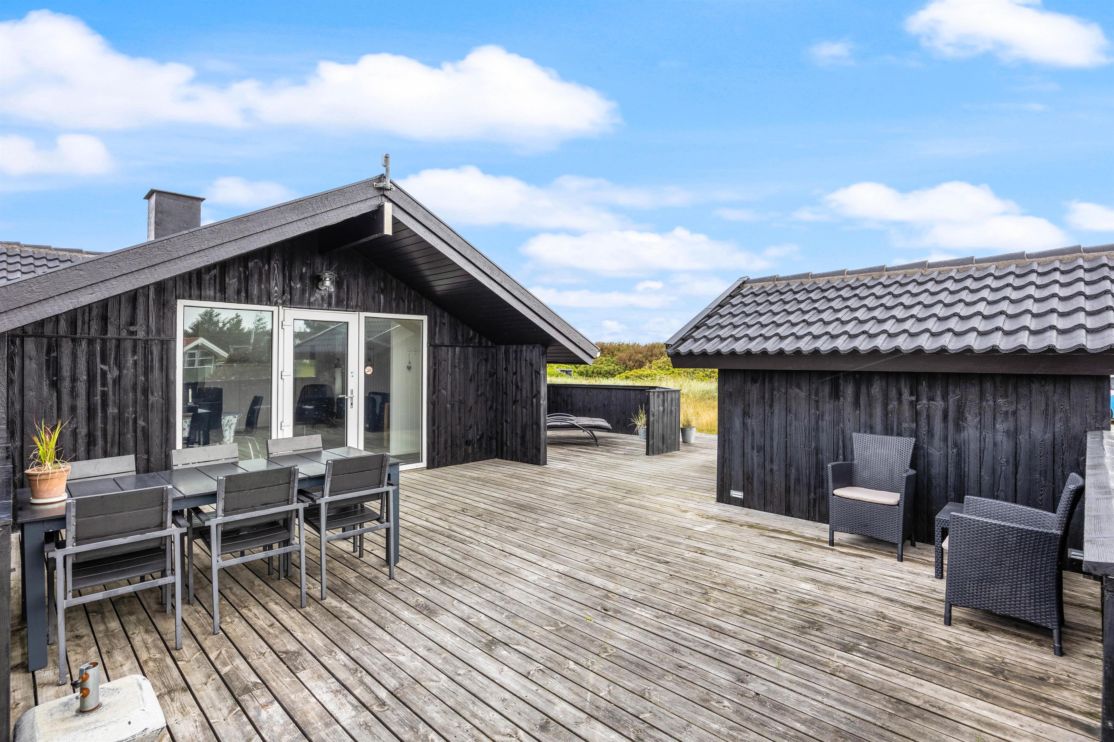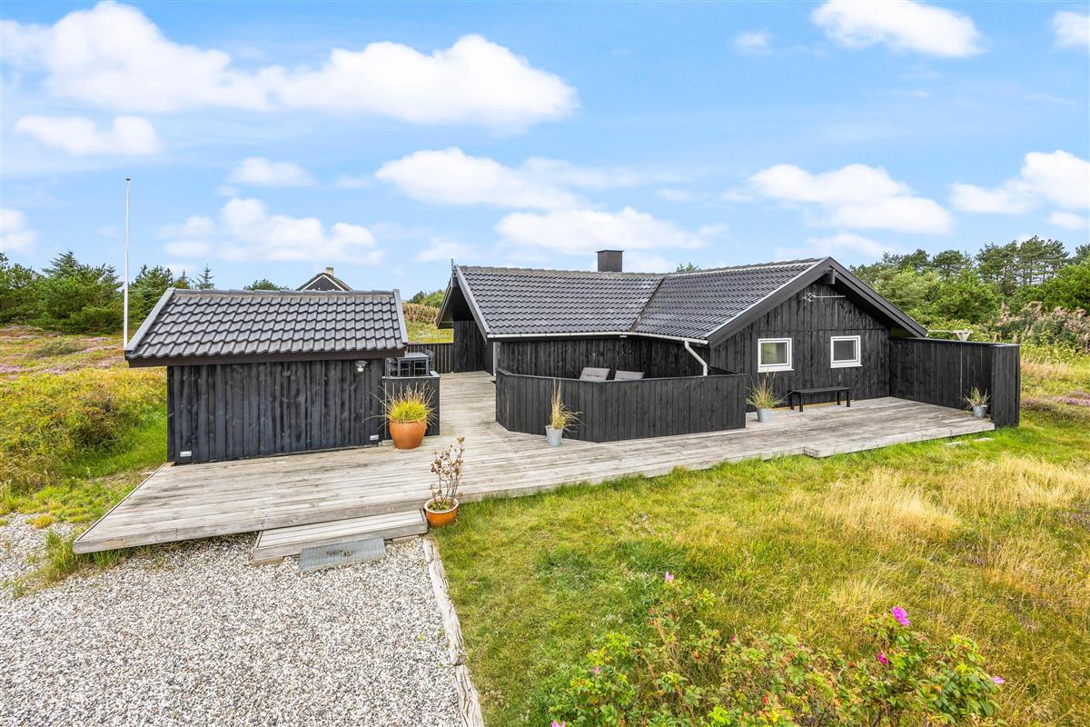 The holiday home sits on a 2,466-square-metre natural plot covered in heather, just 800 metres from miles of sandy beach and the breathtaking North Sea. The living room opens directly onto a beautiful, large wooden terrace that's sheltered and partially enclosed. Garden furniture, sun loungers and a barbecue are provided. As evening falls, it's the perfect time to fire up the barbecue and let the grill master demonstrate their skills preparing a delicious meal for the whole family. Young guests will enjoy the swing and plenty of space to play.