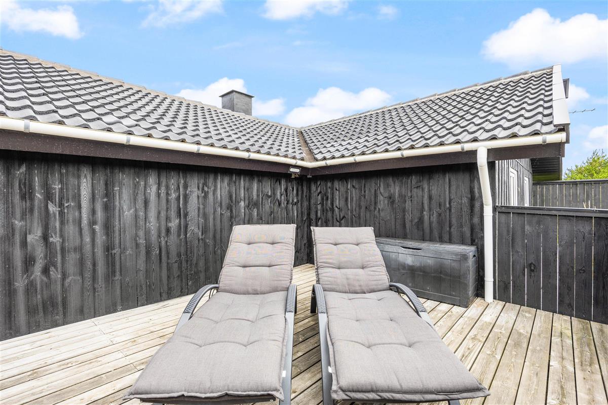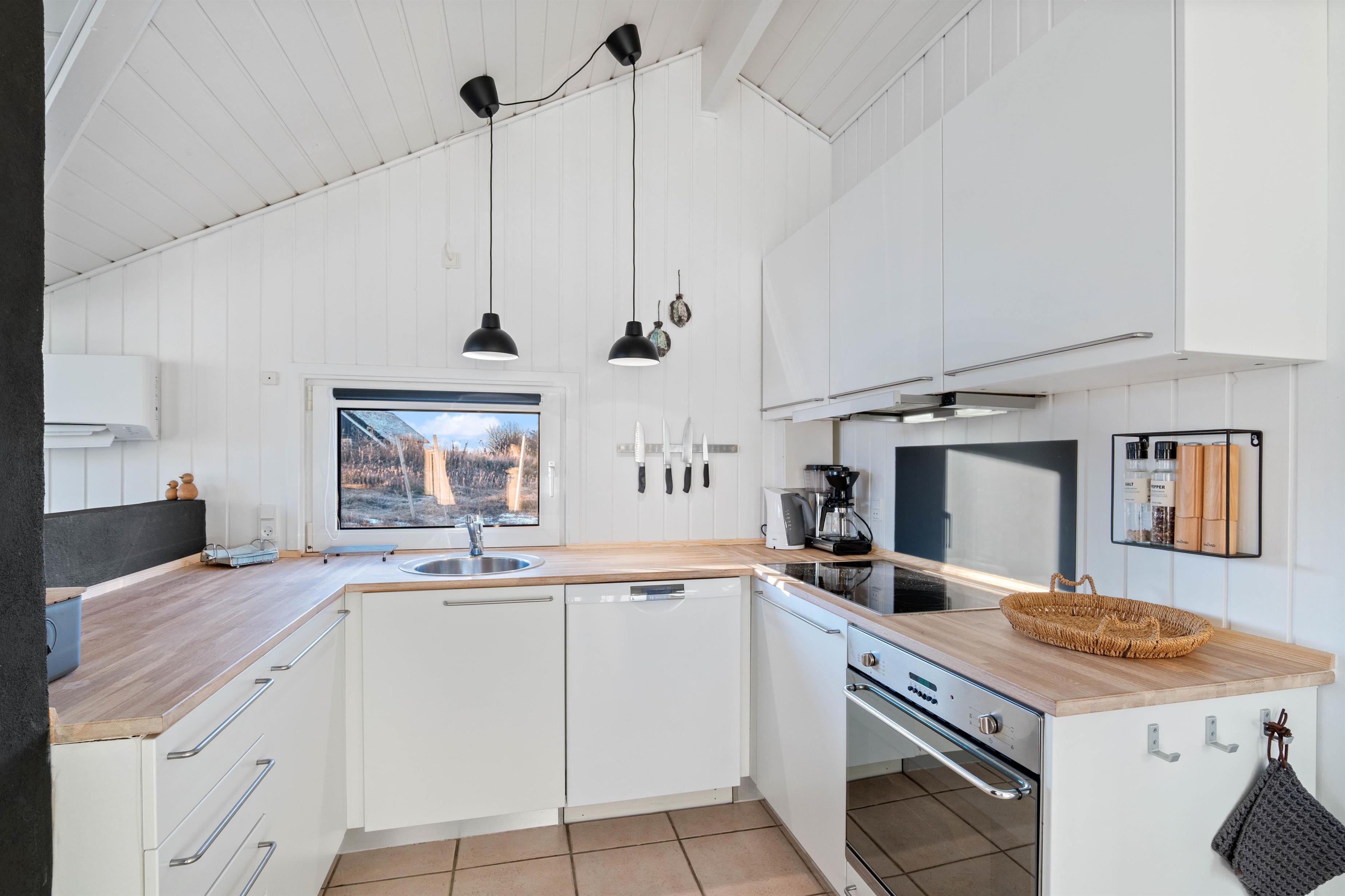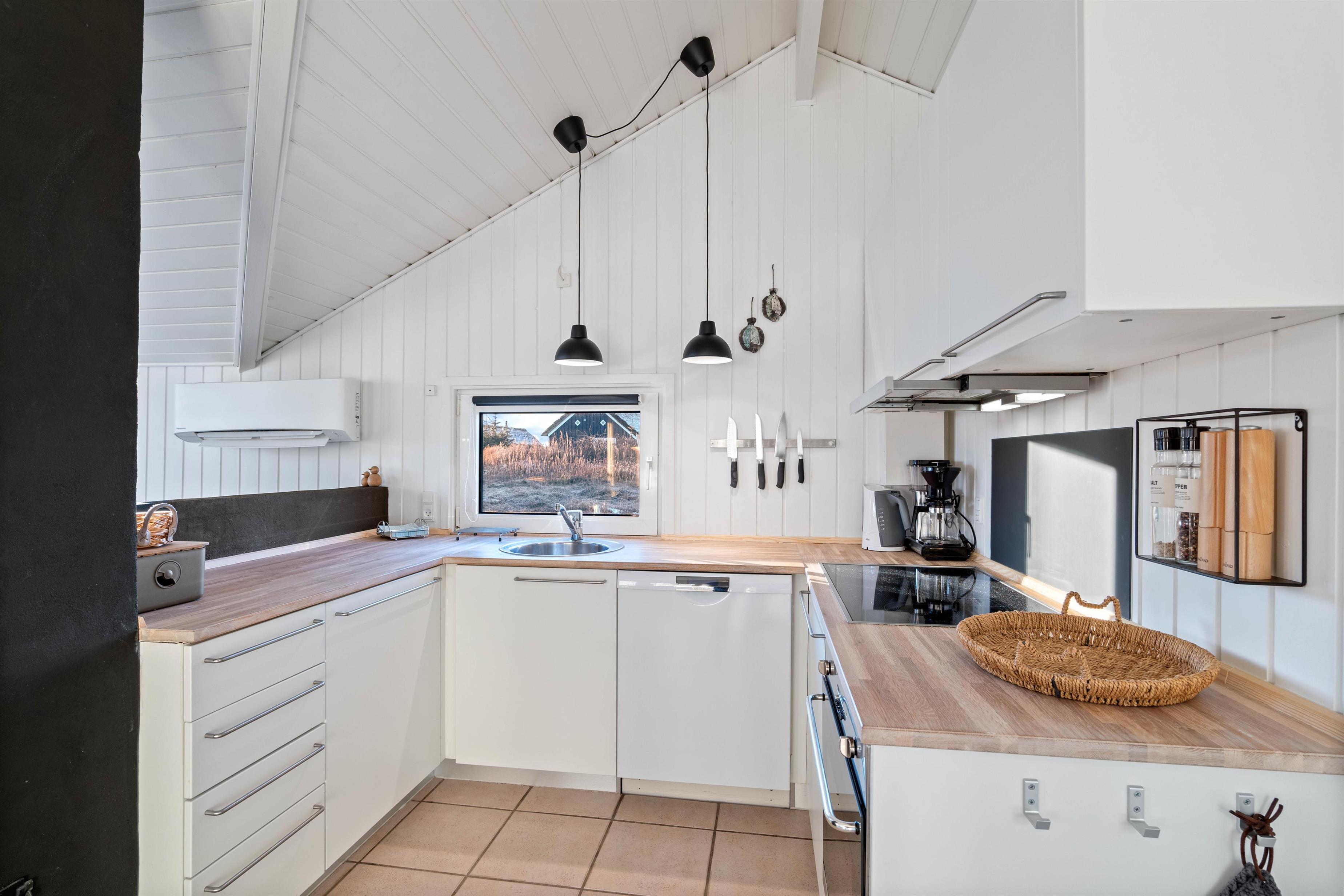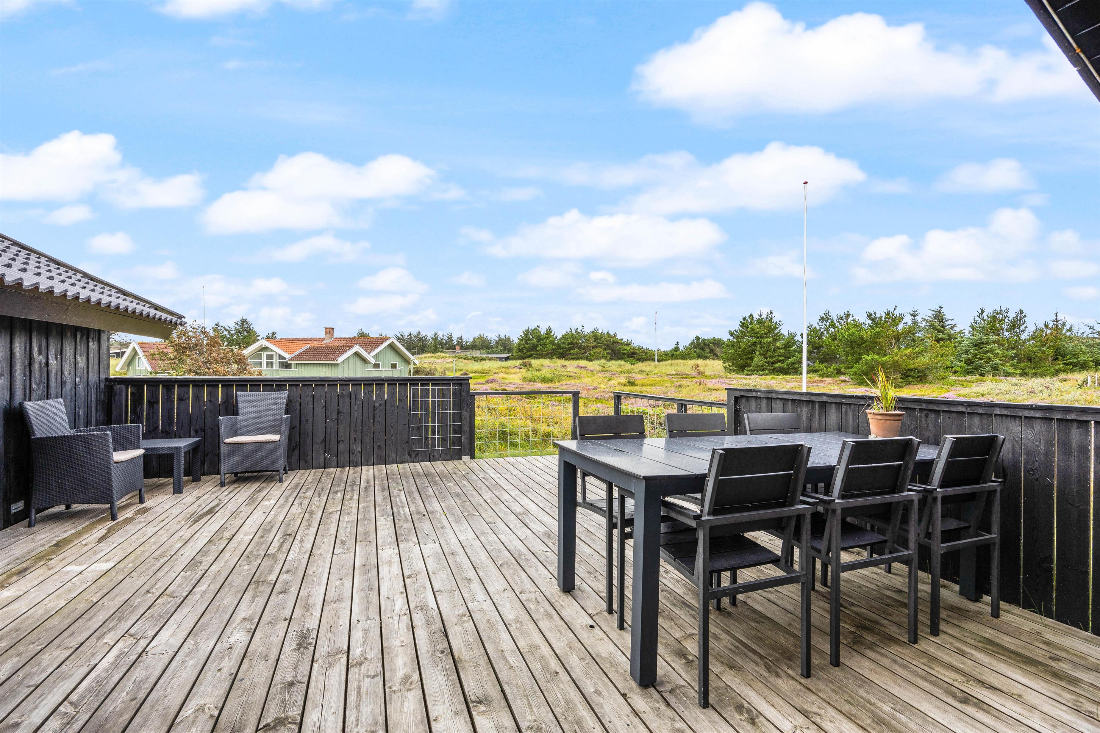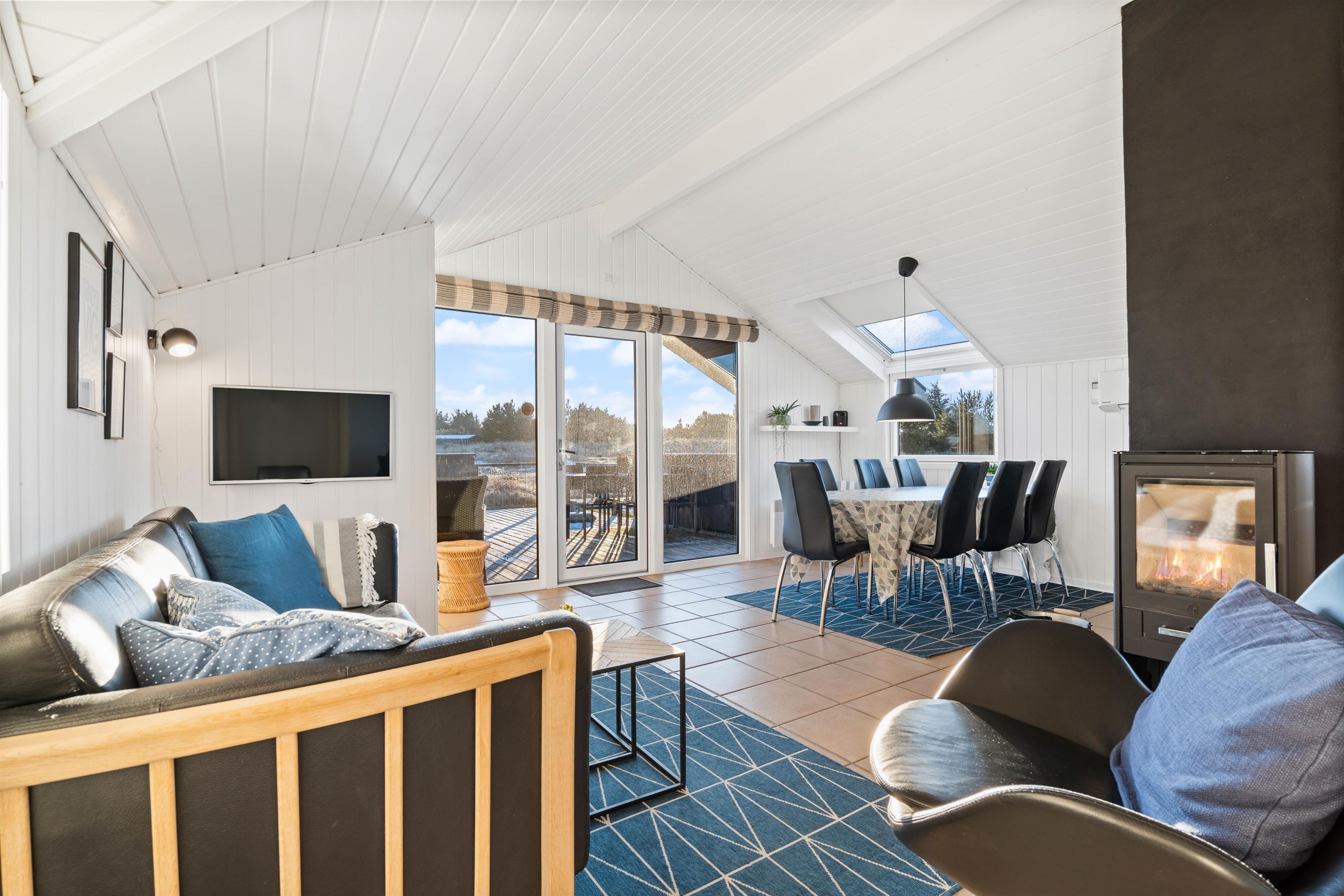 The holiday home sits on a 2,466-square-metre natural plot covered in heather, just 800 metres from miles of sandy beach and the breathtaking North Sea. The living room opens directly onto a beautiful, large wooden terrace that's sheltered and partially enclosed. Garden furniture, sun loungers and a barbecue are provided. As evening falls, it's the perfect time to fire up the barbecue and let the grill master demonstrate their skills preparing a delicious meal for the whole family. Young guests will enjoy the swing and plenty of space to play.