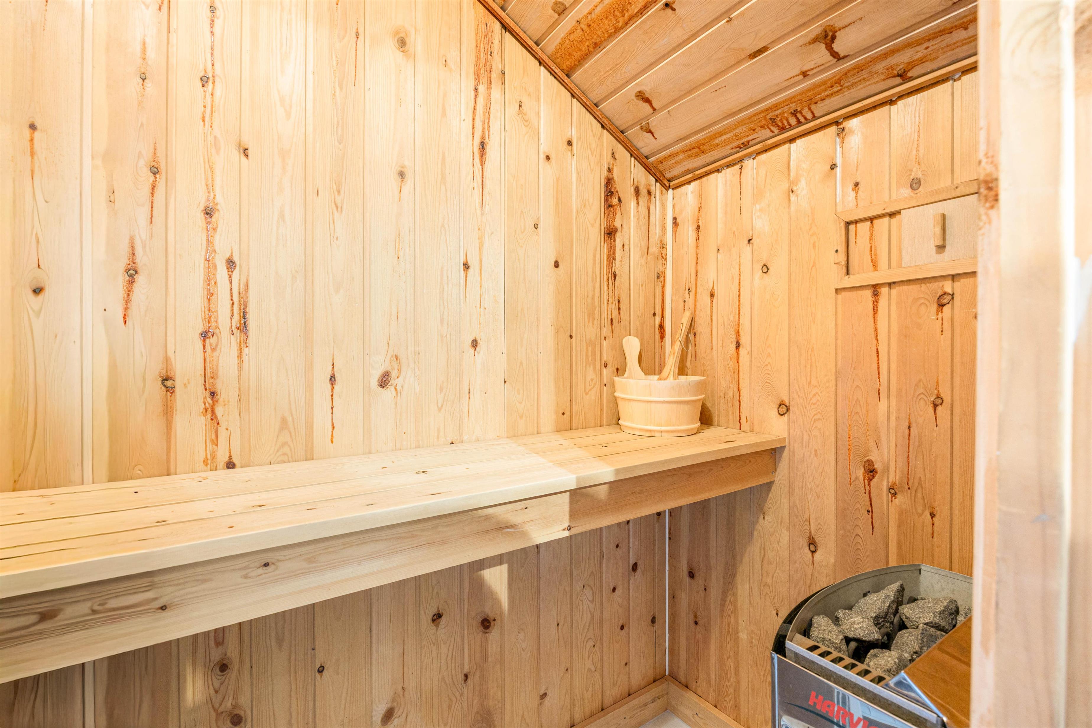 The three bedrooms offer ample storage for personal belongings and comfortable beds for sleeping and dreaming. The bathroom includes a washing machine and access to the private sauna, perfect for therapeutic relaxation sessions.