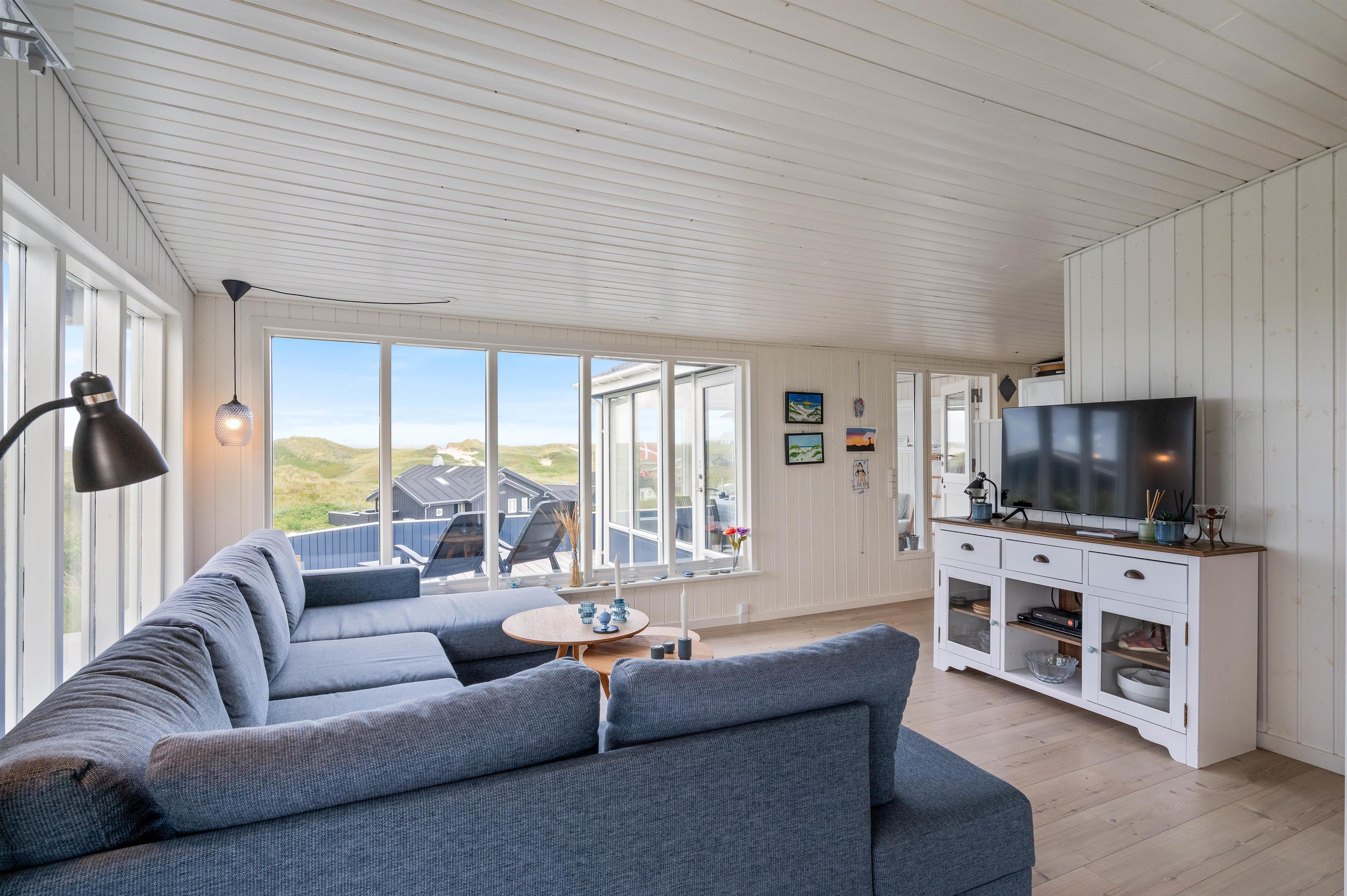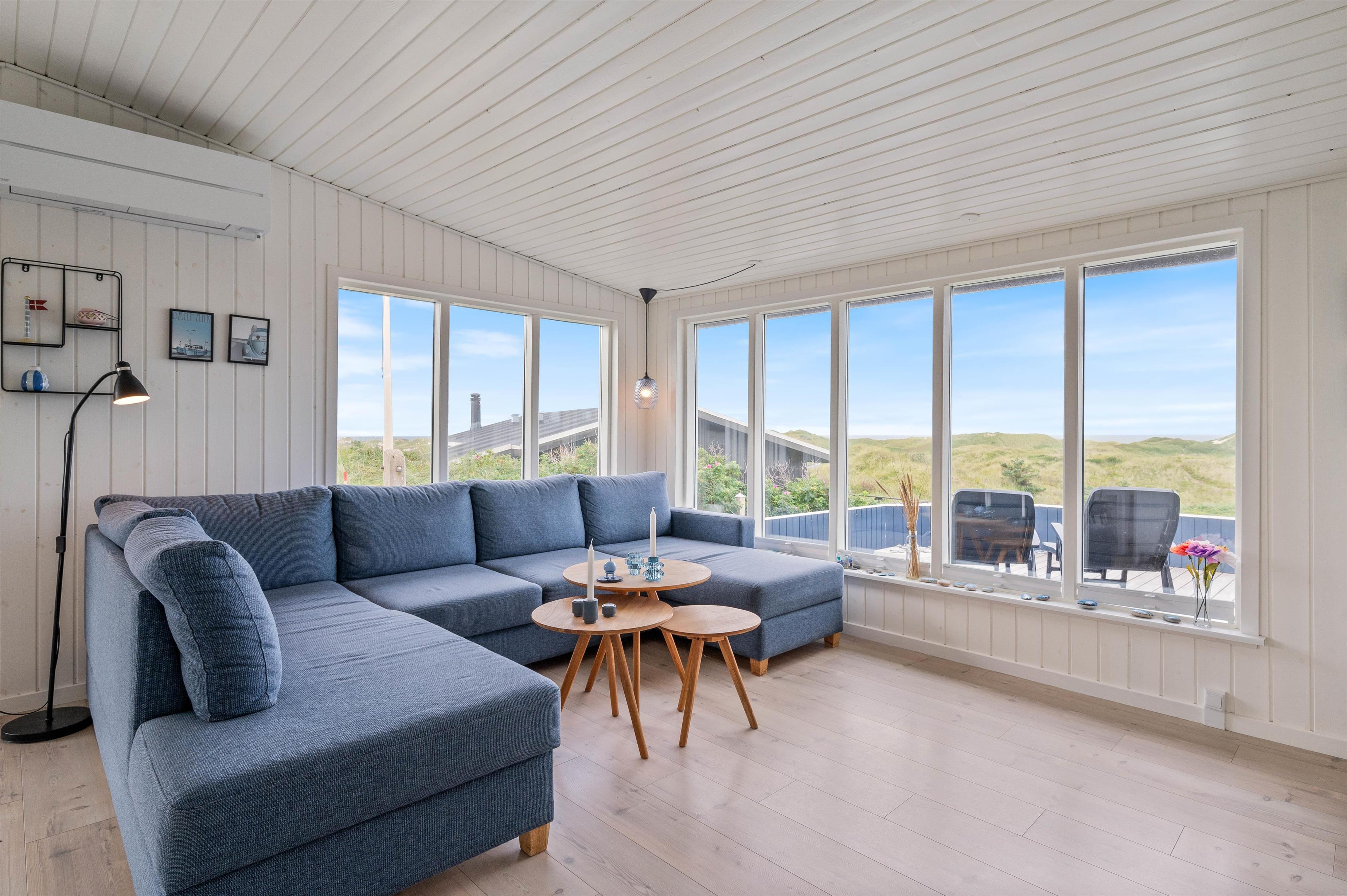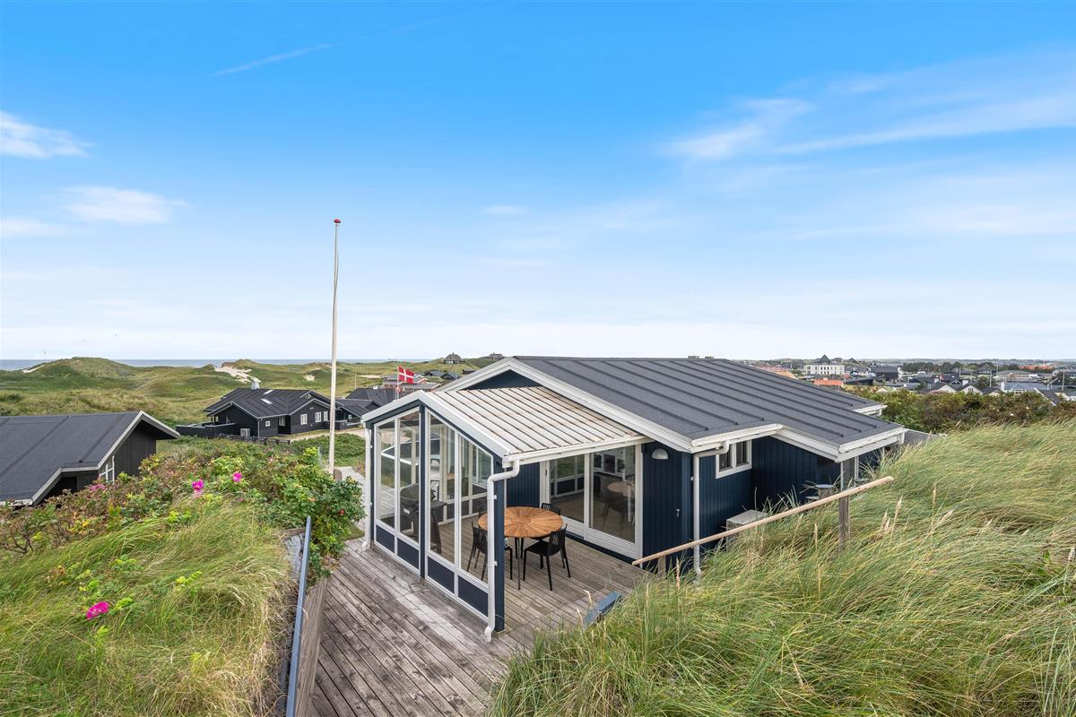 The key ingredient for a perfect holiday is feeling at home in your surroundings. You'll certainly feel at home in this beautiful elevated holiday cottage in Søndervig. The absolute highlight is its dream location, with the terrace offering exclusive views over the stunning landscape. Not only can you admire the enchanting dune landscape as far as the eye can see, but you can even catch glimpses of the thundering North Sea.
