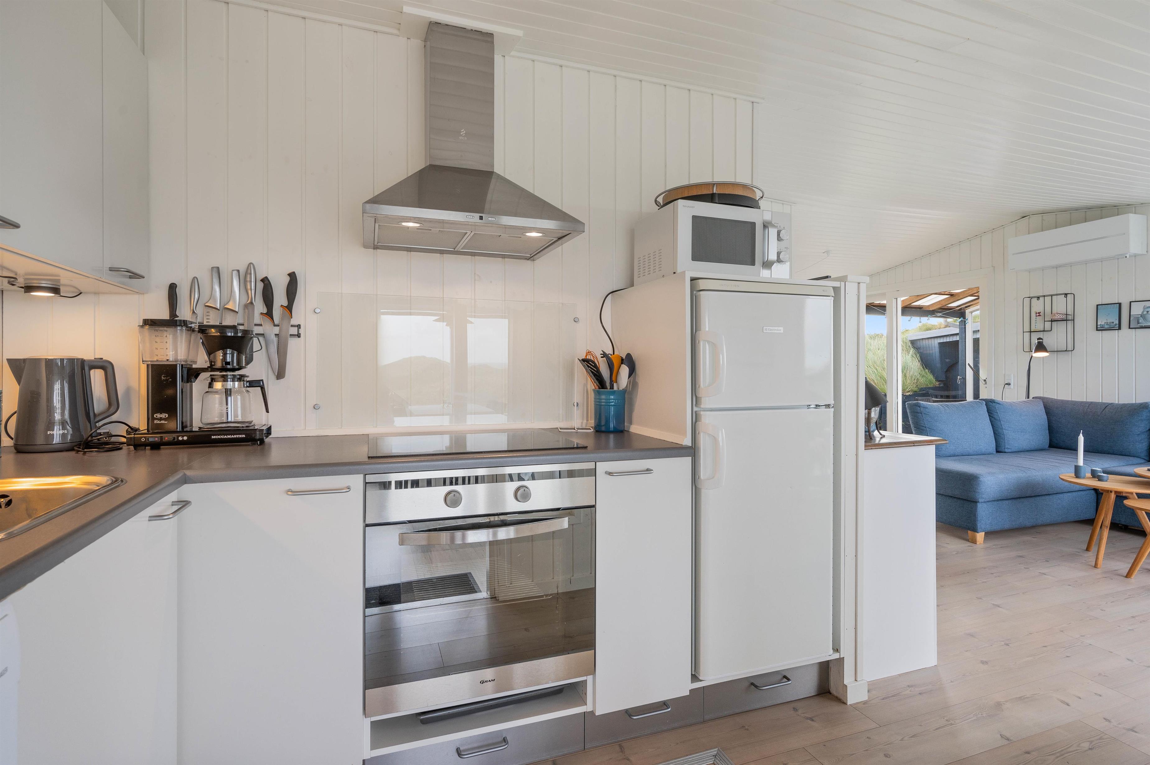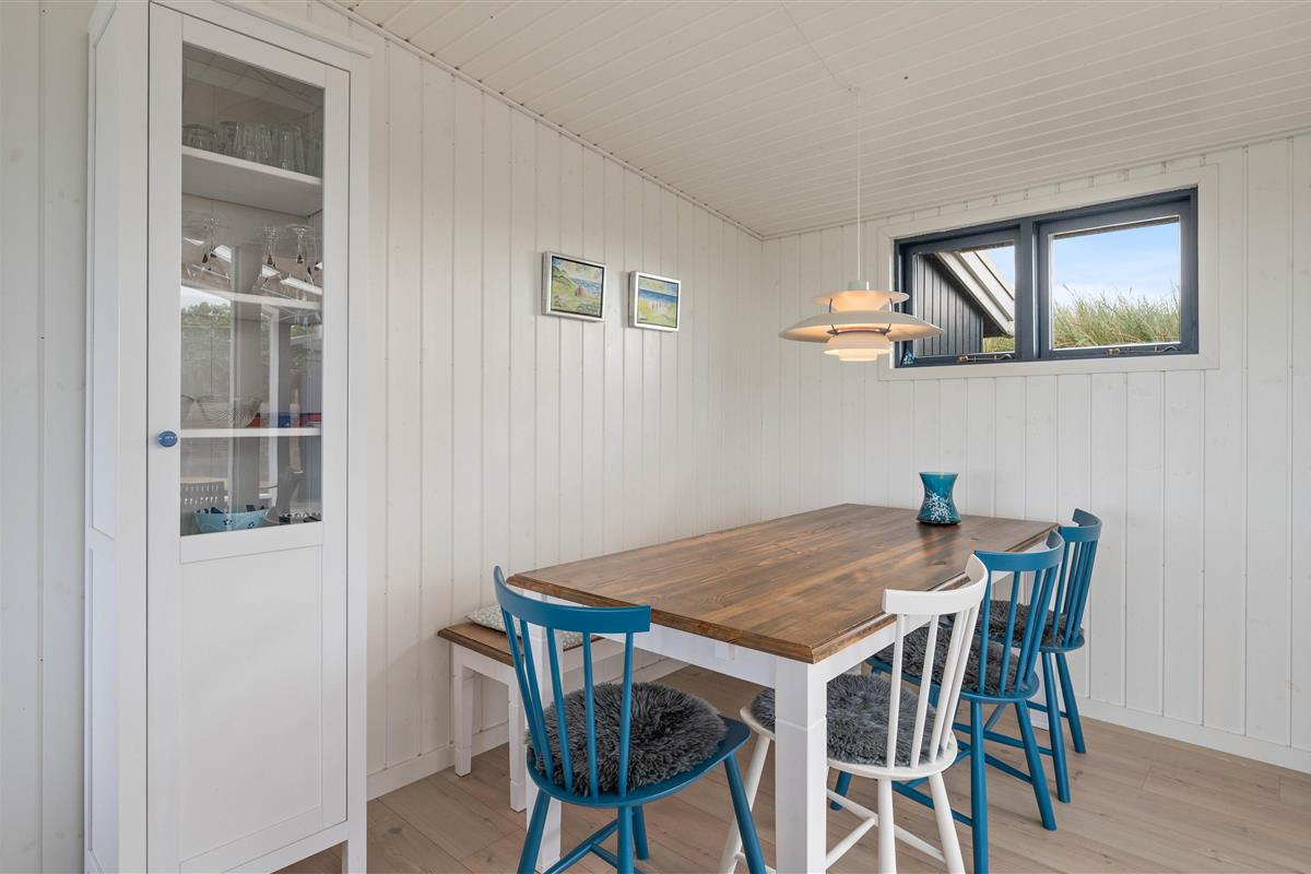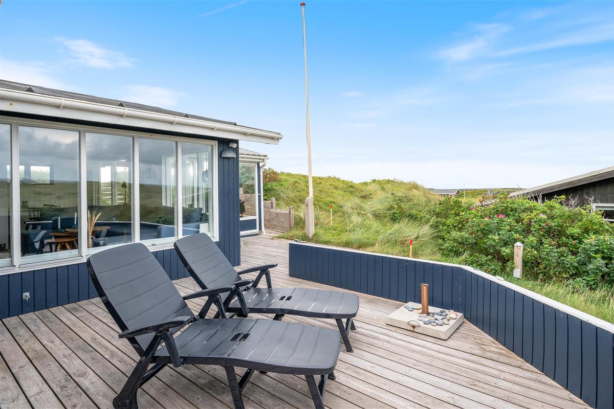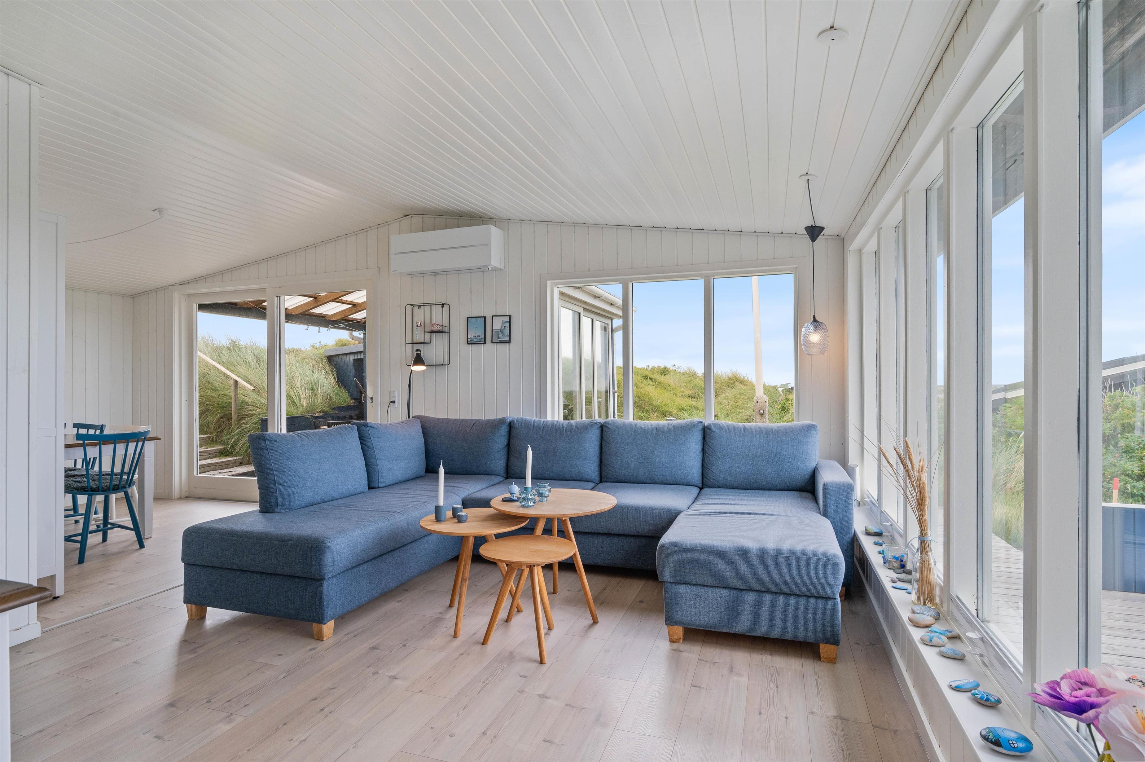 The key ingredient for a perfect holiday is feeling at home in your surroundings. You'll certainly feel at home in this beautiful elevated holiday cottage in Søndervig. The absolute highlight is its dream location, with the terrace offering exclusive views over the stunning landscape. Not only can you admire the enchanting dune landscape as far as the eye can see, but you can even catch glimpses of the thundering North Sea.