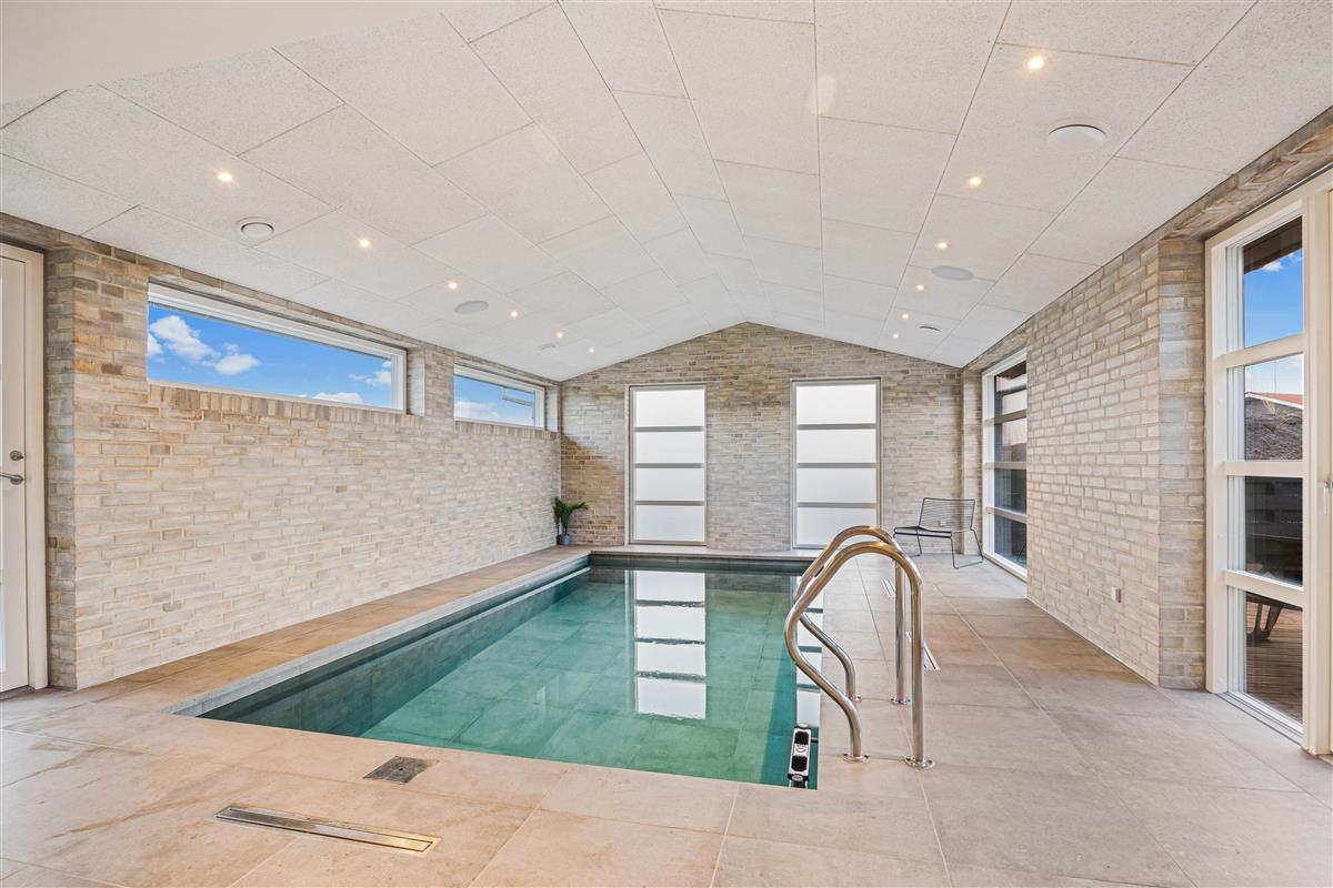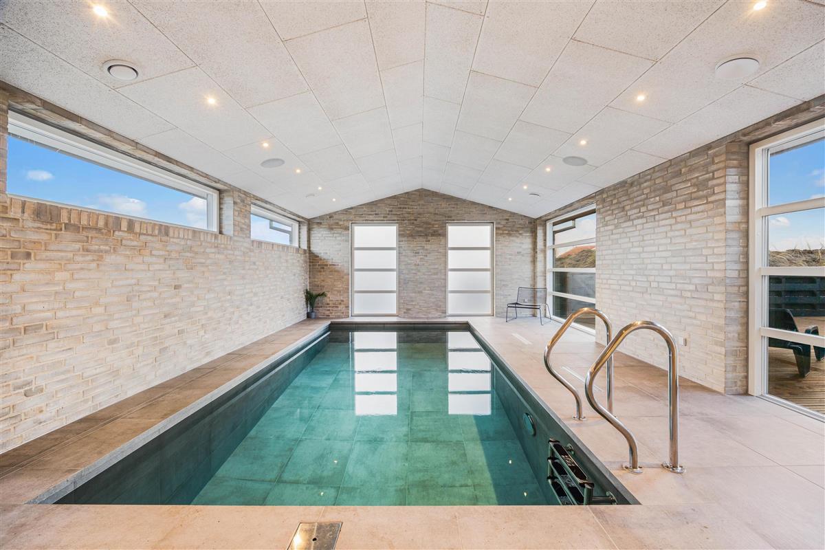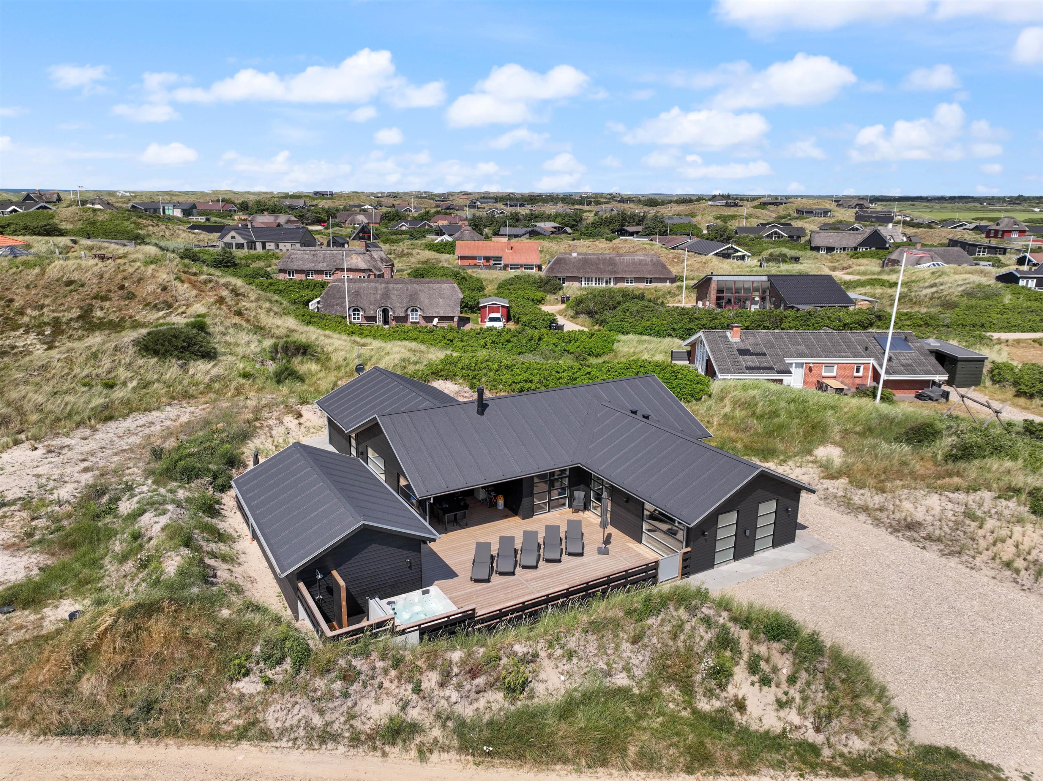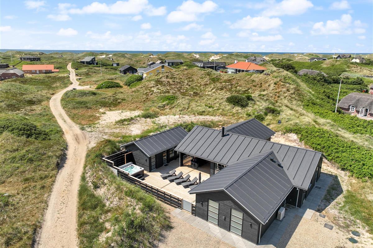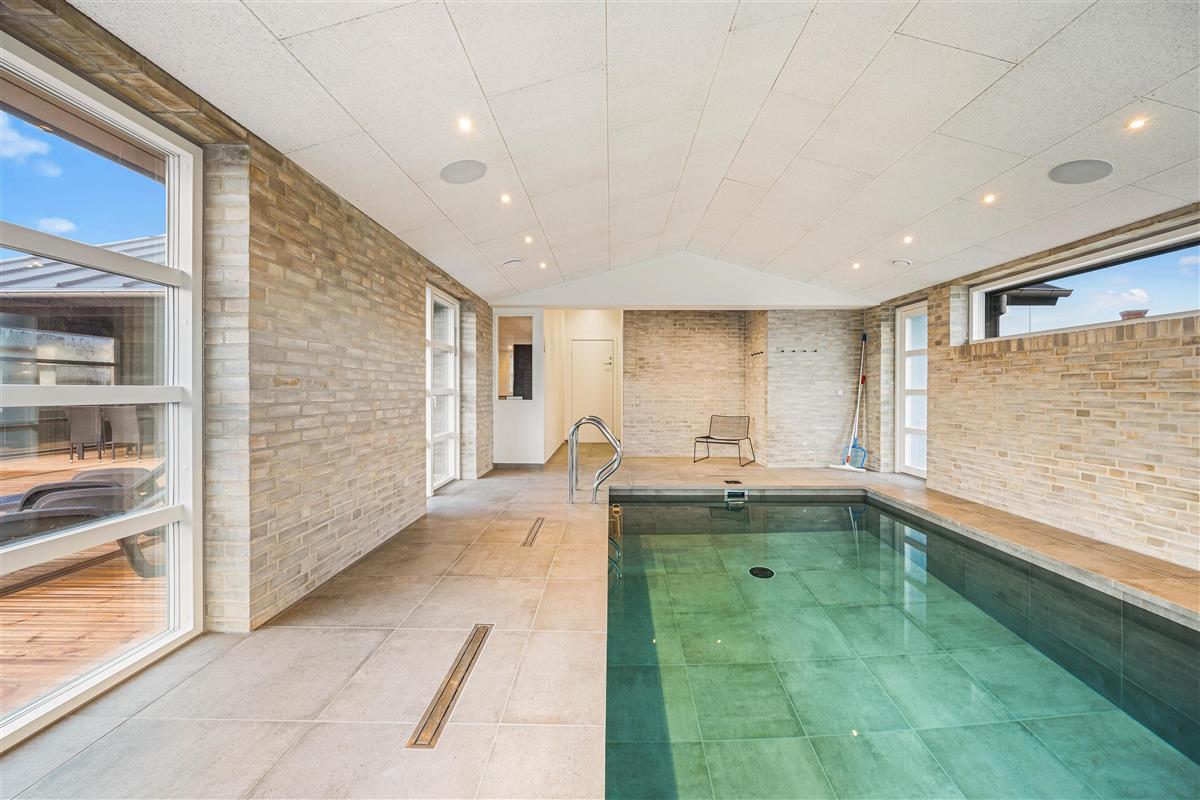 This newly built holiday home from 2022, located just 400 metres from the beach, offers a relaxing retreat for the whole family. If you're looking for a holiday home with wellness facilities, this holiday home at Holdvej 50 could be the perfect choice. The holiday home features a swimming pool with counter-current system, a large outdoor hot tub for six people, a sauna, an outbuilding with recreational facilities, and is just 400 metres from the sea. The house enjoys a particularly peaceful setting, situated on a quiet road with properties only on one side.