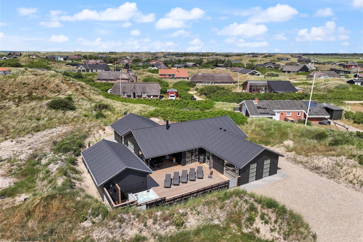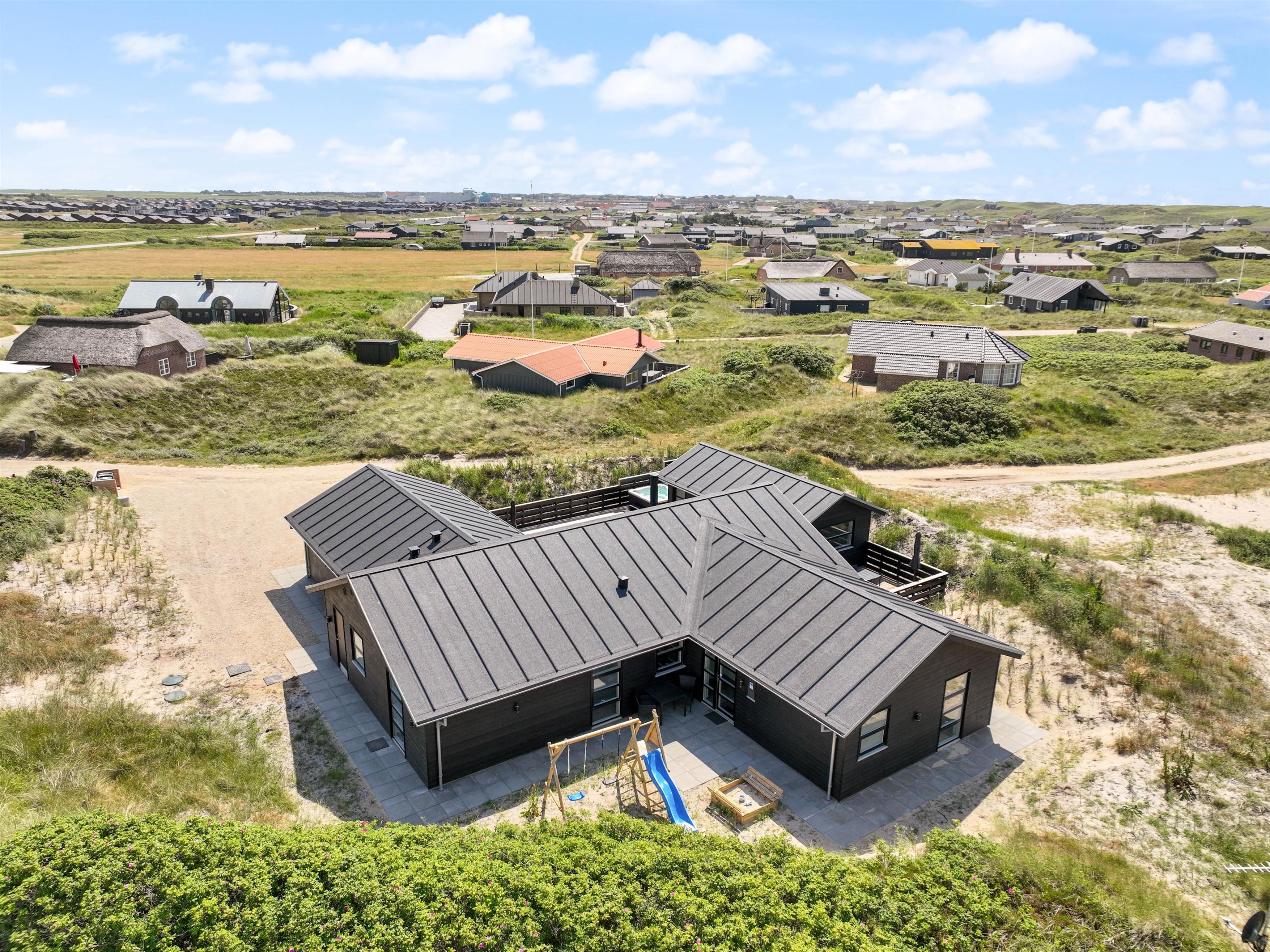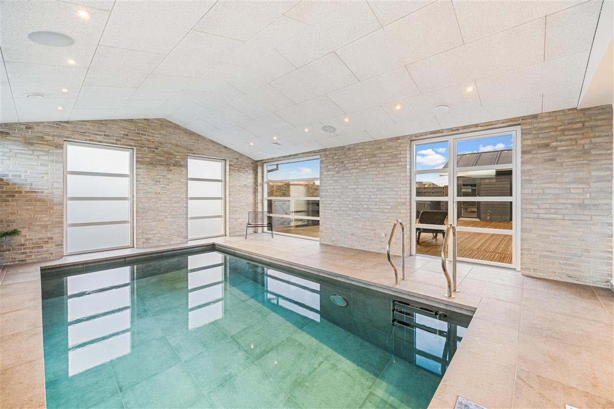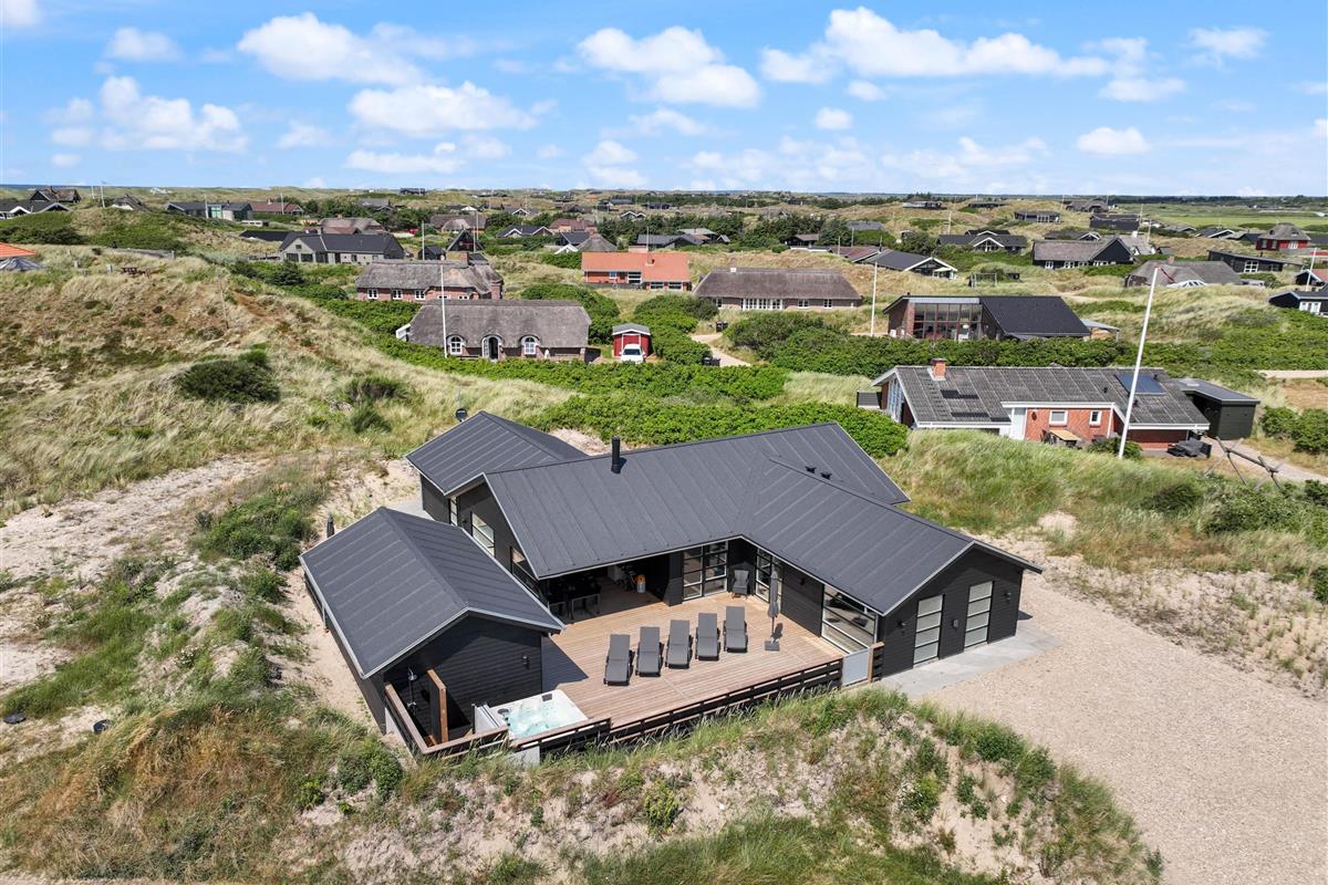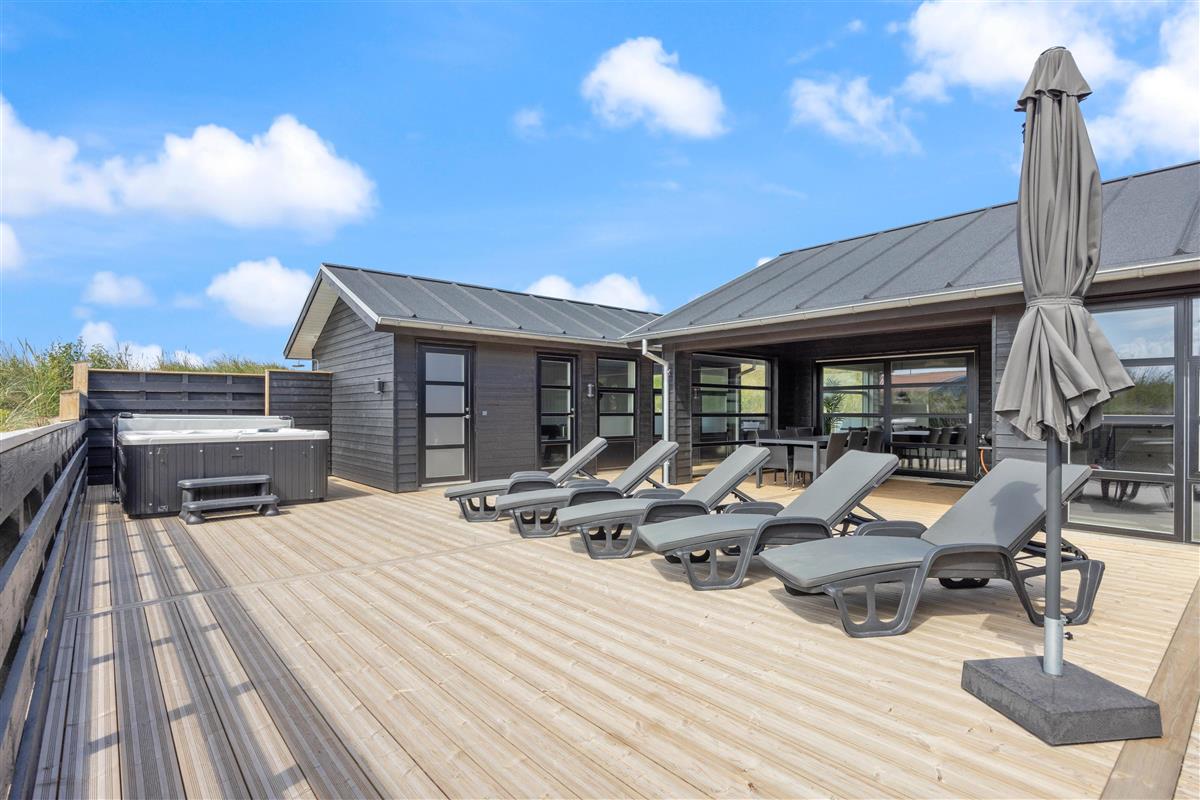 This newly built holiday home from 2022, located just 400 metres from the beach, offers a relaxing retreat for the whole family. If you're looking for a holiday home with wellness facilities, this holiday home at Holdvej 50 could be the perfect choice. The holiday home features a swimming pool with counter-current system, a large outdoor hot tub for six people, a sauna, an outbuilding with recreational facilities, and is just 400 metres from the sea. The house enjoys a particularly peaceful setting, situated on a quiet road with properties only on one side.